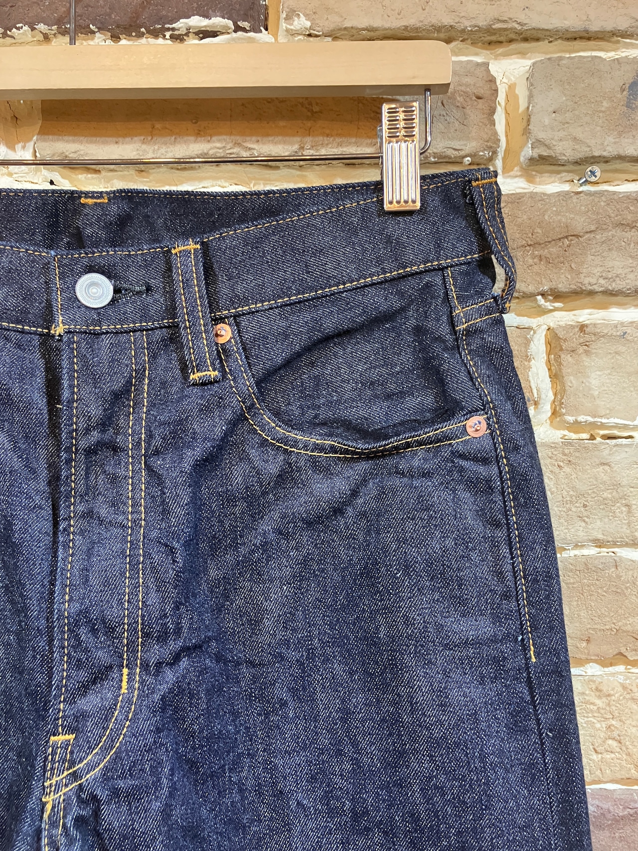 世界でも希少なジャンボ精紡機で紡いだ糸で織り上げた14.5オンスのセルビッジデニムを使用した、ベーシックなストレートモデル。
