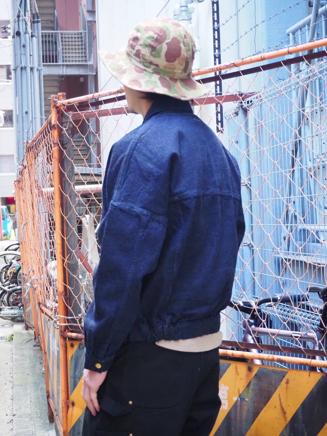 Sugar&Co.のフラッグシップアイテムdaddy's pants 同様の表地を使用したデニムジャケット。