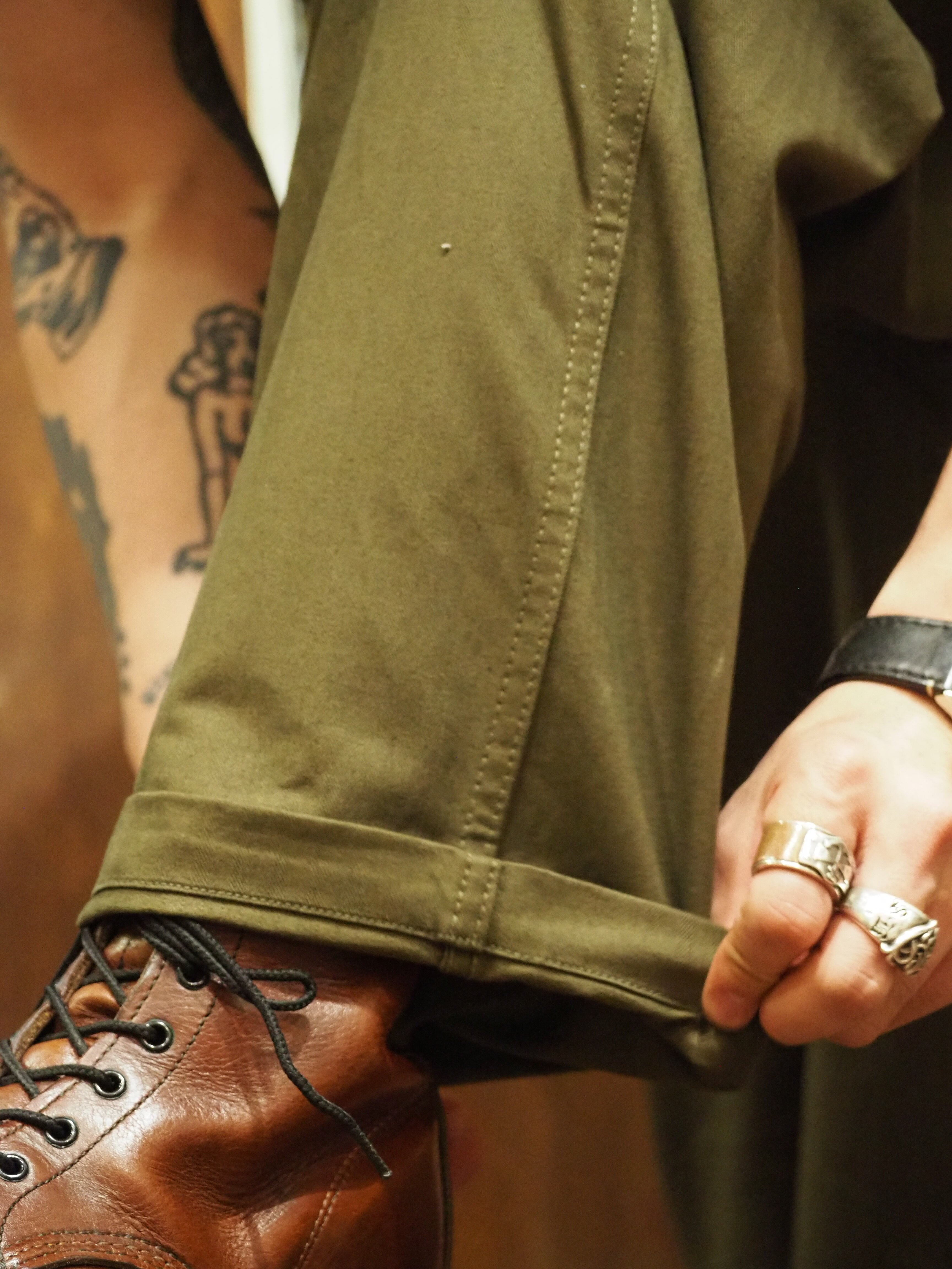 40年代前半のヘリンボーンツイル地のユーティリティートラウザーをリプロダクト。