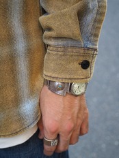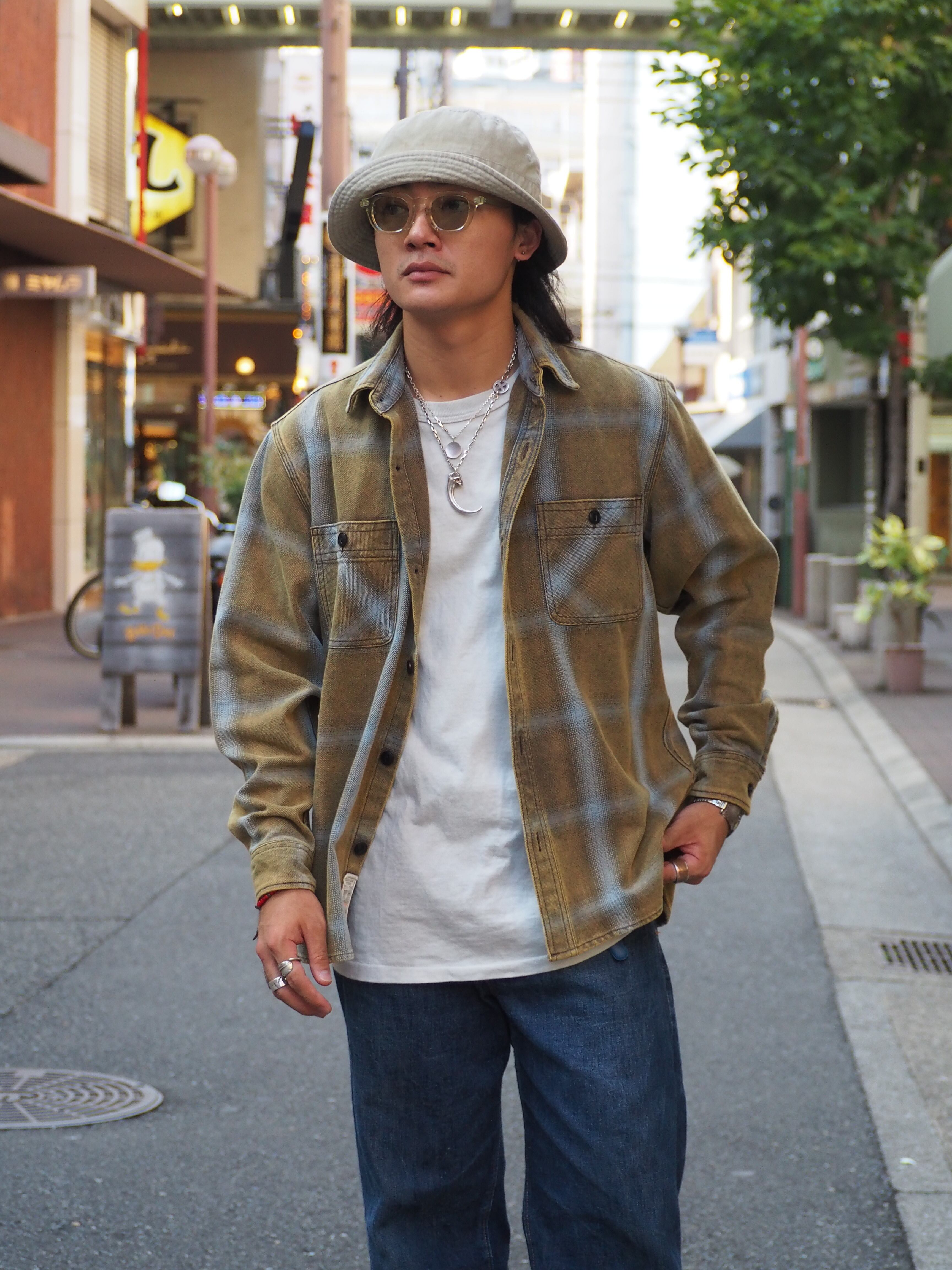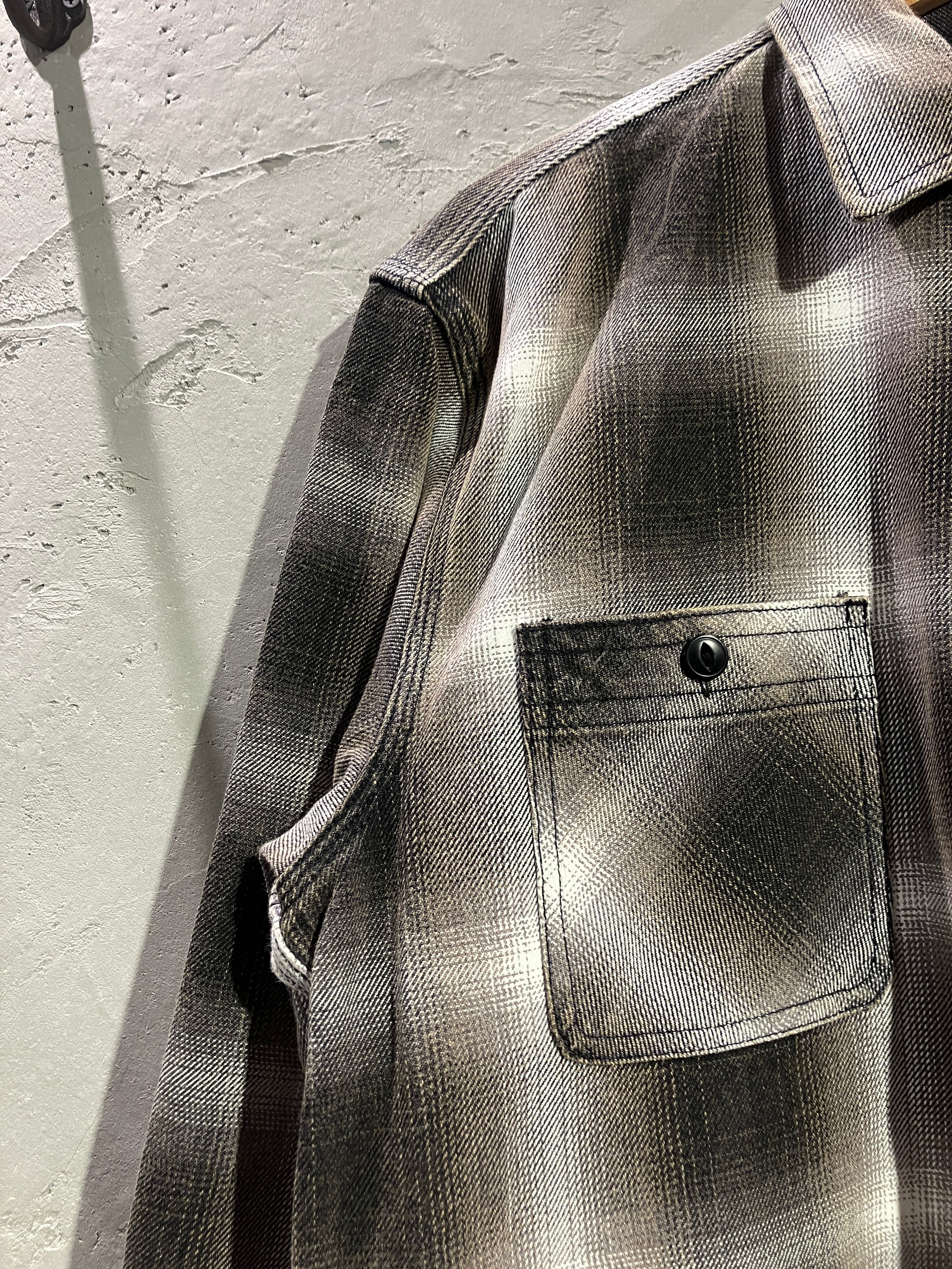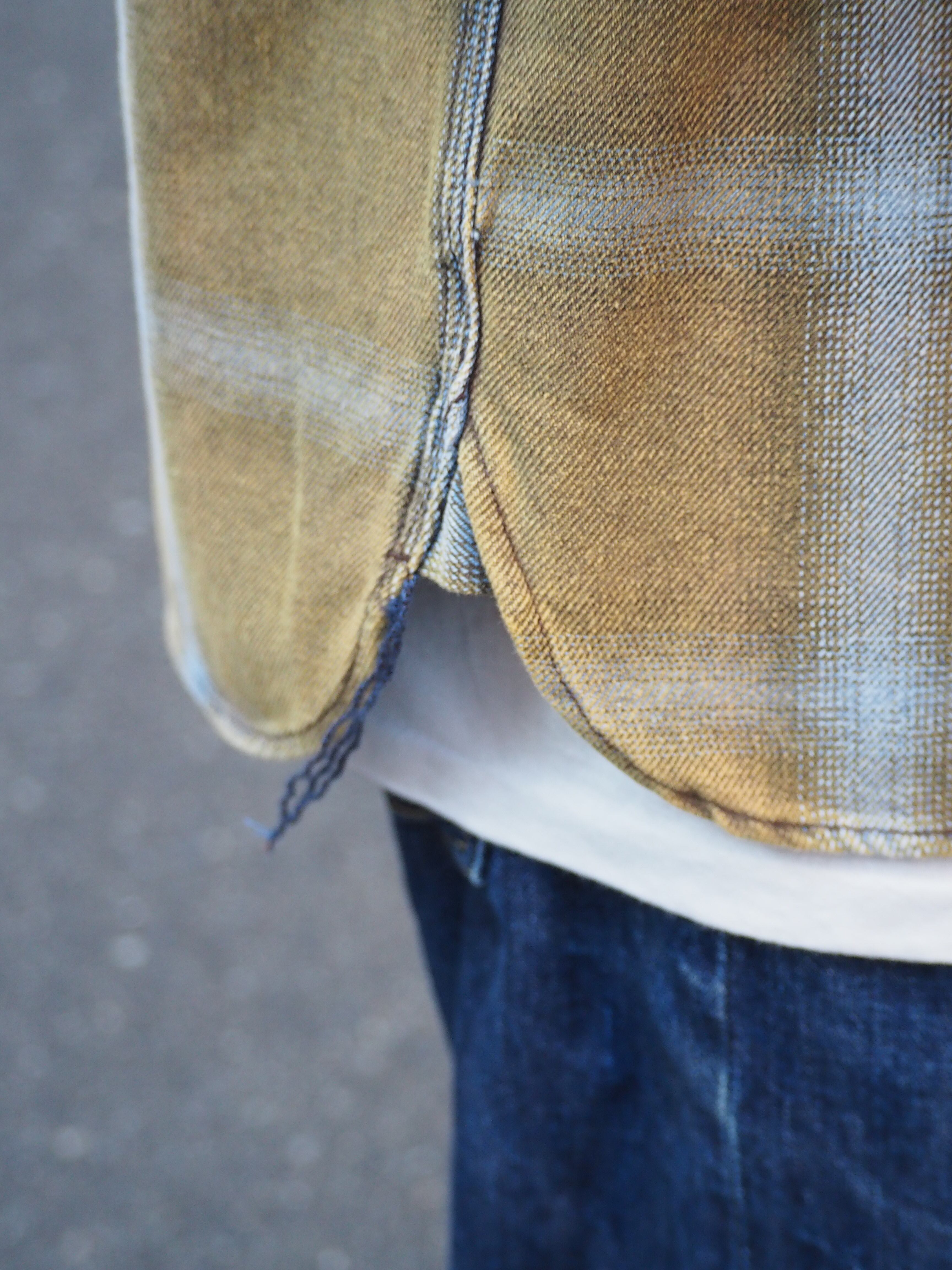HOUSTON秋冬の定番アイテム【ビエラシャツシリーズ】。ヘヴィーオンスなビエラ生地を使用し、着込むほどに経年変化も楽しめる。トリプルステッチやユニオンチケットなどビンテージライクなディティールが満載。通常細い糸を使用して作成するオンブレチェック柄を、無理やり太い糸で織り上げて表現し、長年着用したかのようなヴィンテージ加工が施されている。