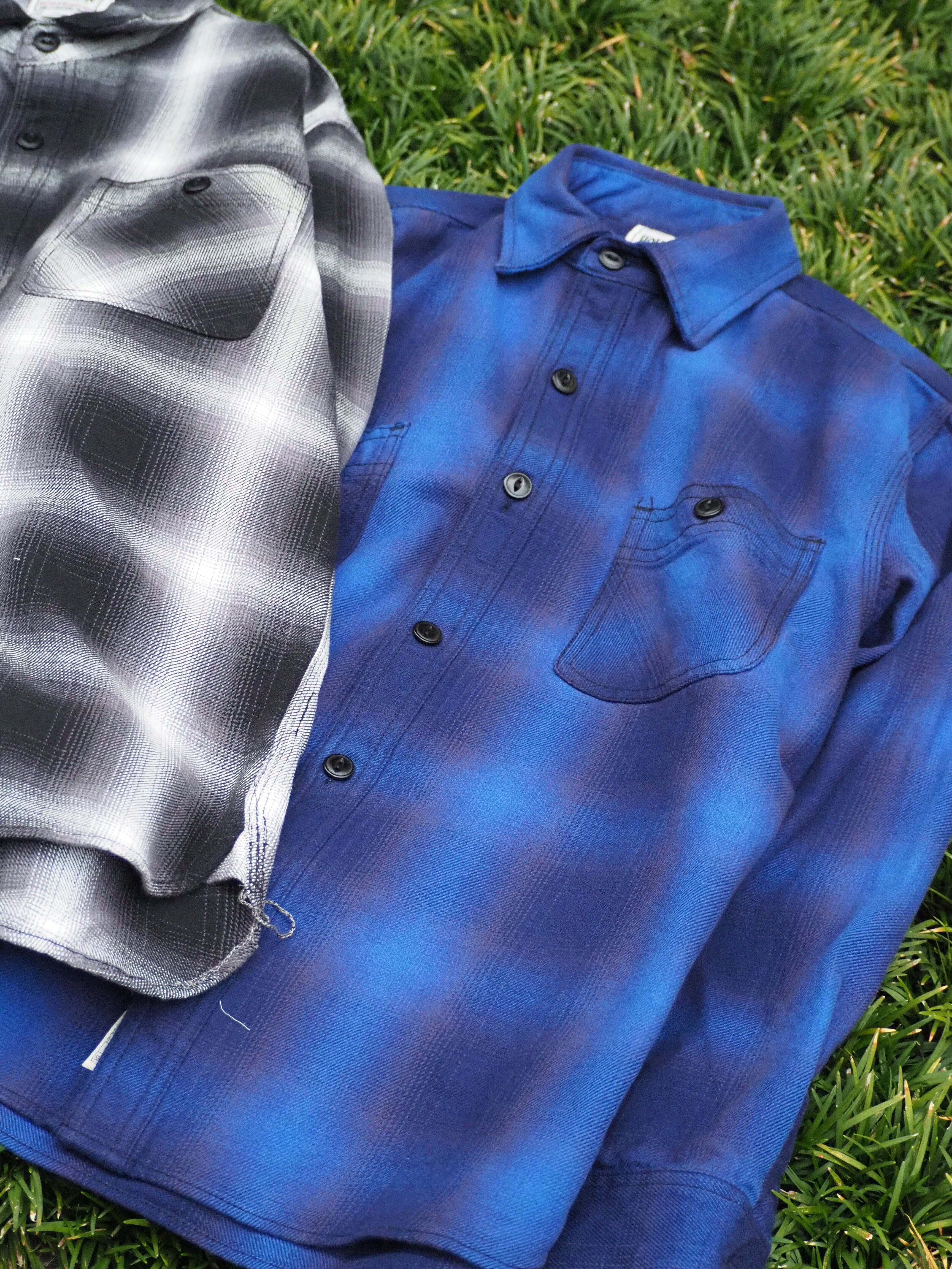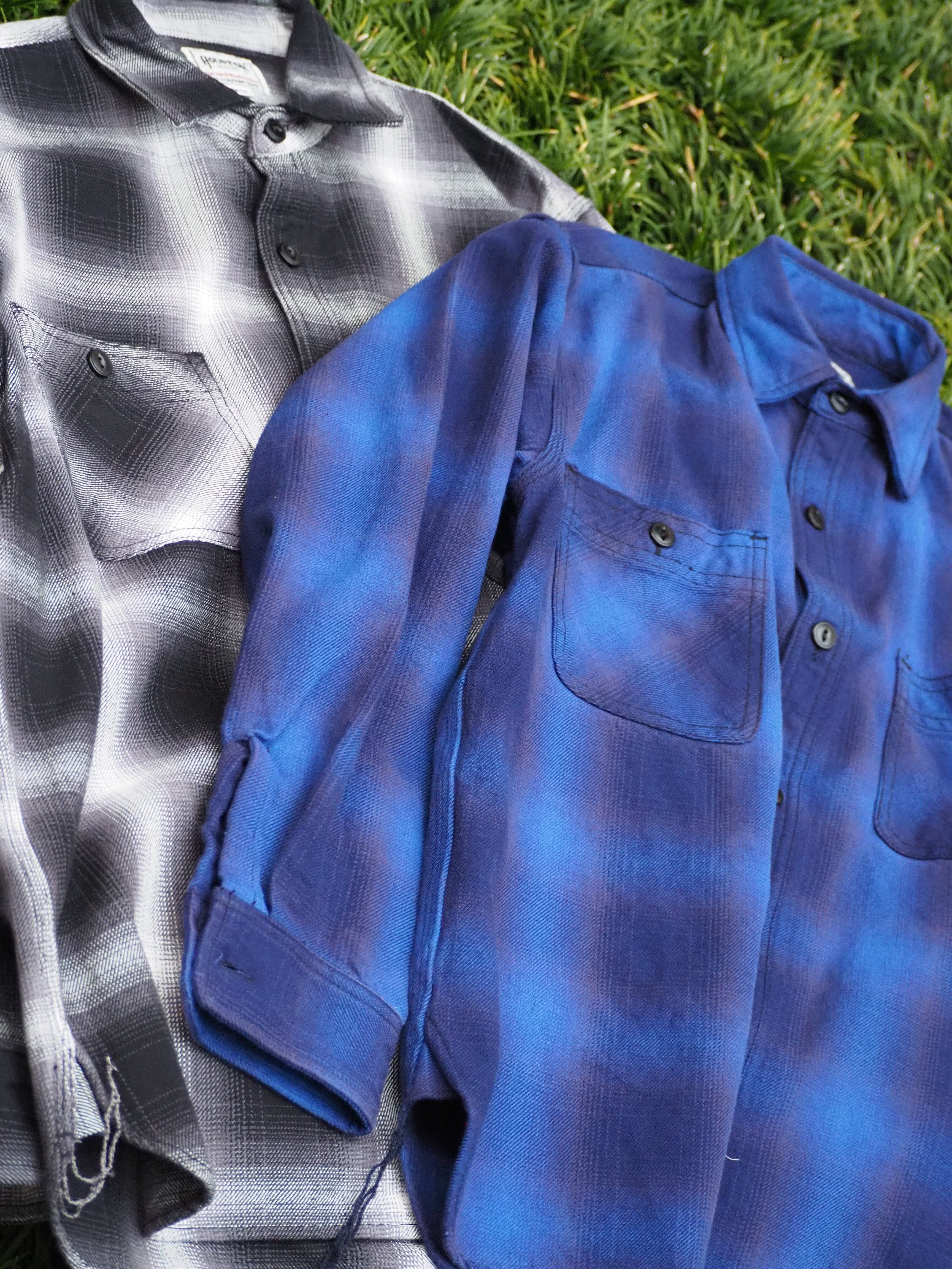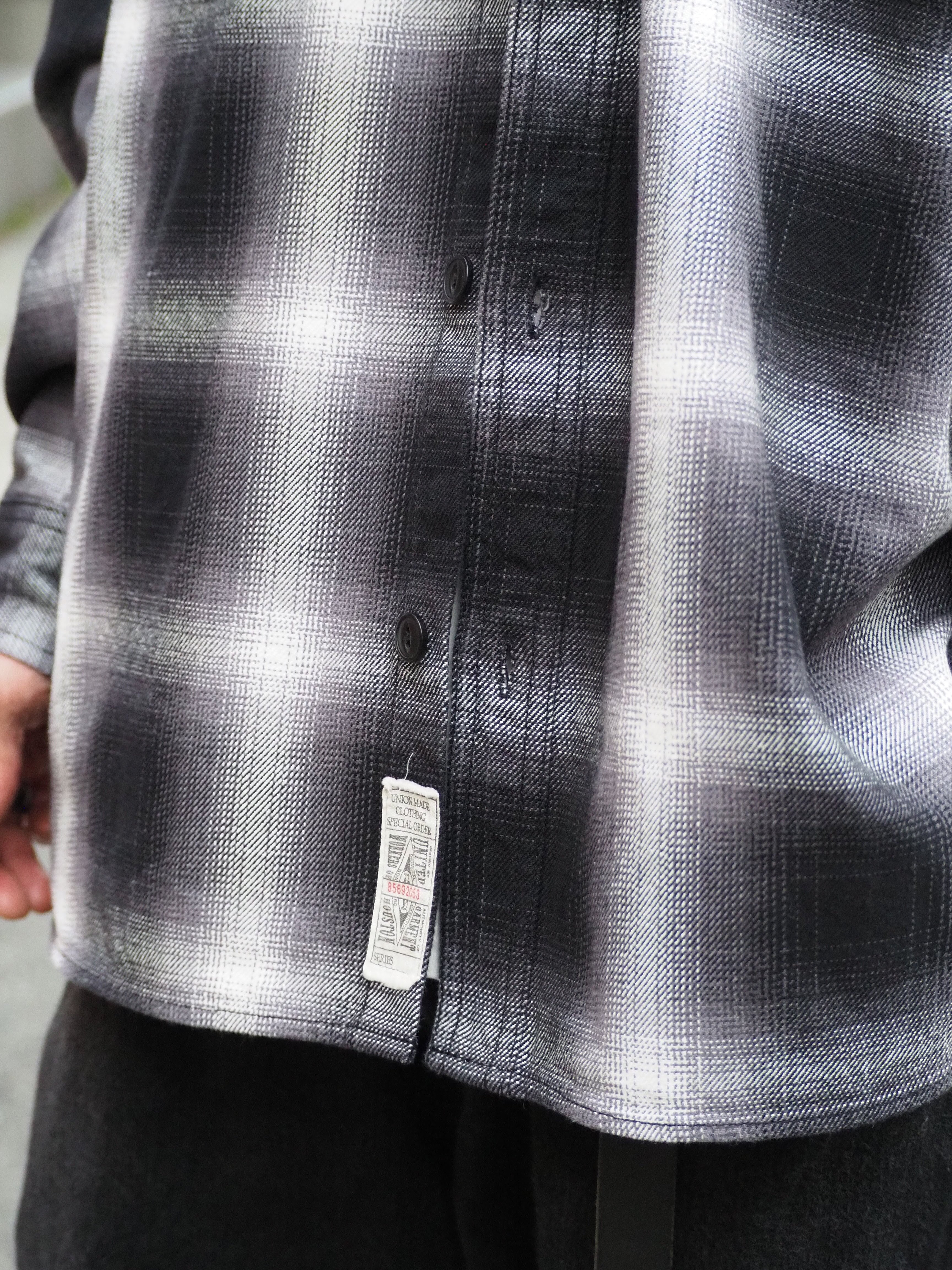 HOUSTON秋冬の定番アイテム【ビエラシャツシリーズ】。ヘヴィーオンスなビエラ生地を使用し、着込むほどに経年変化も楽しめる。トリプルステッチやユニオンチケットなどビンテージライクなディティールが満載。通常細い糸を使用して作成するオンブレチェック柄を、無理やり太い糸で織り上げて表現している。