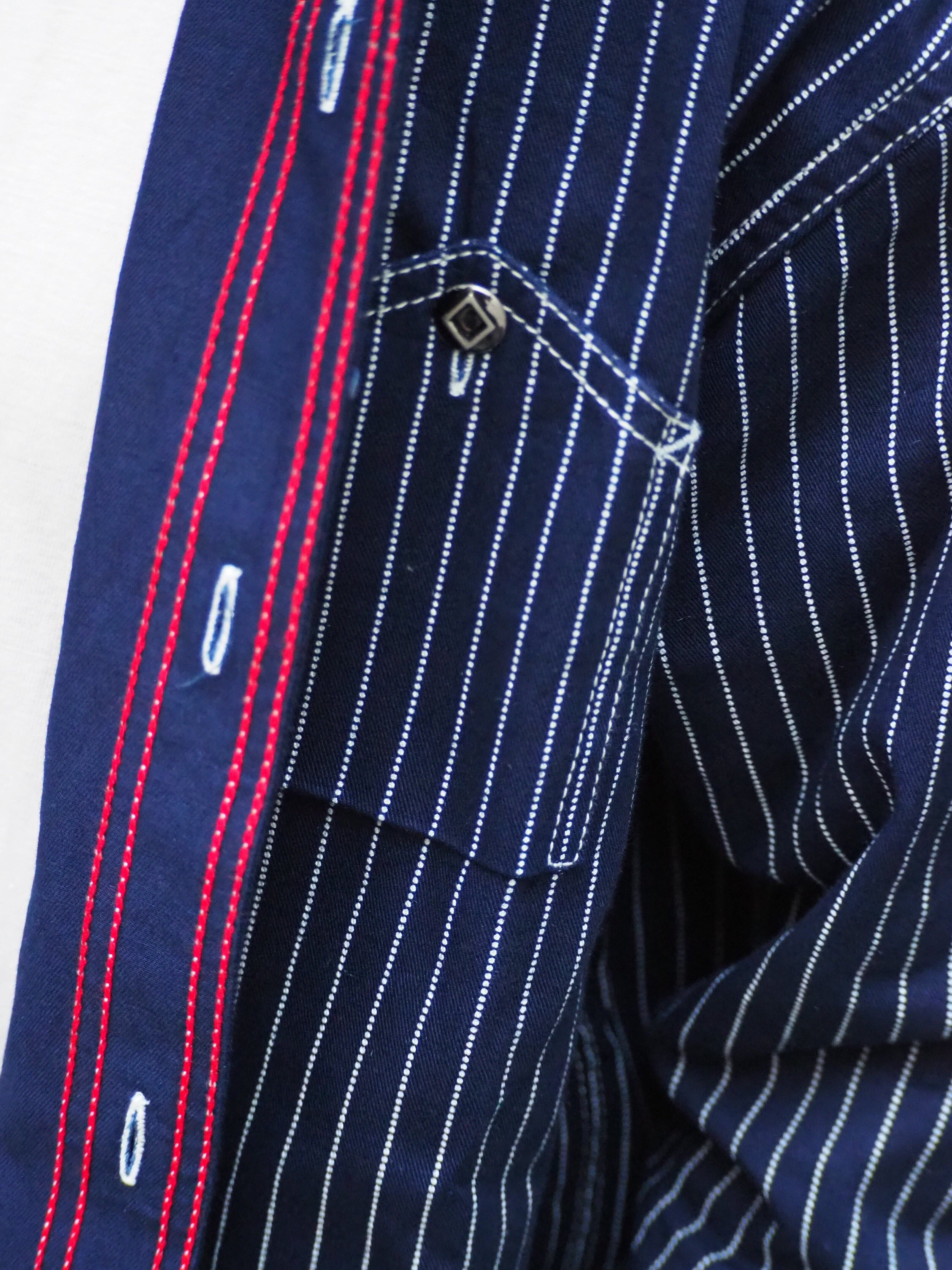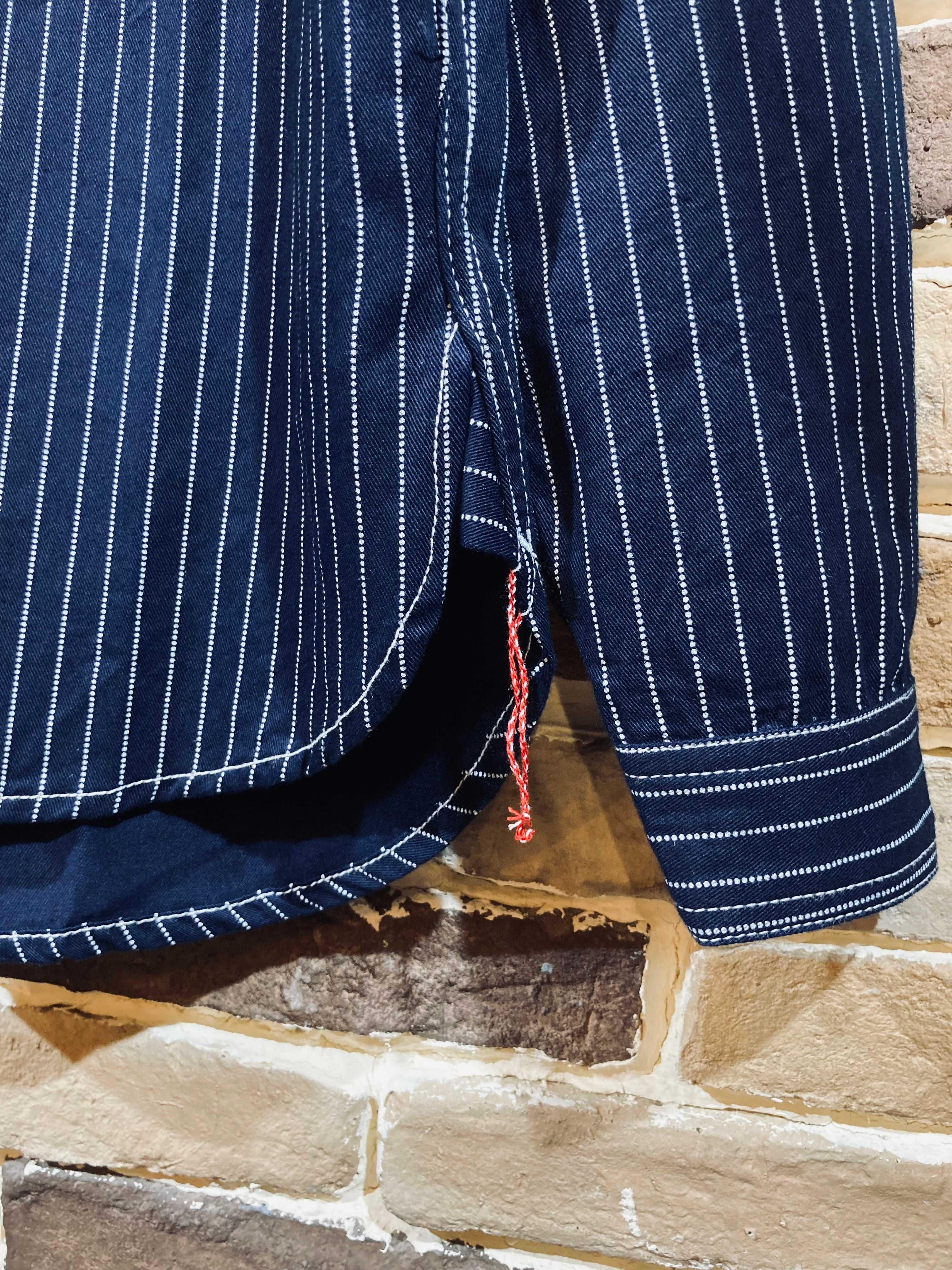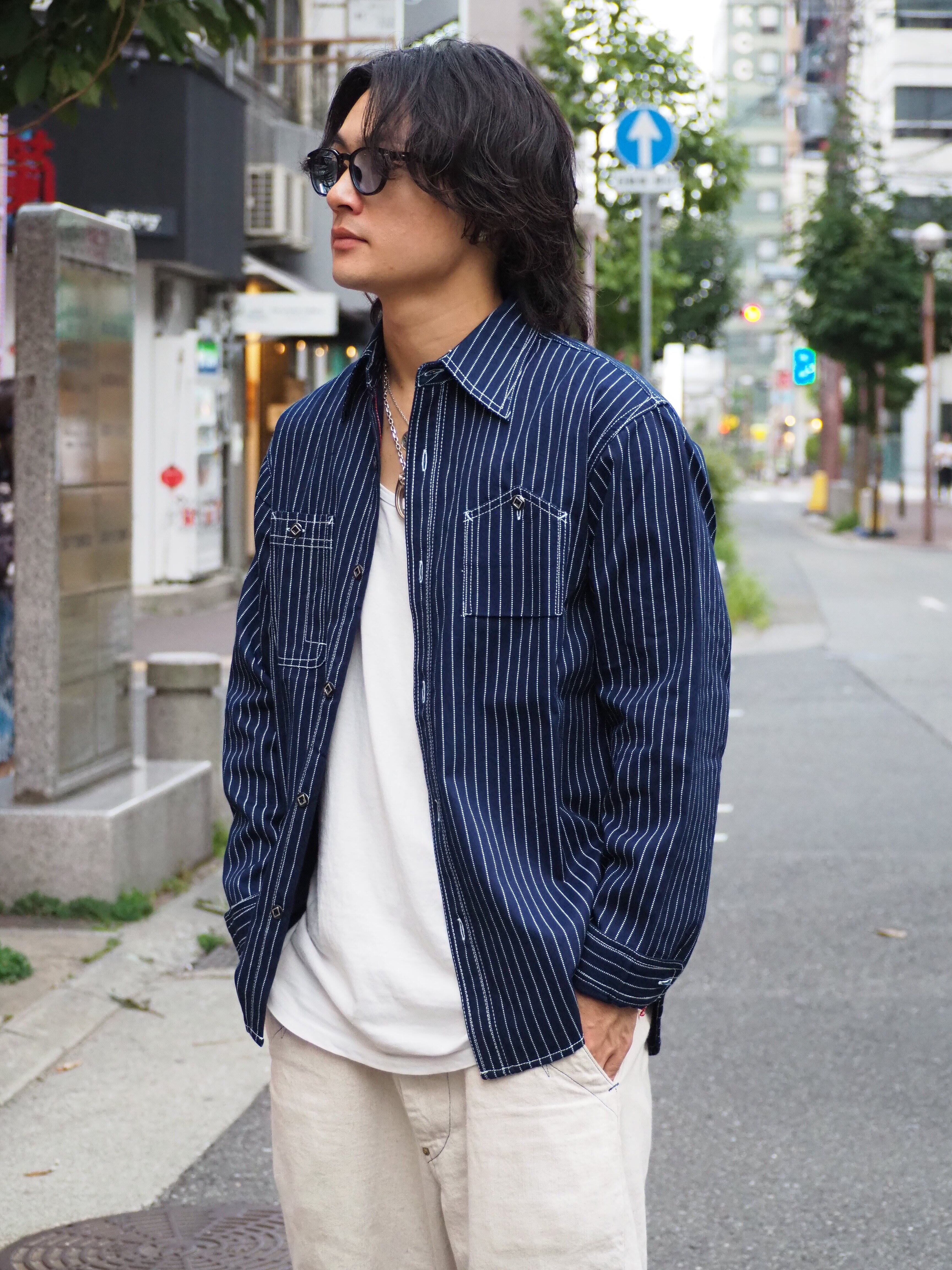 オリジナルのインディゴウォバッシュ生地を使用したワークシャツ。