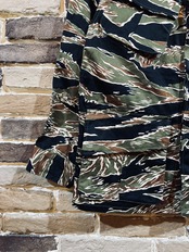 タイガーストライプは米軍の迷彩と思われがちですが、開発したのは南ベトナム軍になります。東南アジア特有の濃いジャングルという密林での近距離戦闘用のために1950年代に開発された迷彩パターンです。