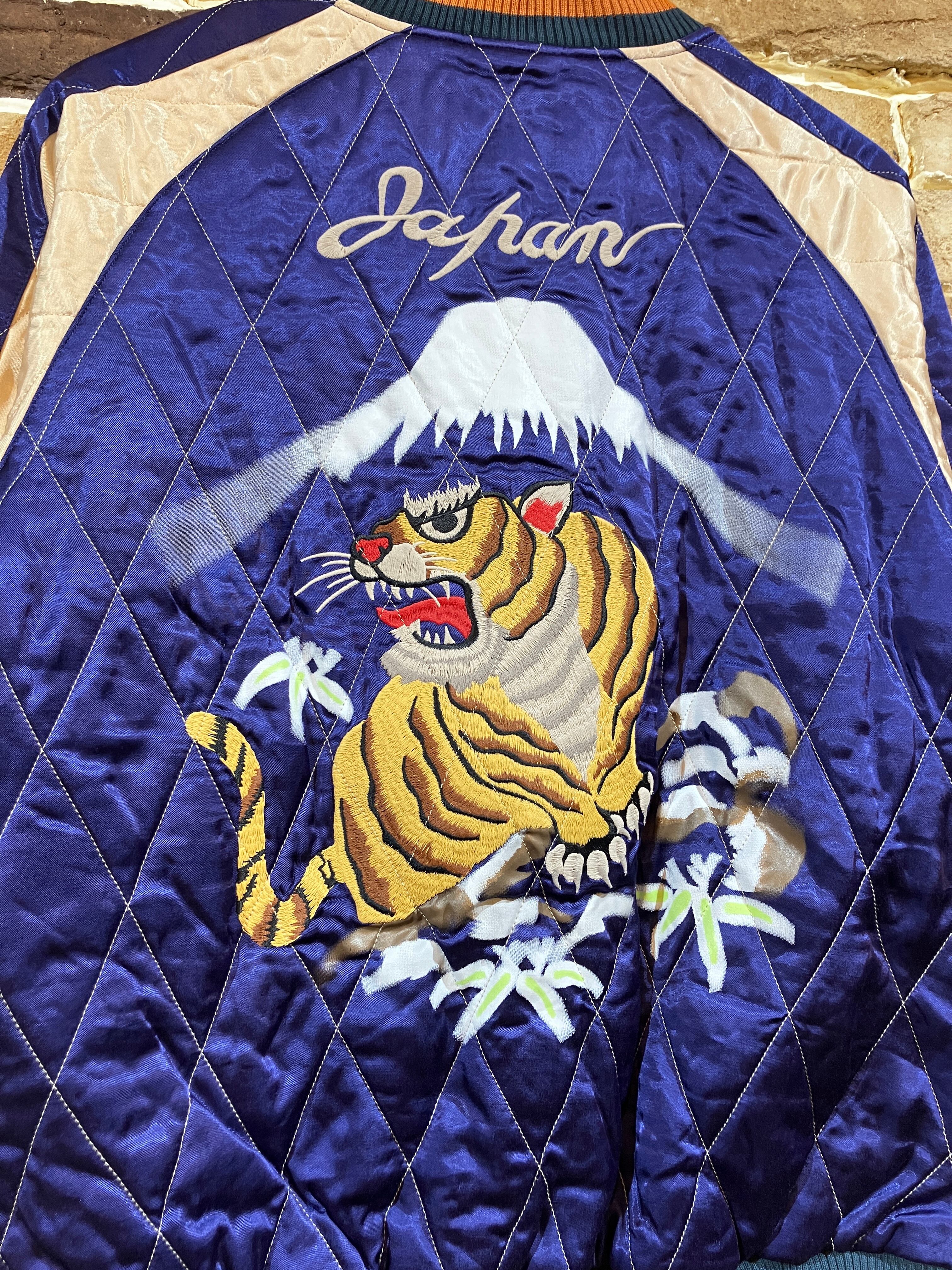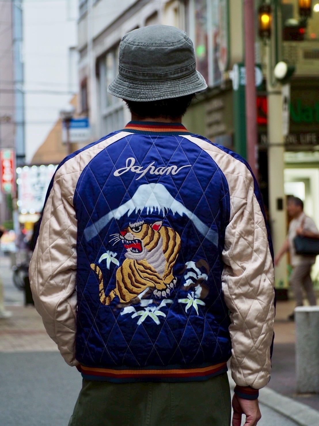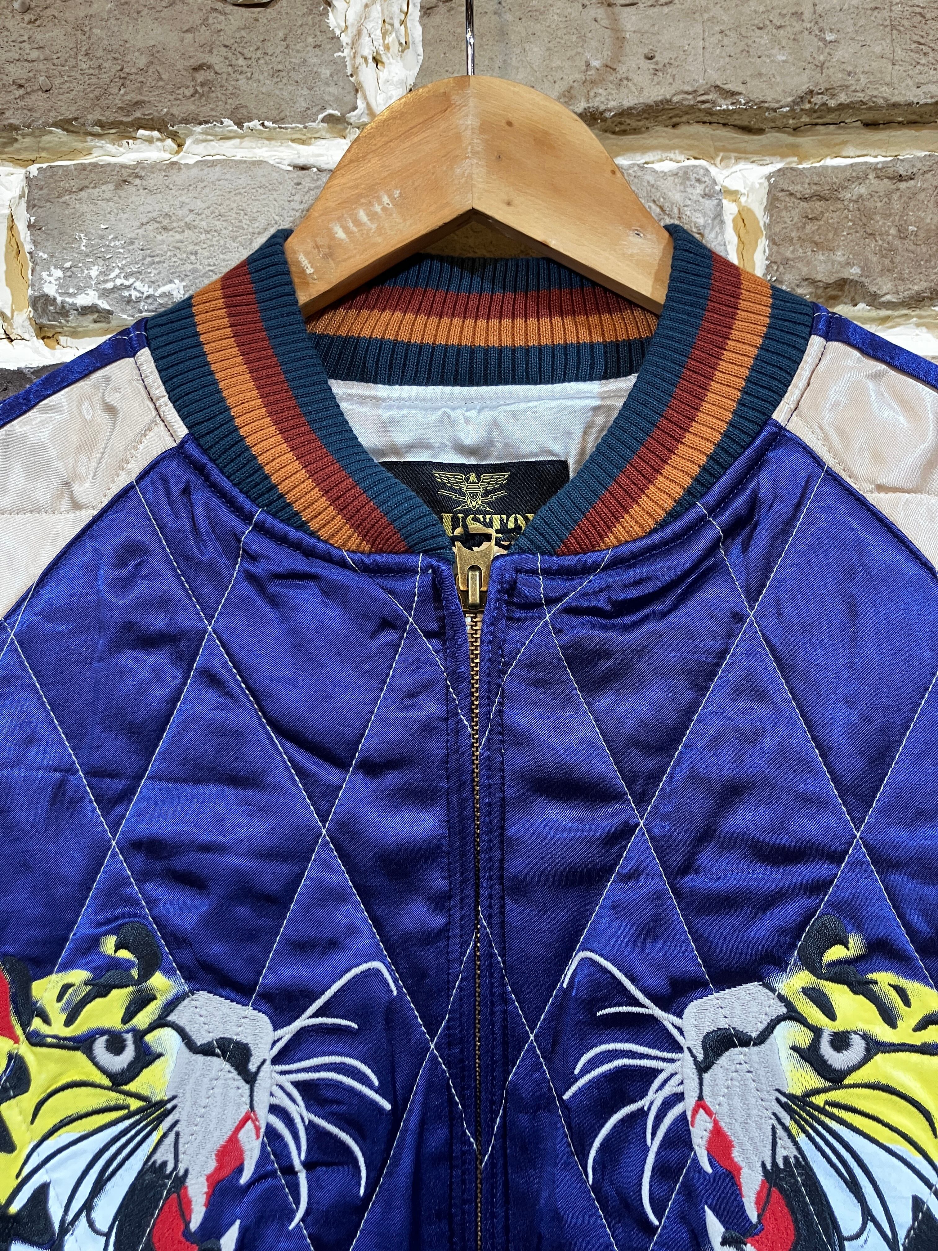 HOUSTON2025年スカジャンシリーズ。人気の高い虎柄を刺繍+プリントで表現し、さらにダイヤモンドキルティング仕様にてリリース。