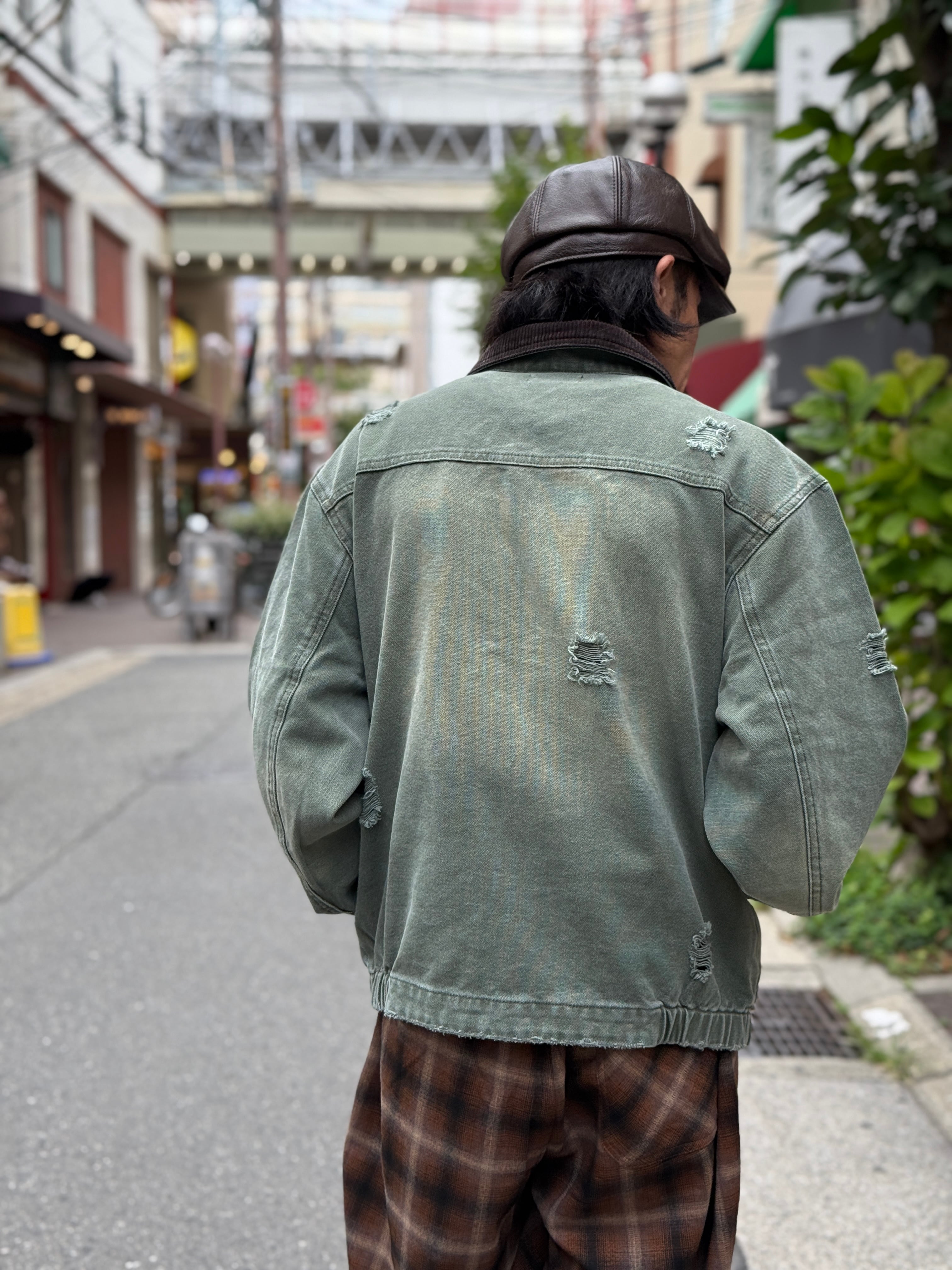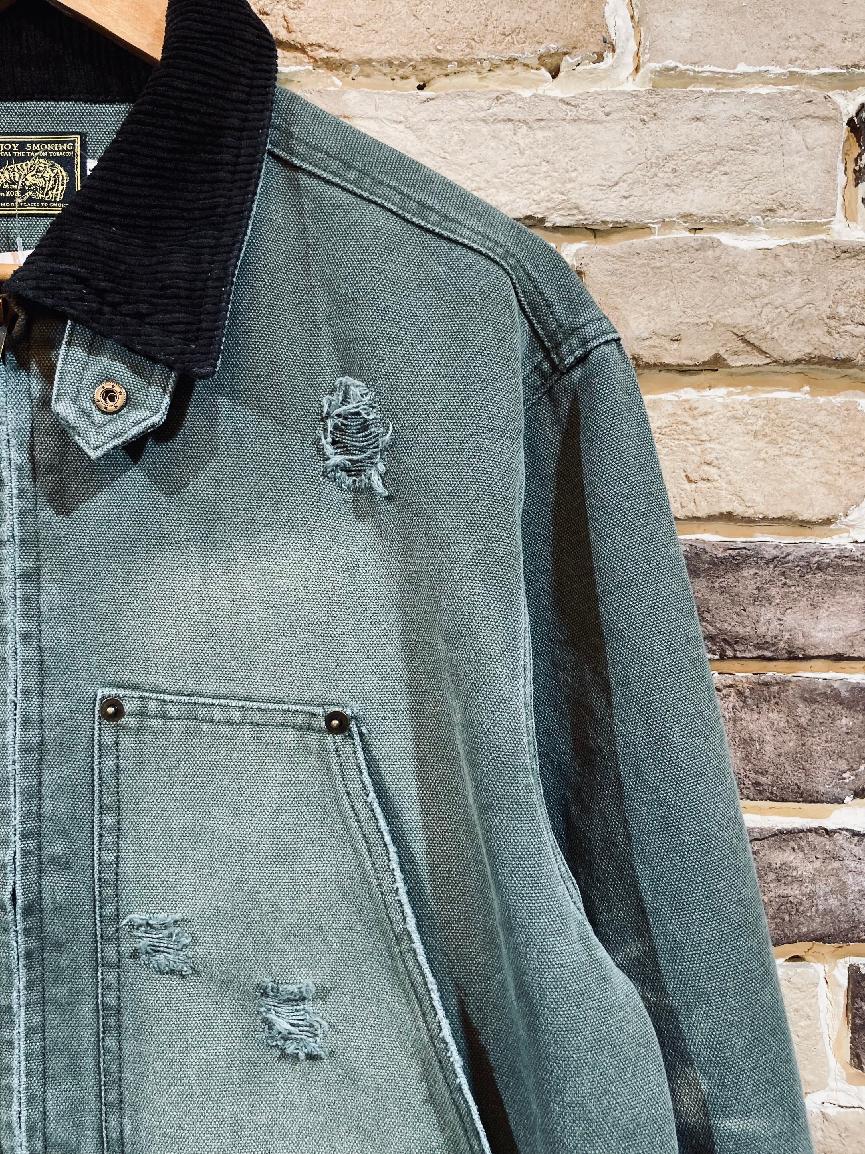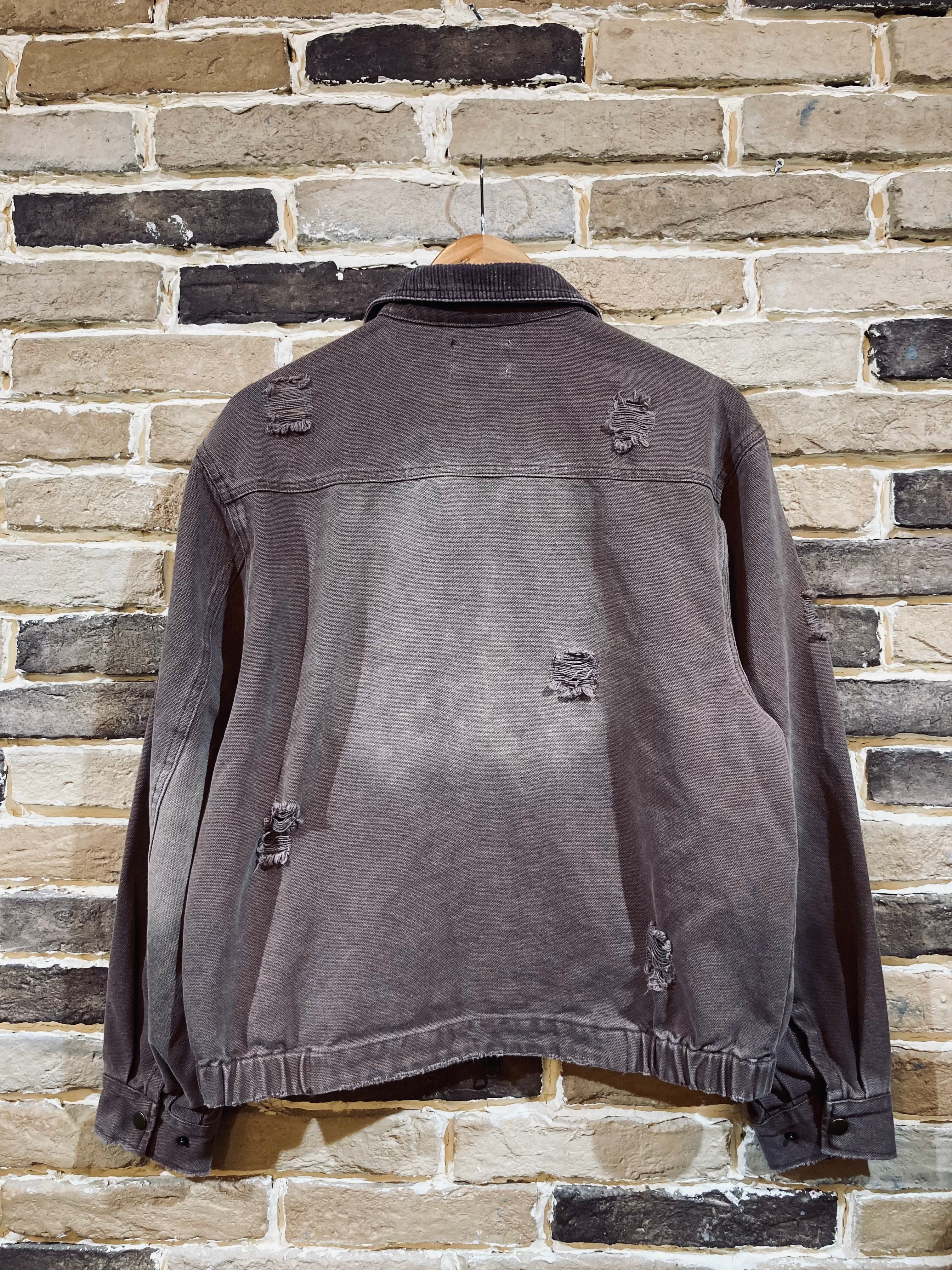 ワークウェアなどで用いられるダック生地に襟元のコーデュロイがアクセントになっています。