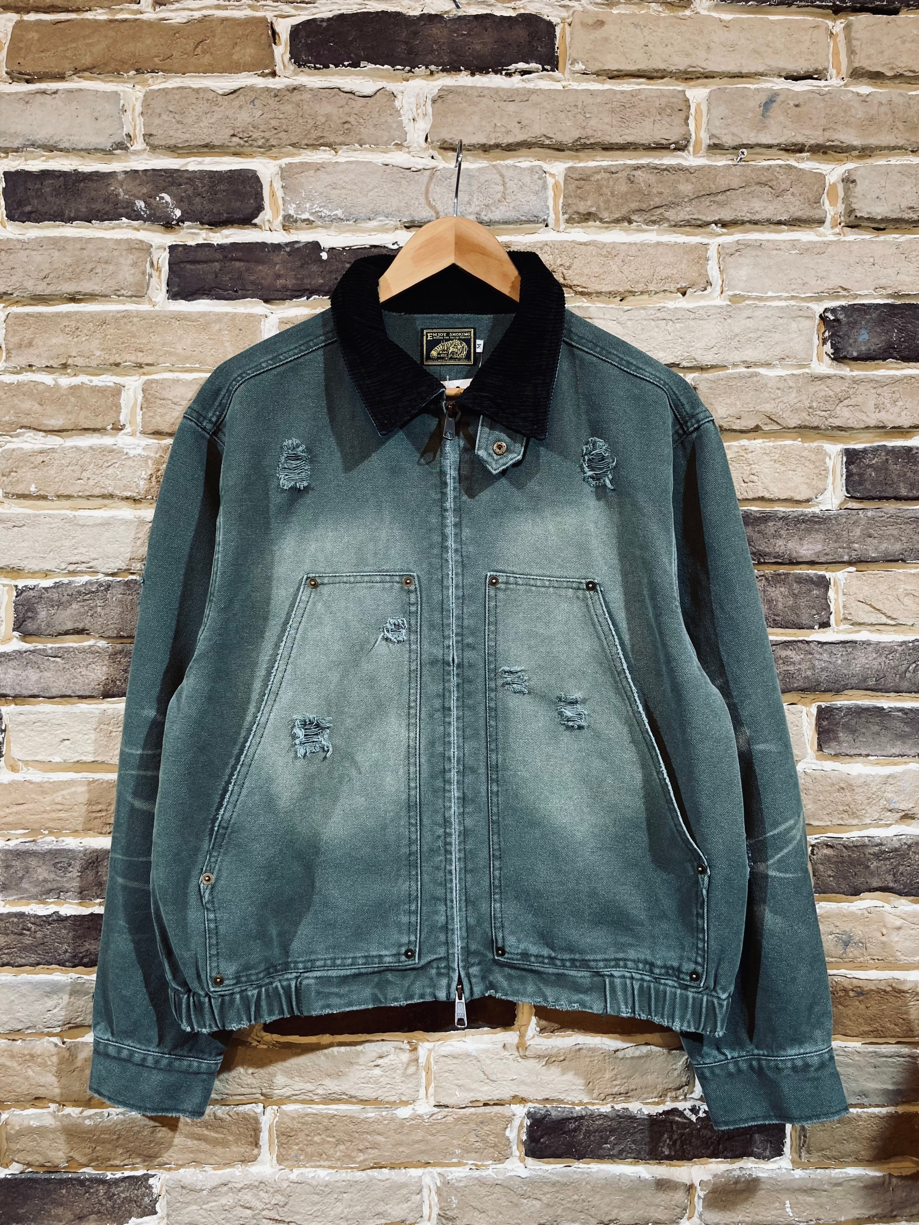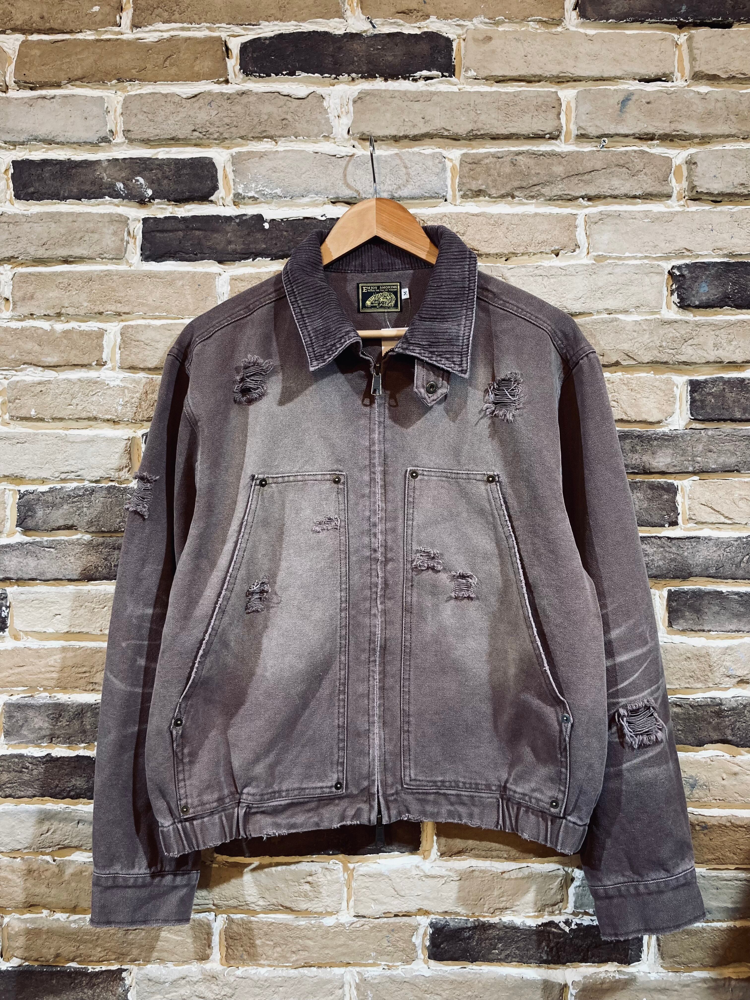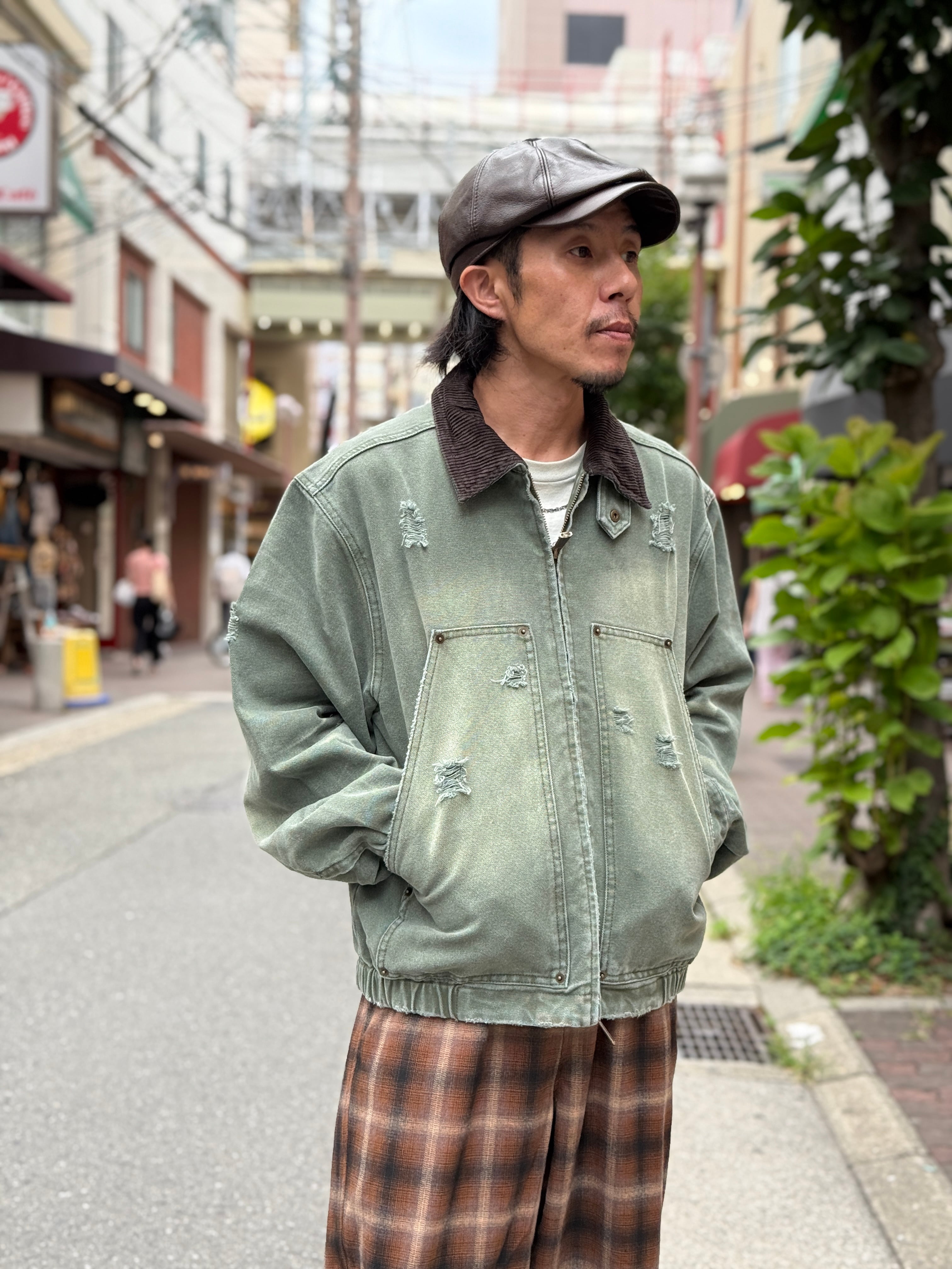 ワークウェアなどで用いられるダック生地に襟元のコーデュロイがアクセントになっています。