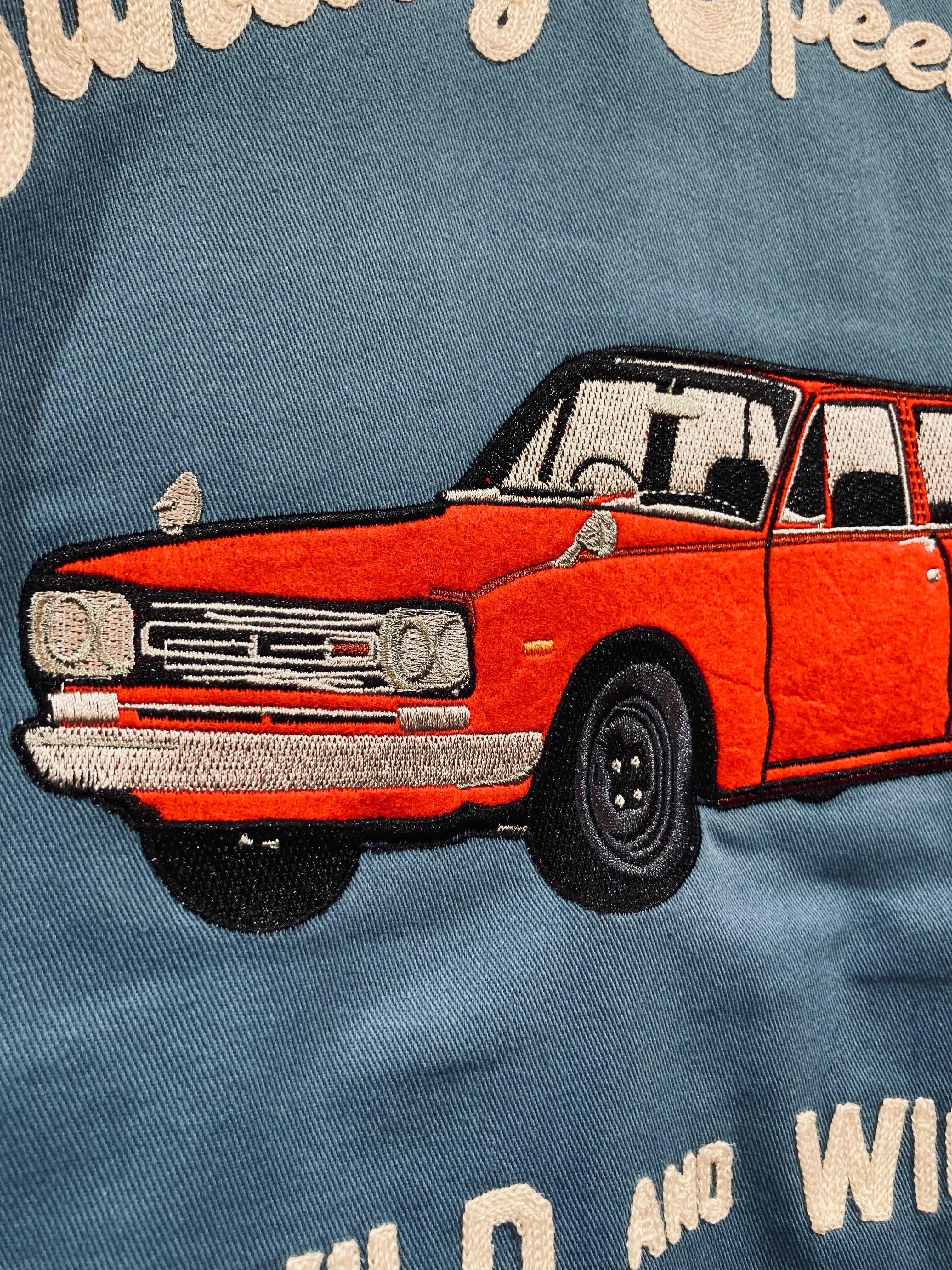 ARCARZA独自のワッペンとチェーンステッチの配色は秀逸の一言。