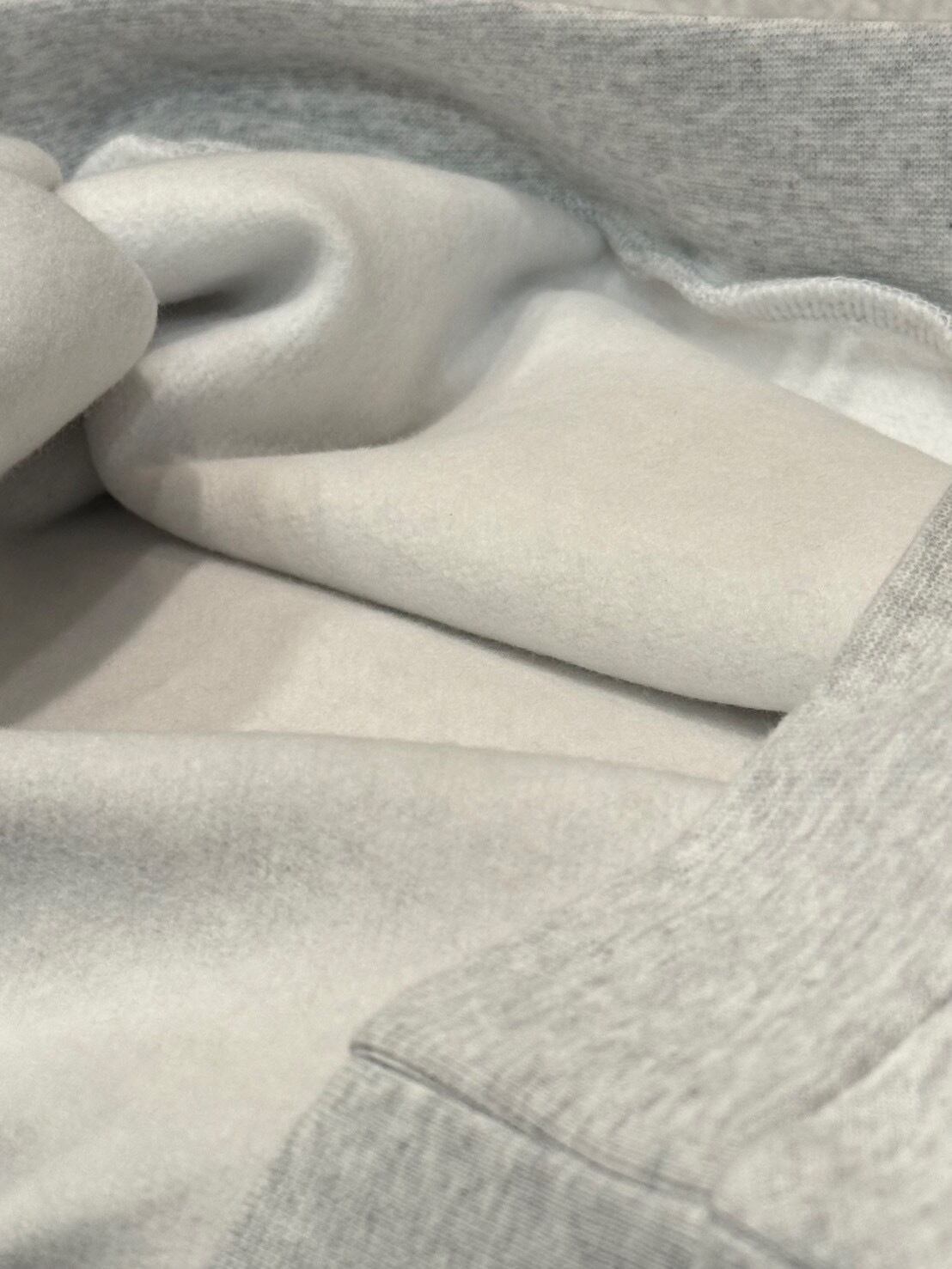 裏起毛仕様で肌寒い季節にぴったりの保温性。またCVC裏起毛(コットン57%、ポリエステル43%)のため柔らかく暖かい素材感。