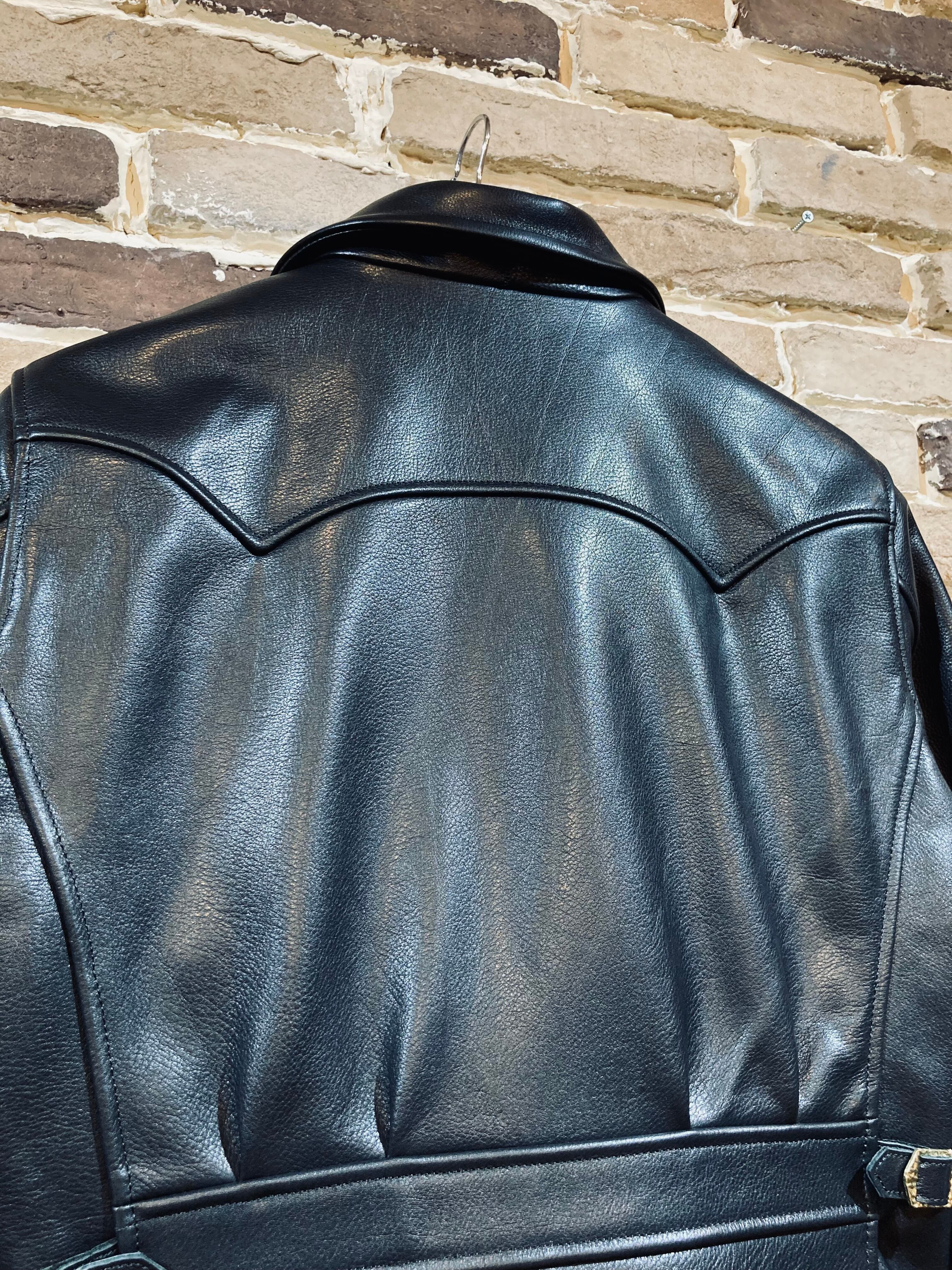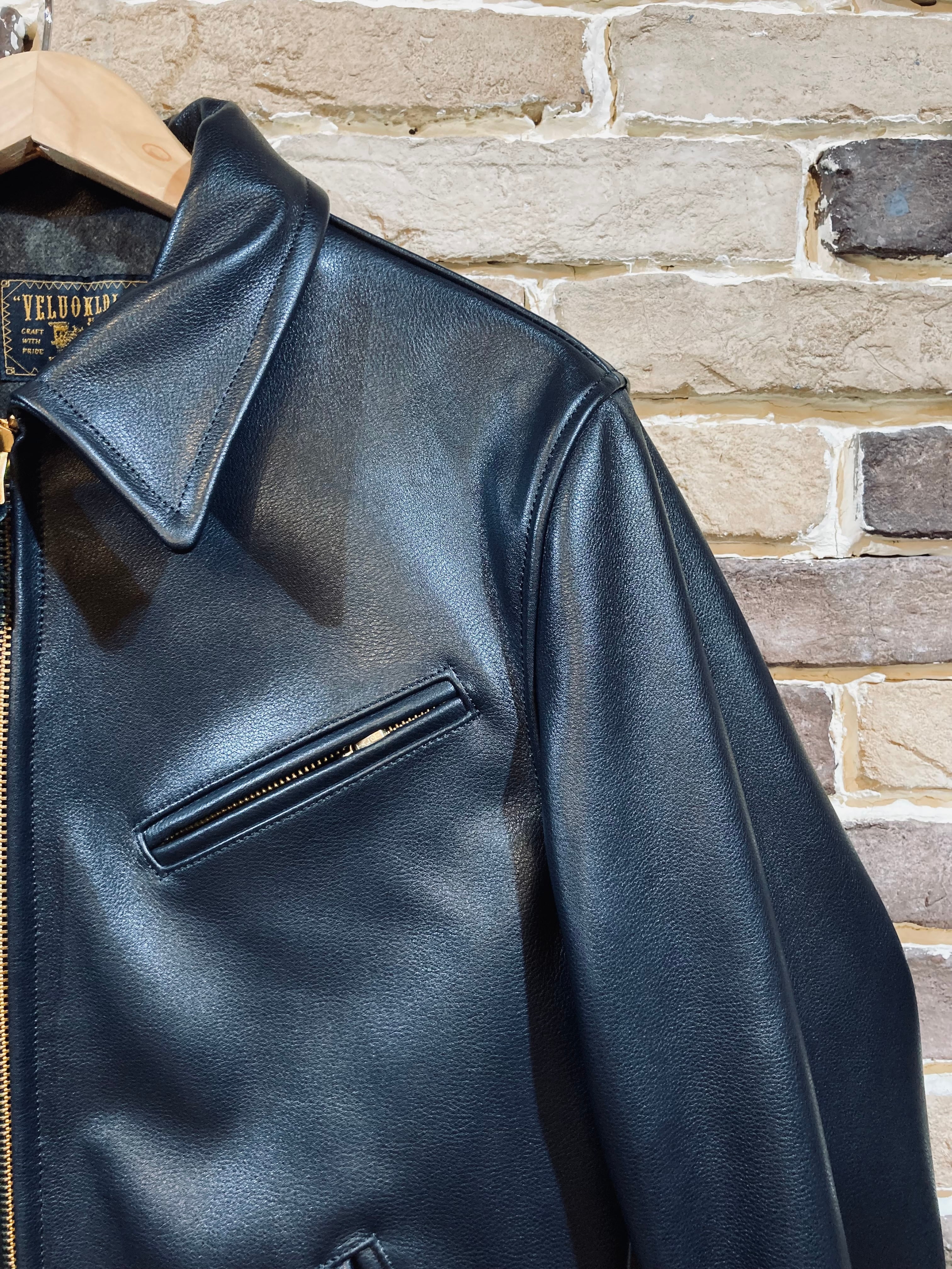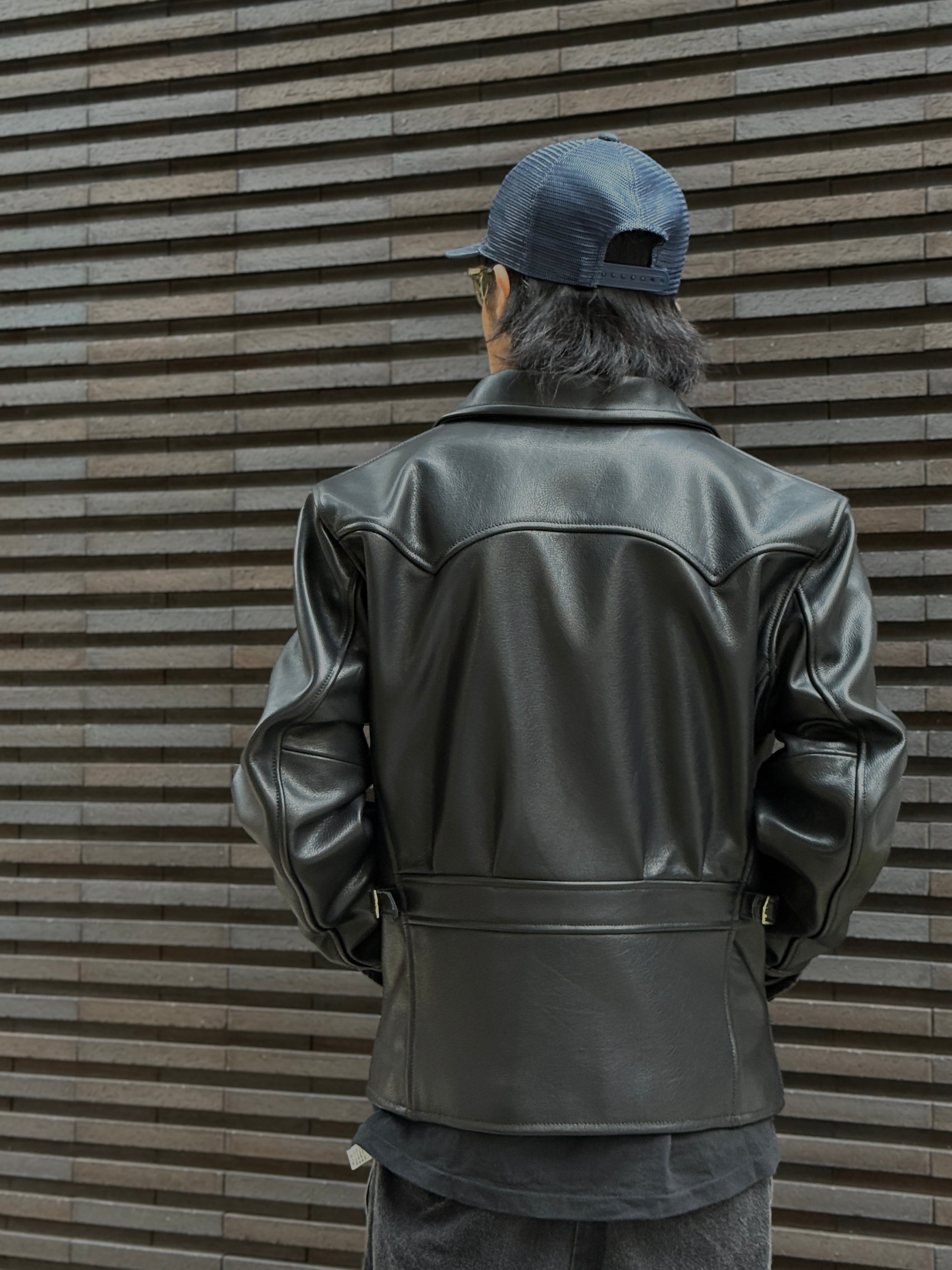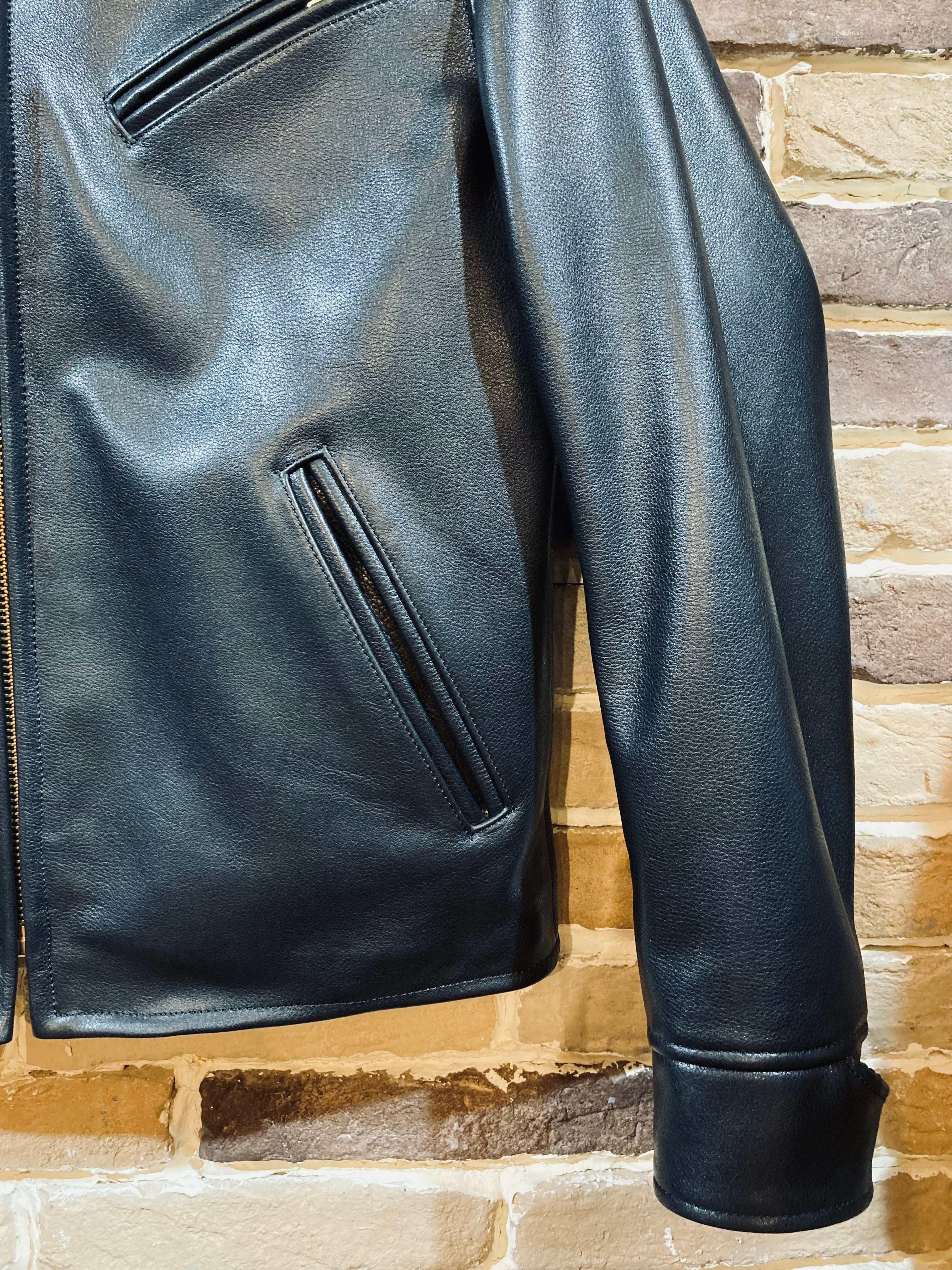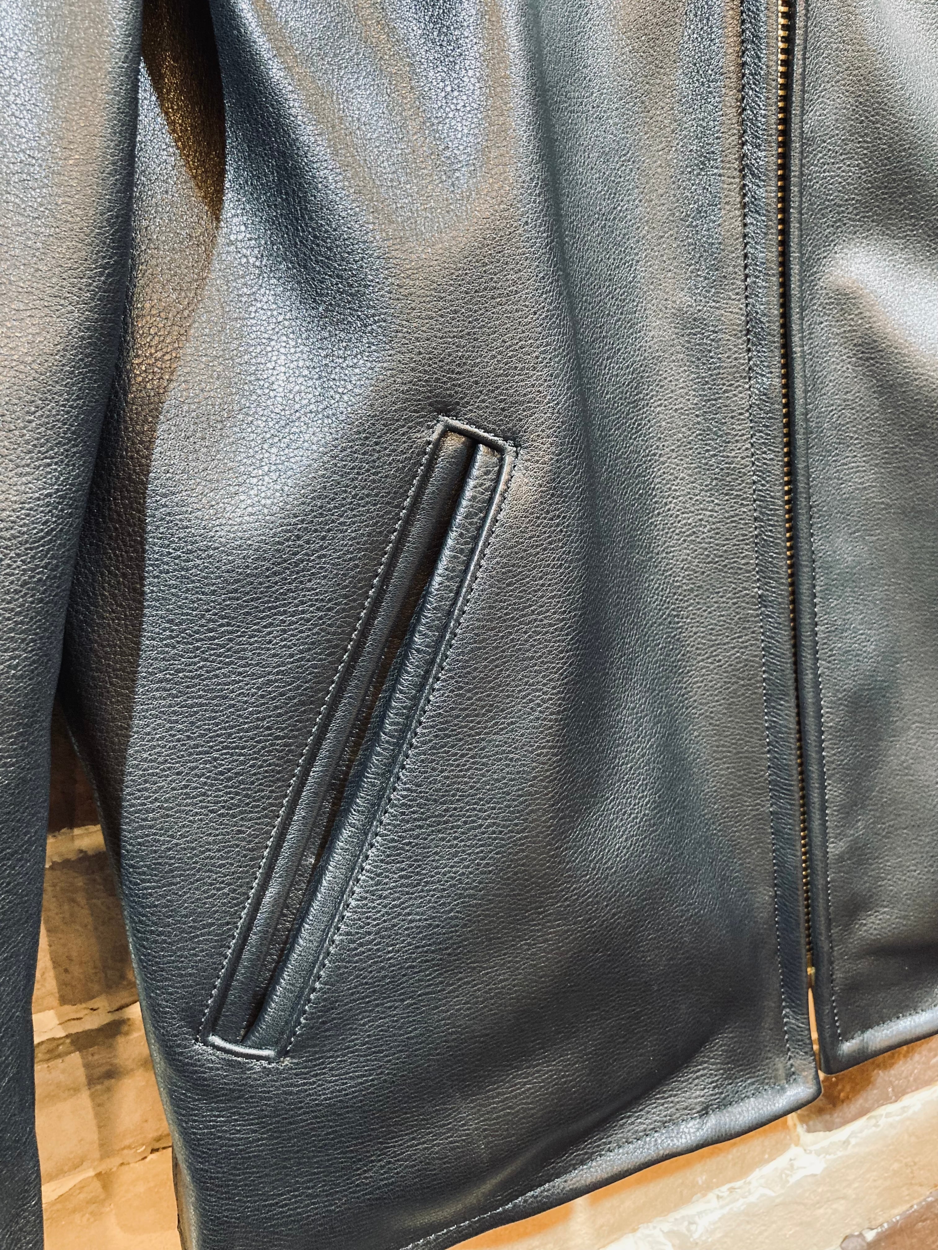 肉厚なレザーながら、カウハイド特有のしなやかさがあり、タフさと着やすさを両立させたジャケットになっております。