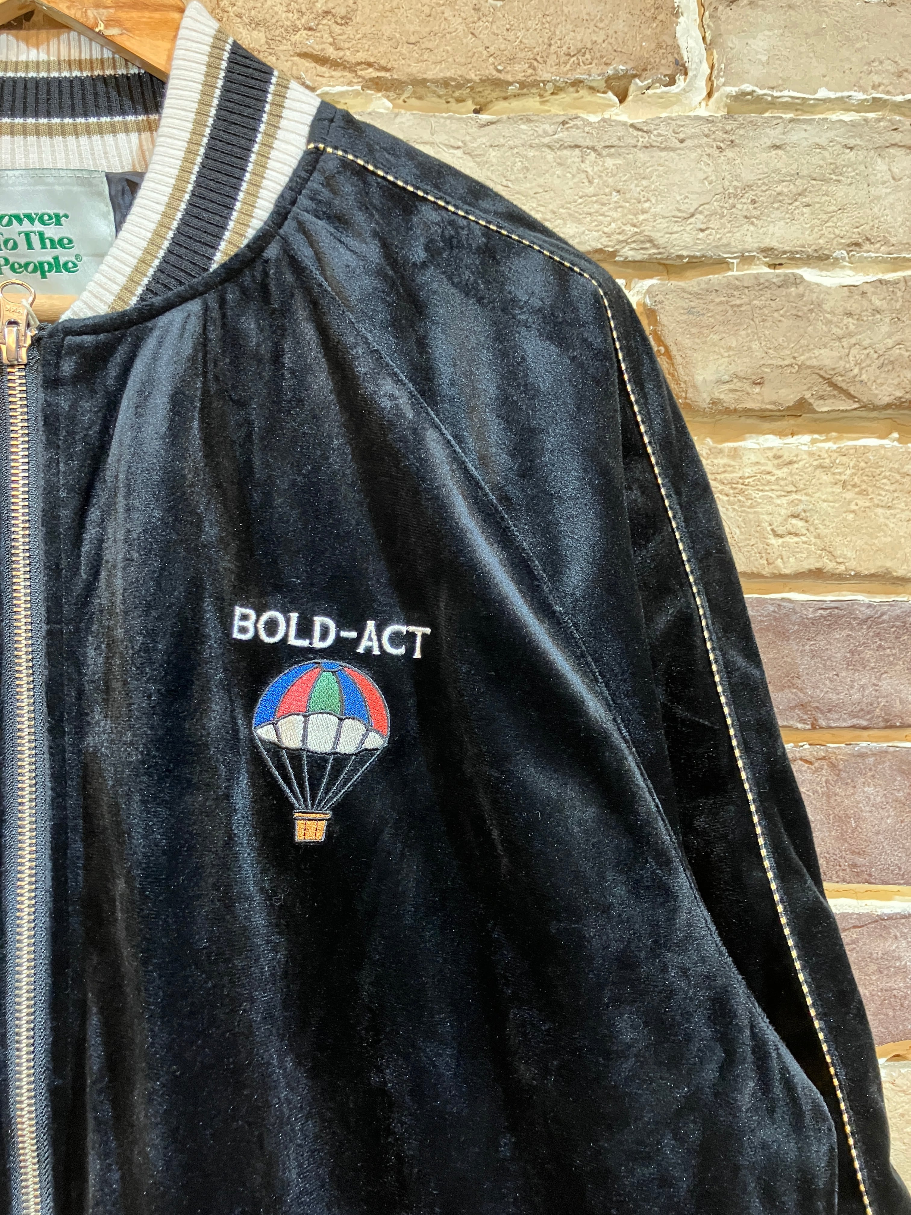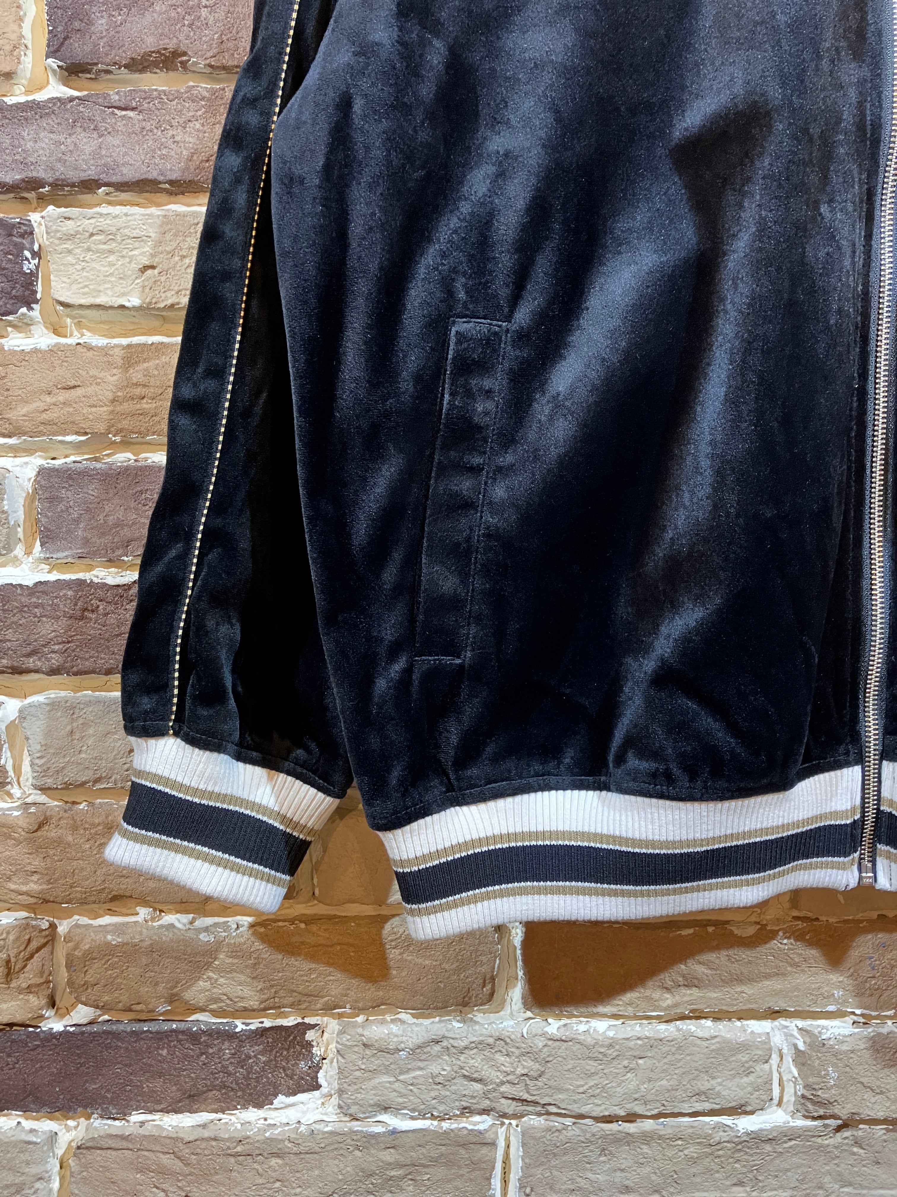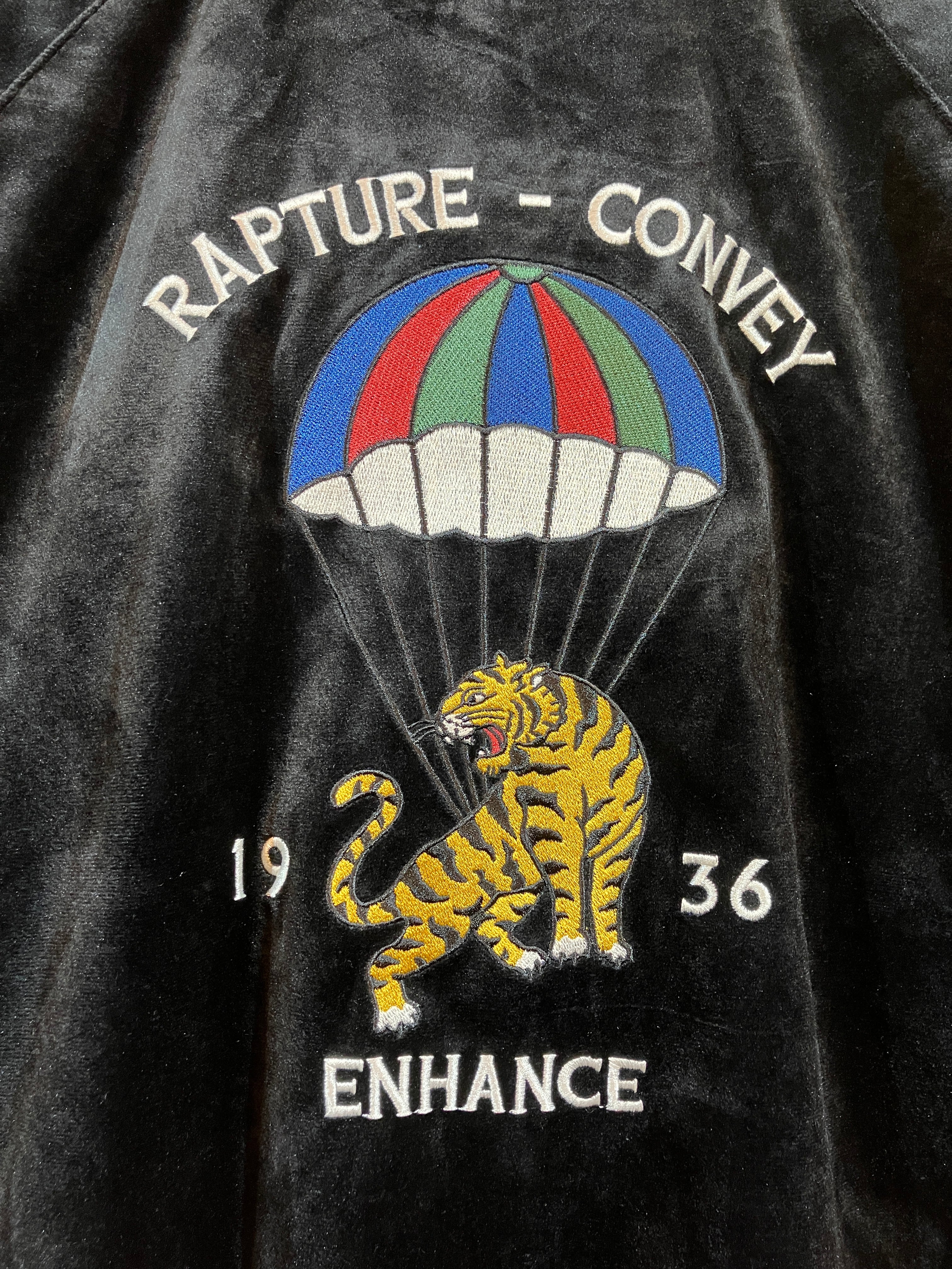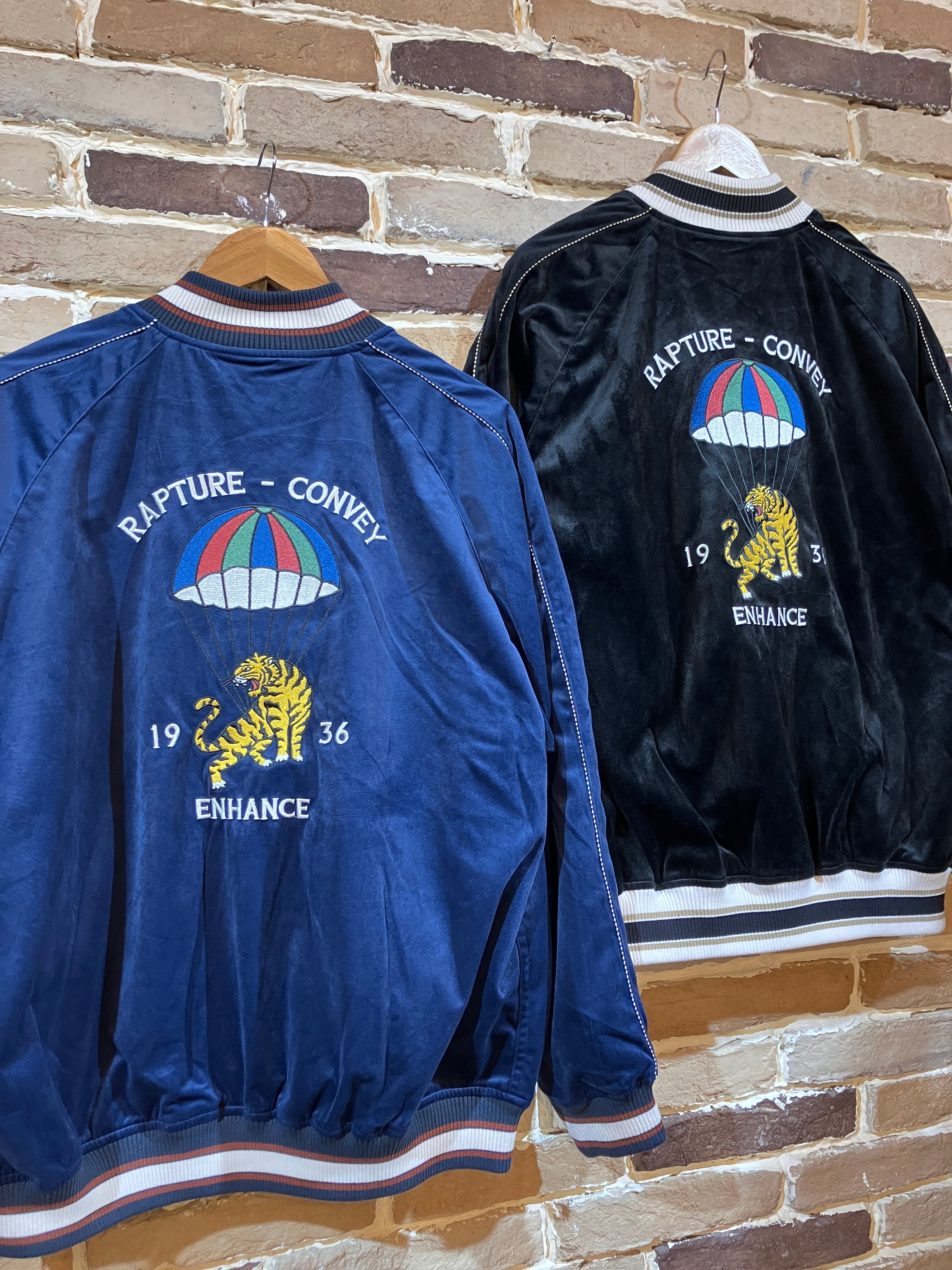 オリジナル刺繍を用いたベロアスカジャンは存在感がありながらも、大人っぽく着られる1枚。