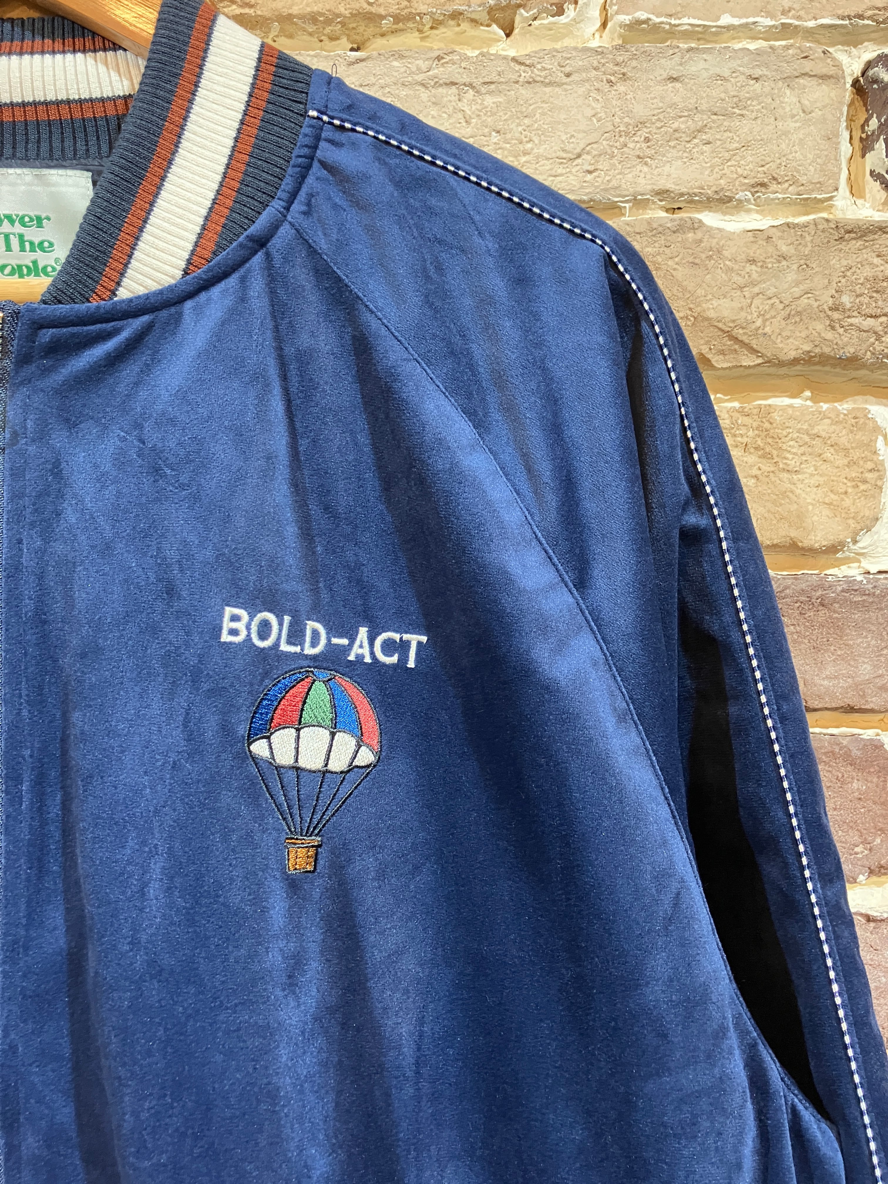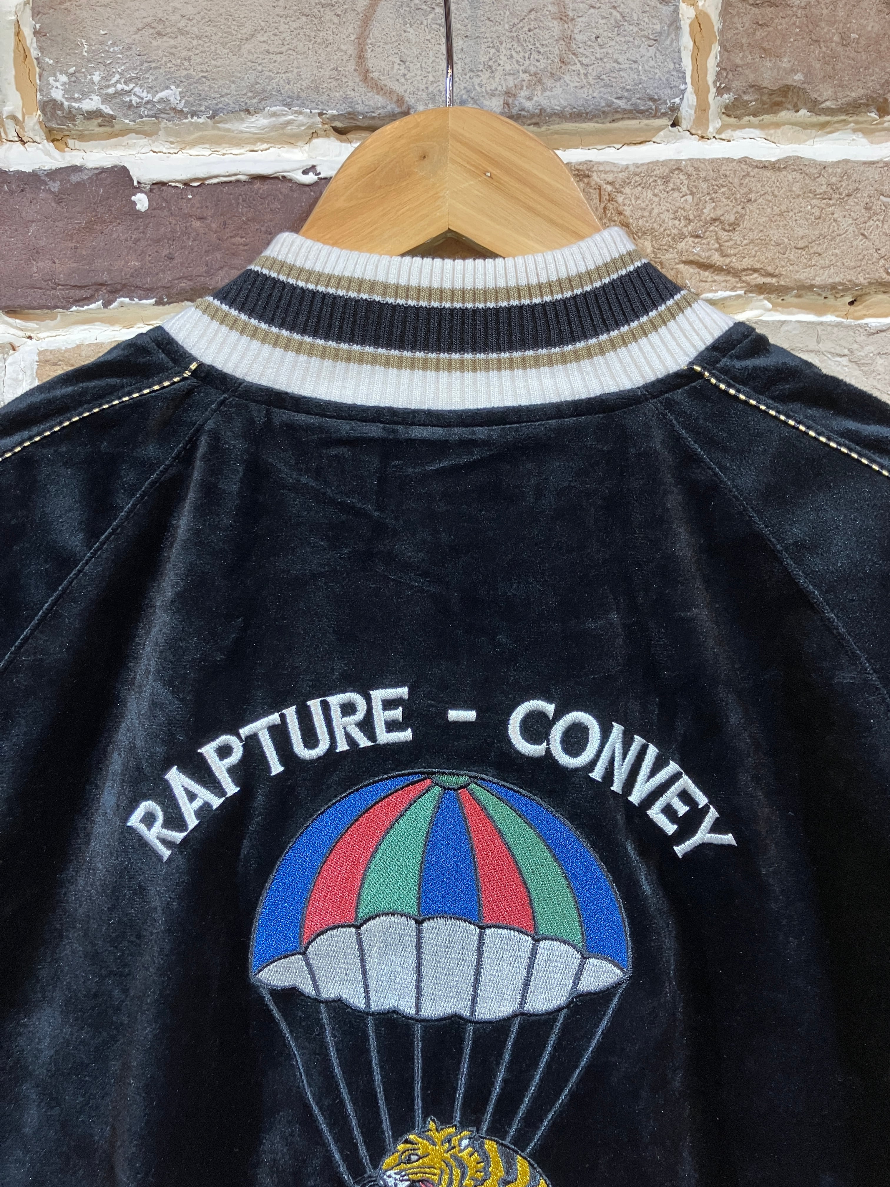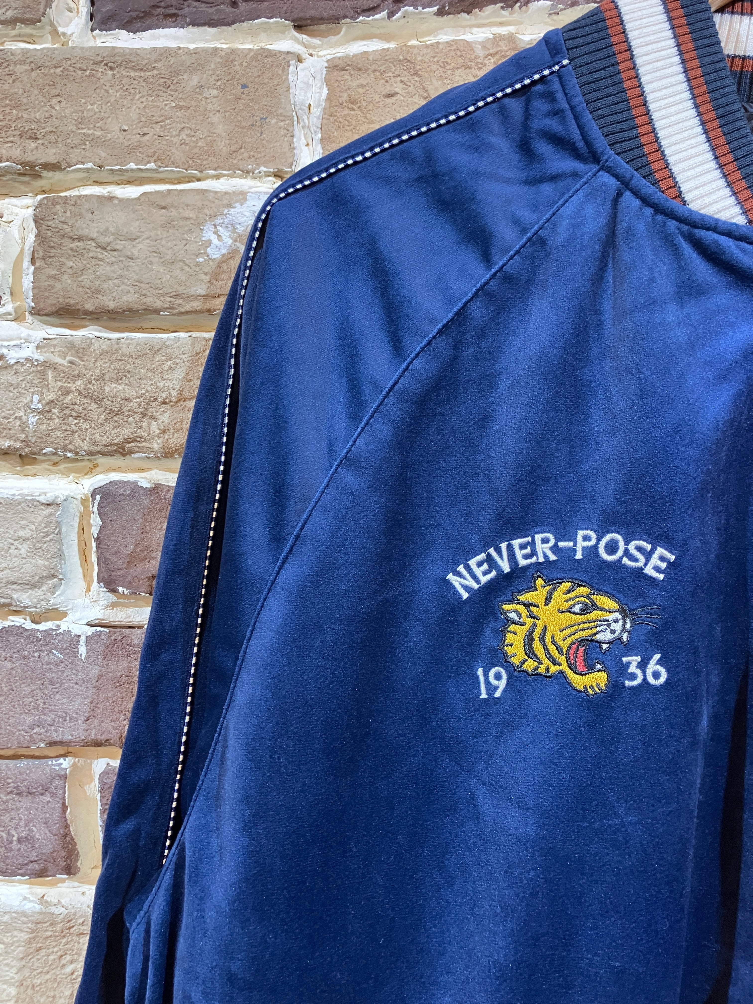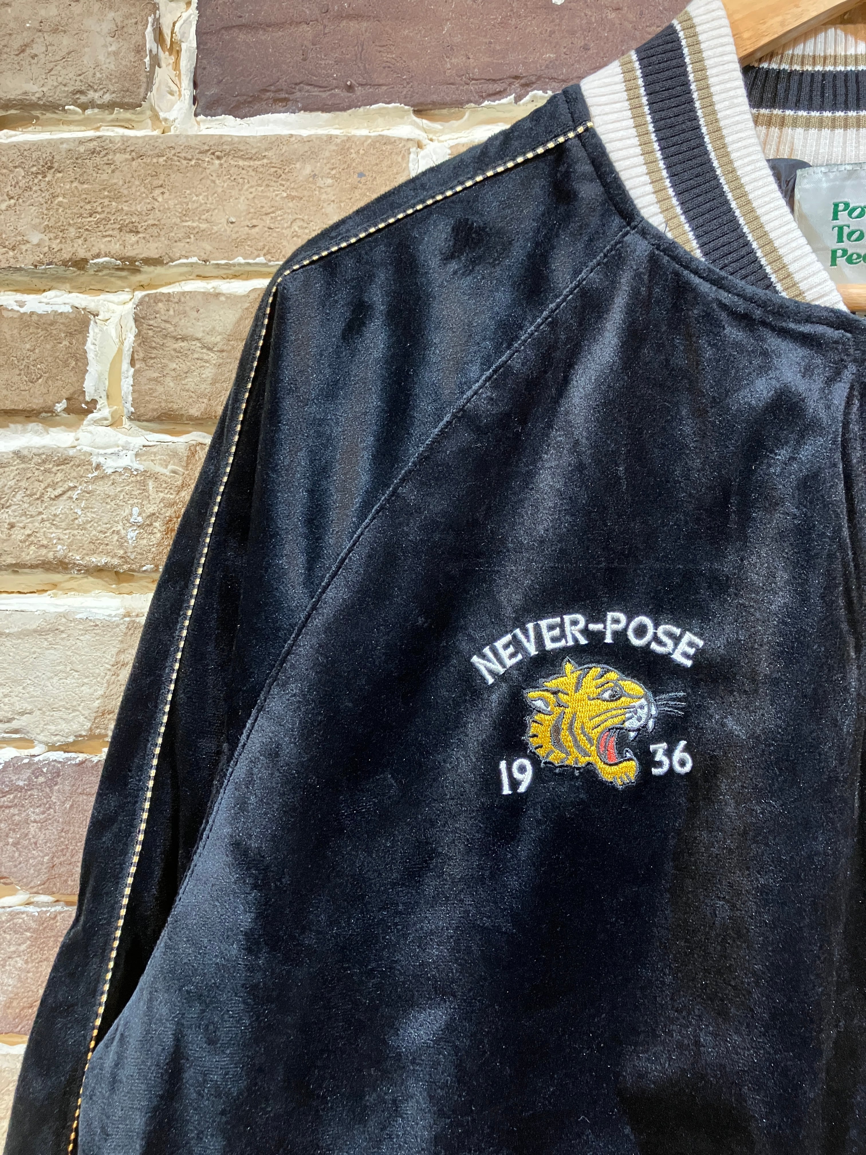 オリジナル刺繍を用いたベロアスカジャンは存在感がありながらも、大人っぽく着られる1枚。