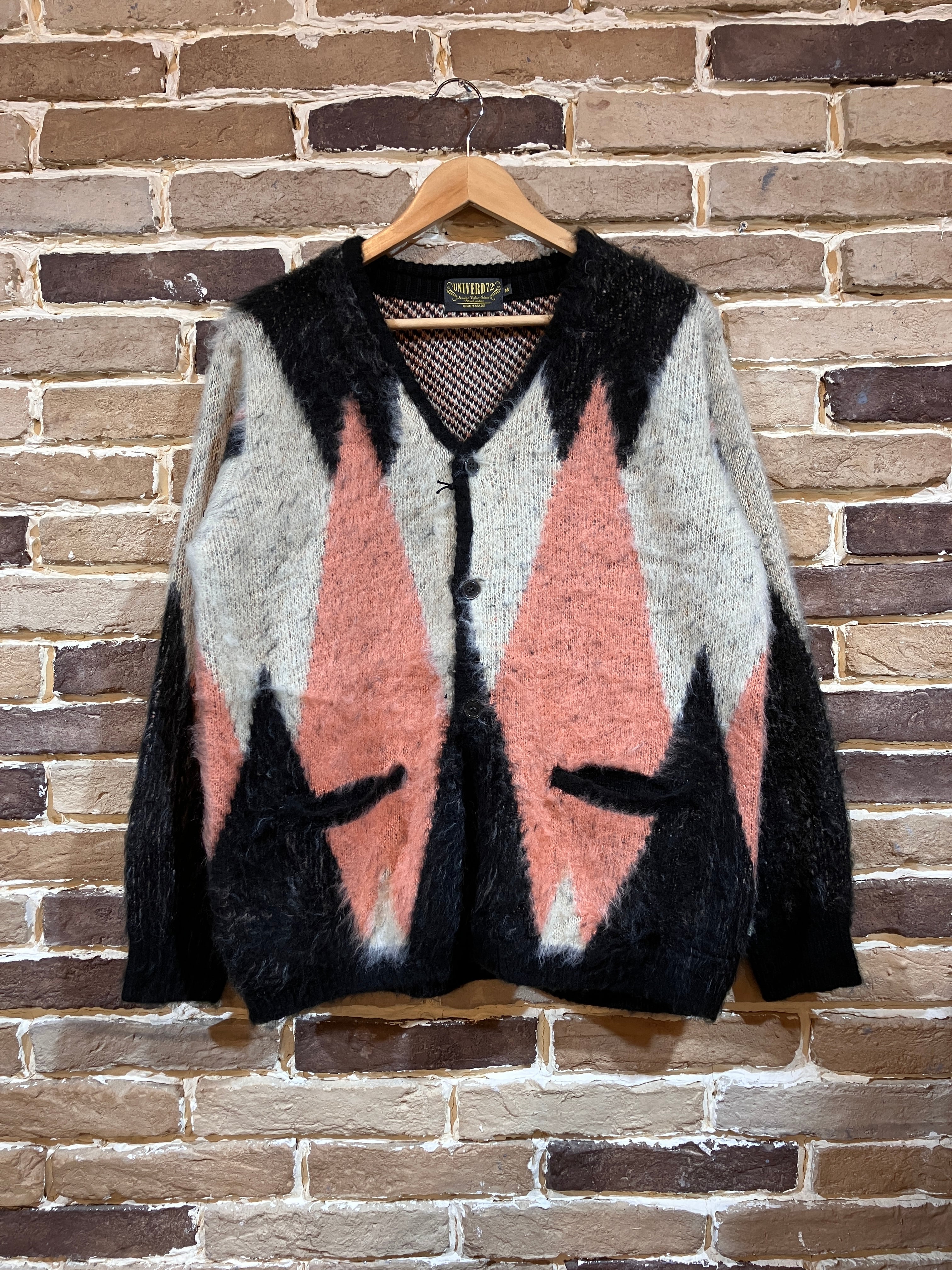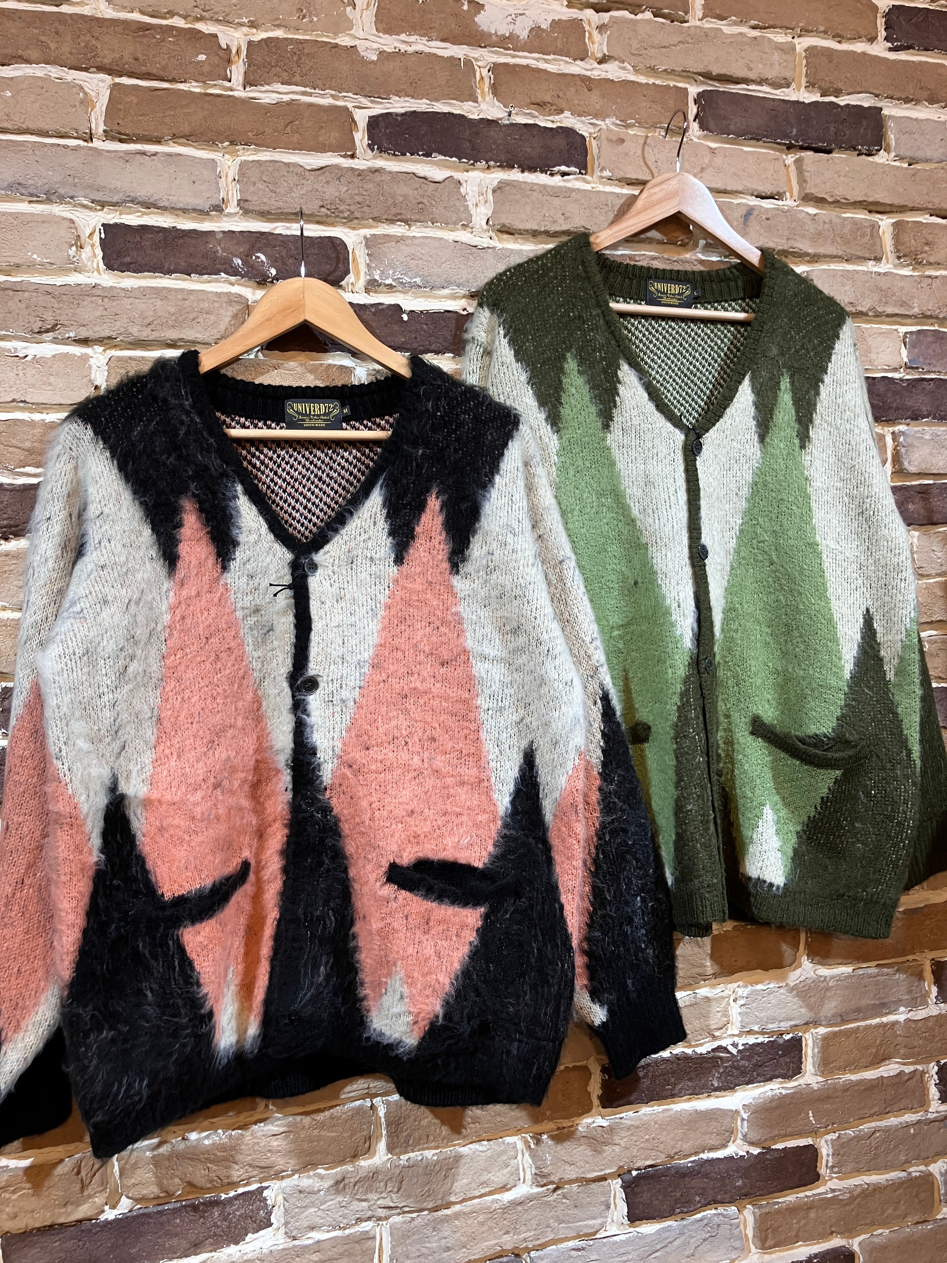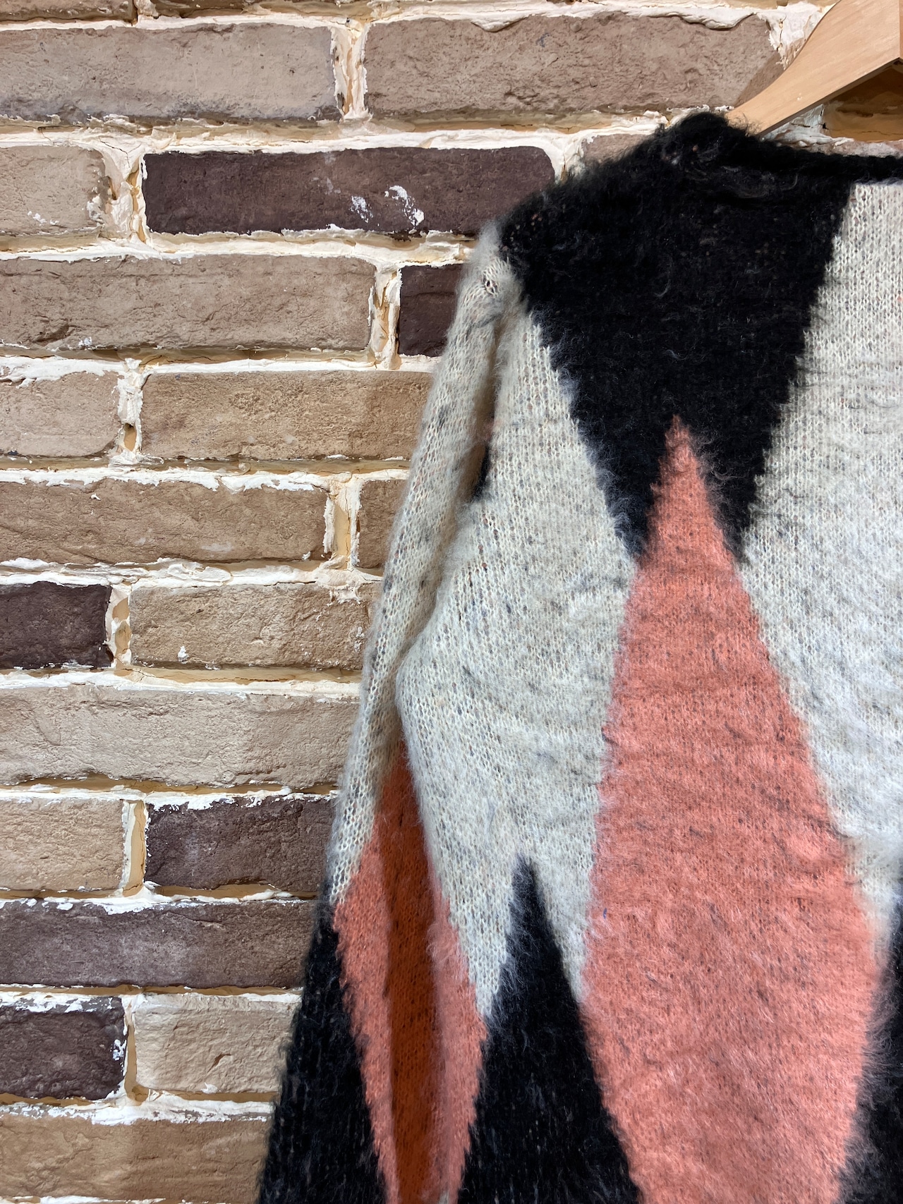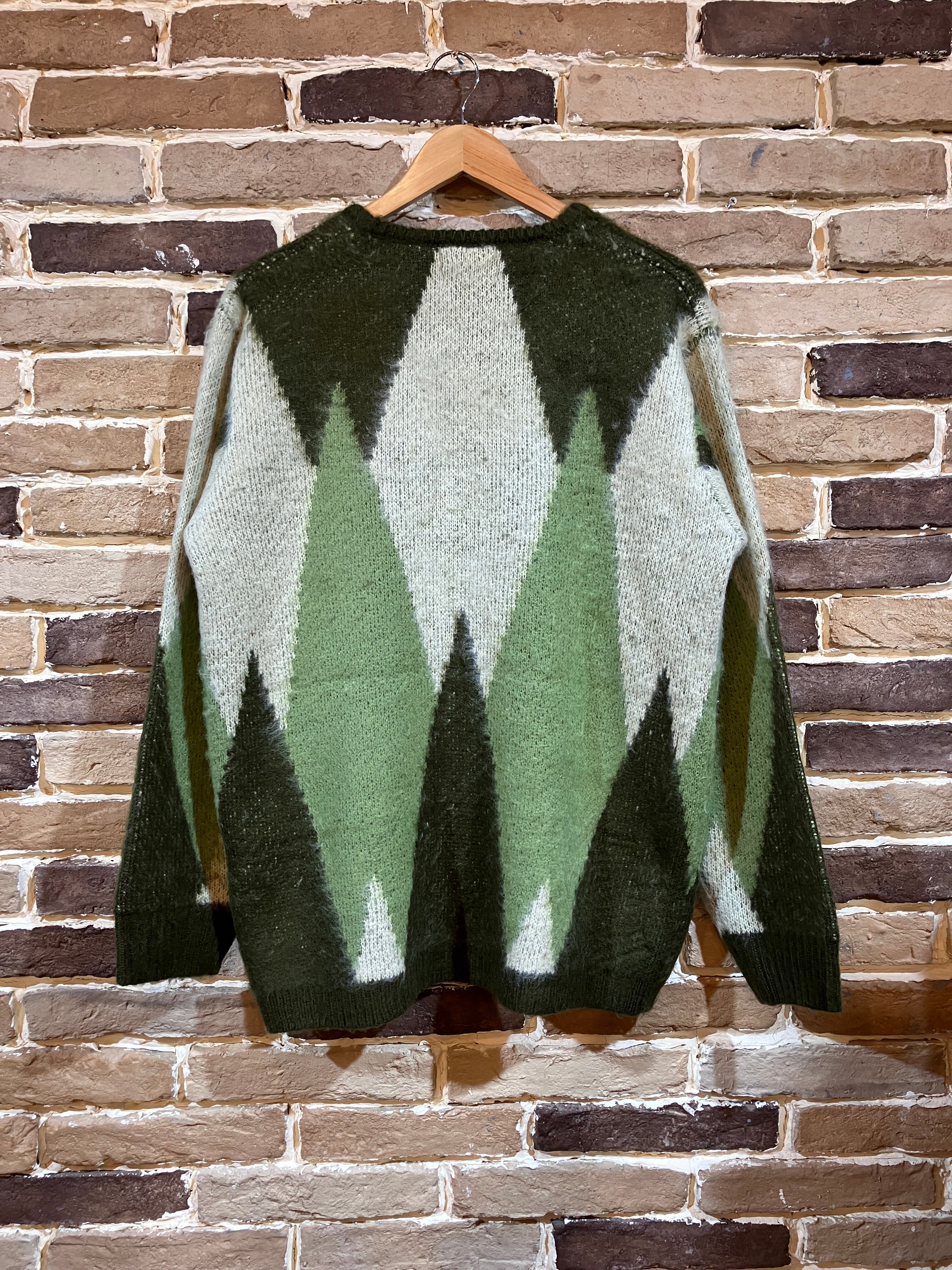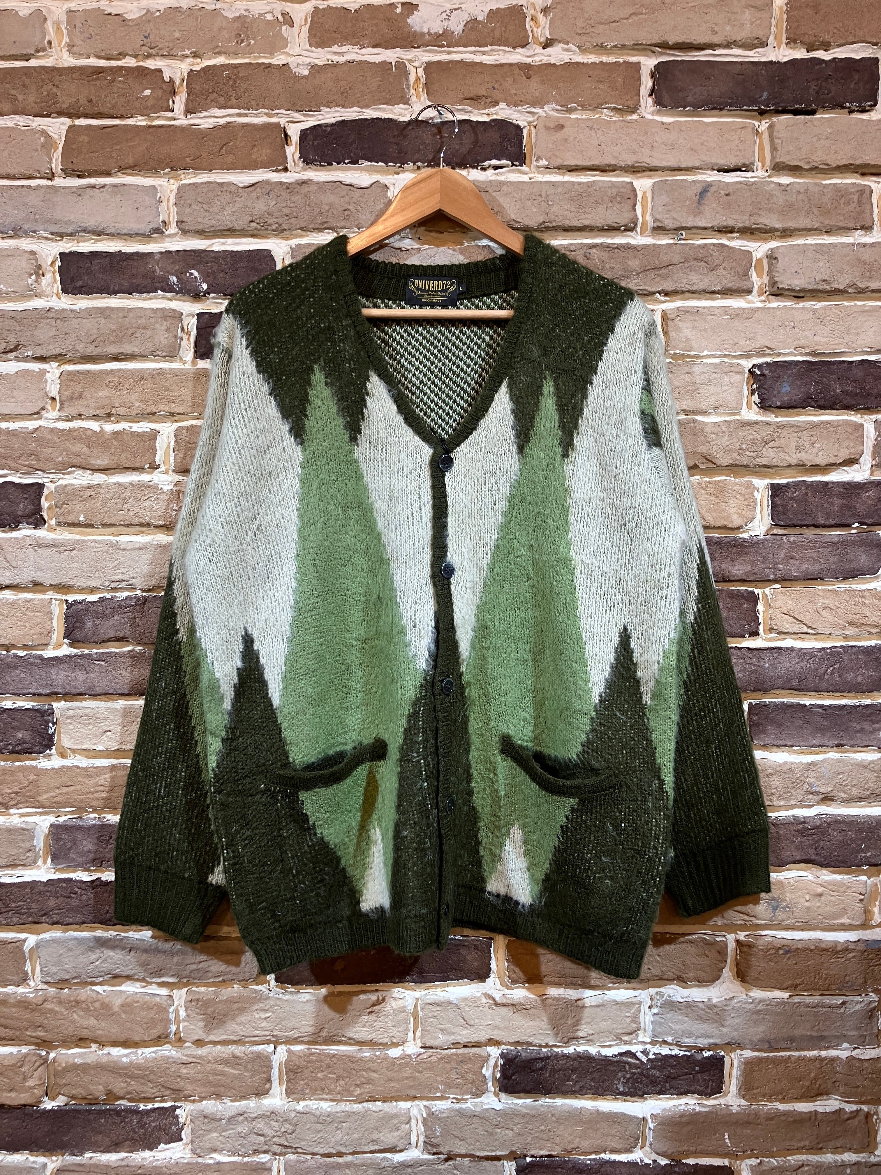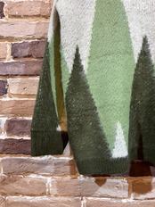 ダブルジャガードでおられた、秋冬らしい季節感も感じられる色使いのダイヤ柄カーディガン。