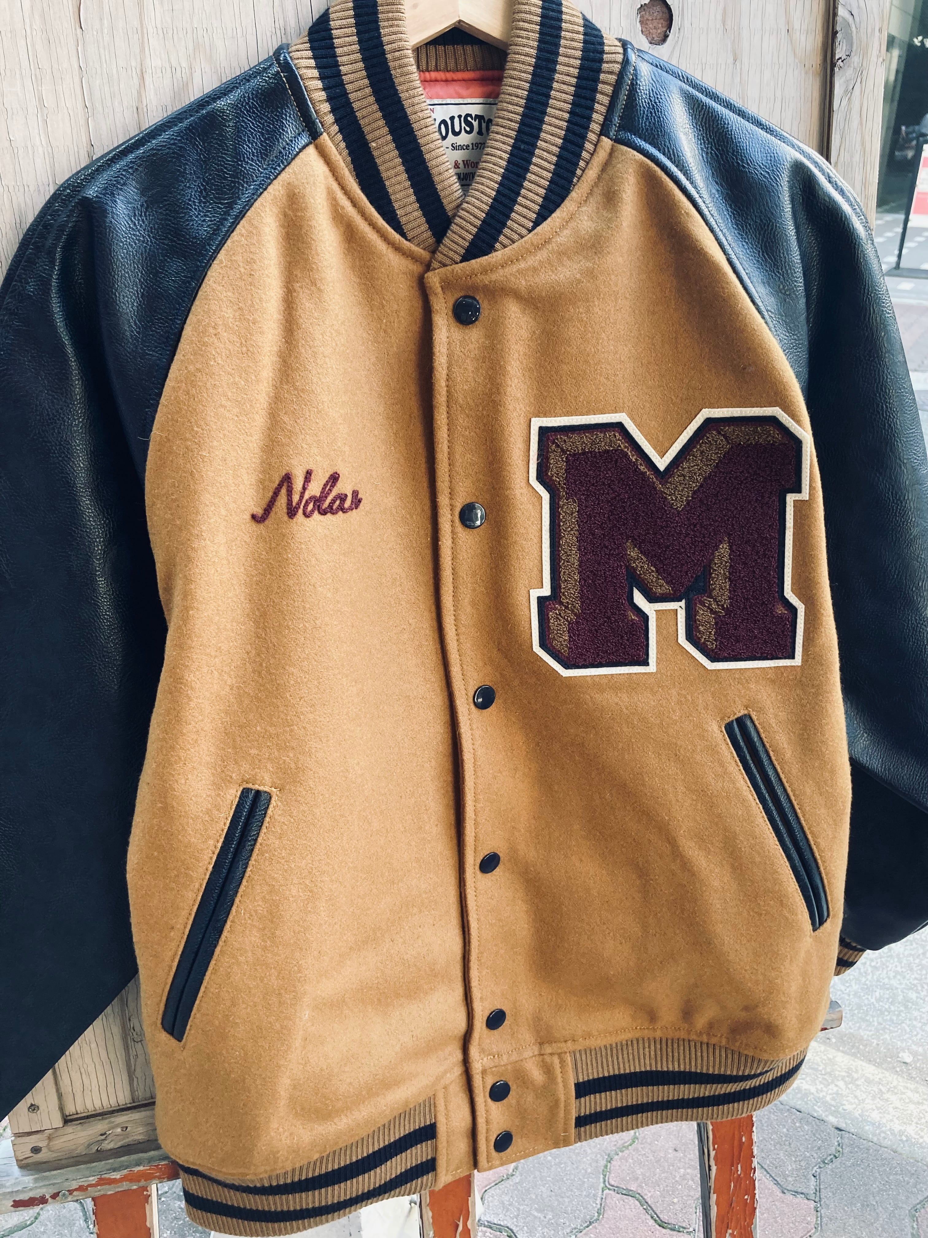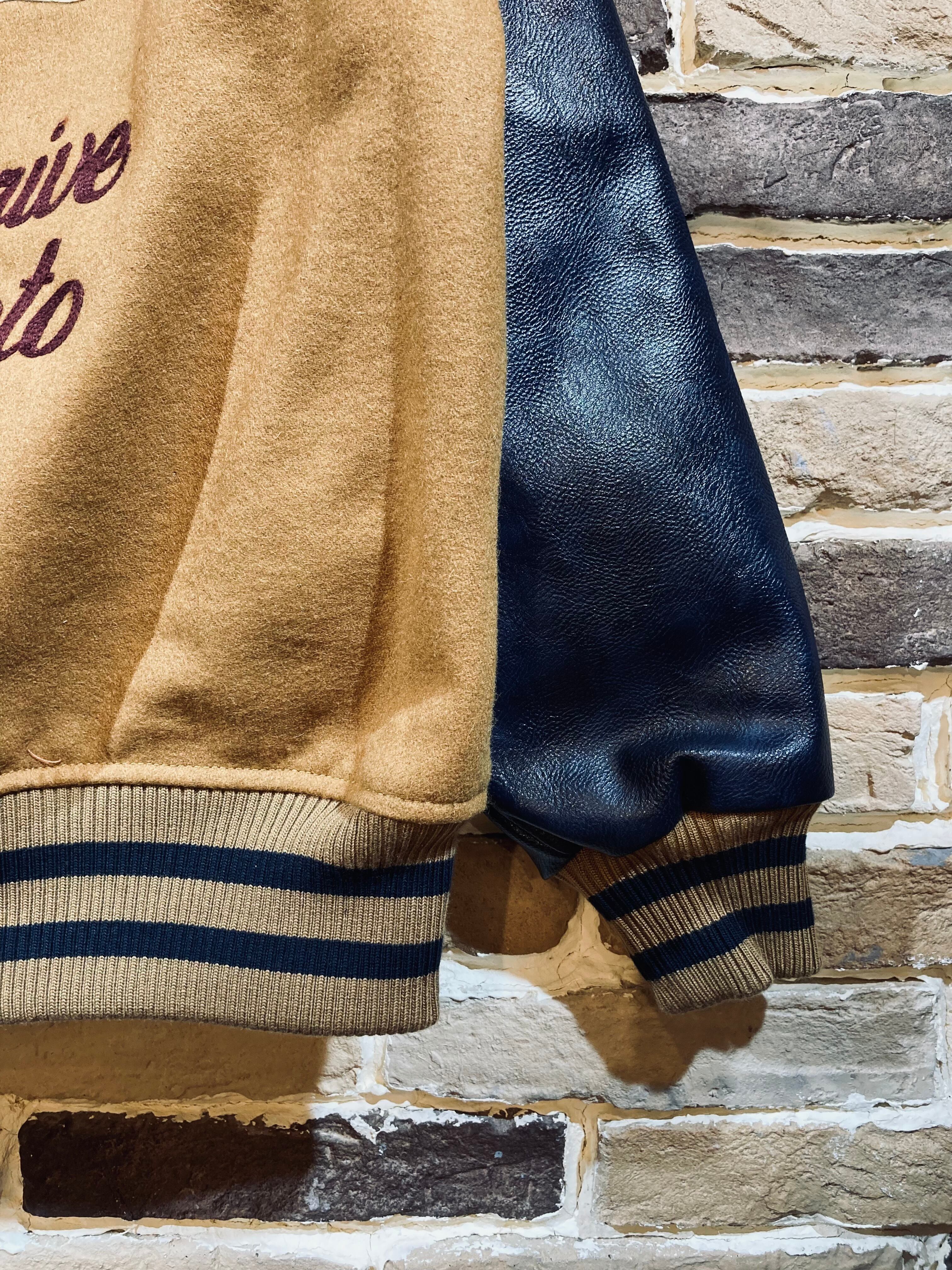 ボディには柔らかく発色のいい肉厚なウールメルトン生地を採用し、袖には本革にも見えるハイクォリティなフェイクレザーを使用した本格的な雰囲気のアワードジャケット。1950年代頃に良く見られたデザインの一つでもある、カークラブジャケットライクな柄をサガラワッペンや、チェーン刺繍によって表現。袖通しのいいポリエステル製の裏地は着脱の際にインパクトのあるピンクカラーを採用した中綿キルトを採用。防寒性も完備しつつ着脱もスムーズでインナーとの干渉も少ないため、長時間の着用でもストレスなく着用可能。