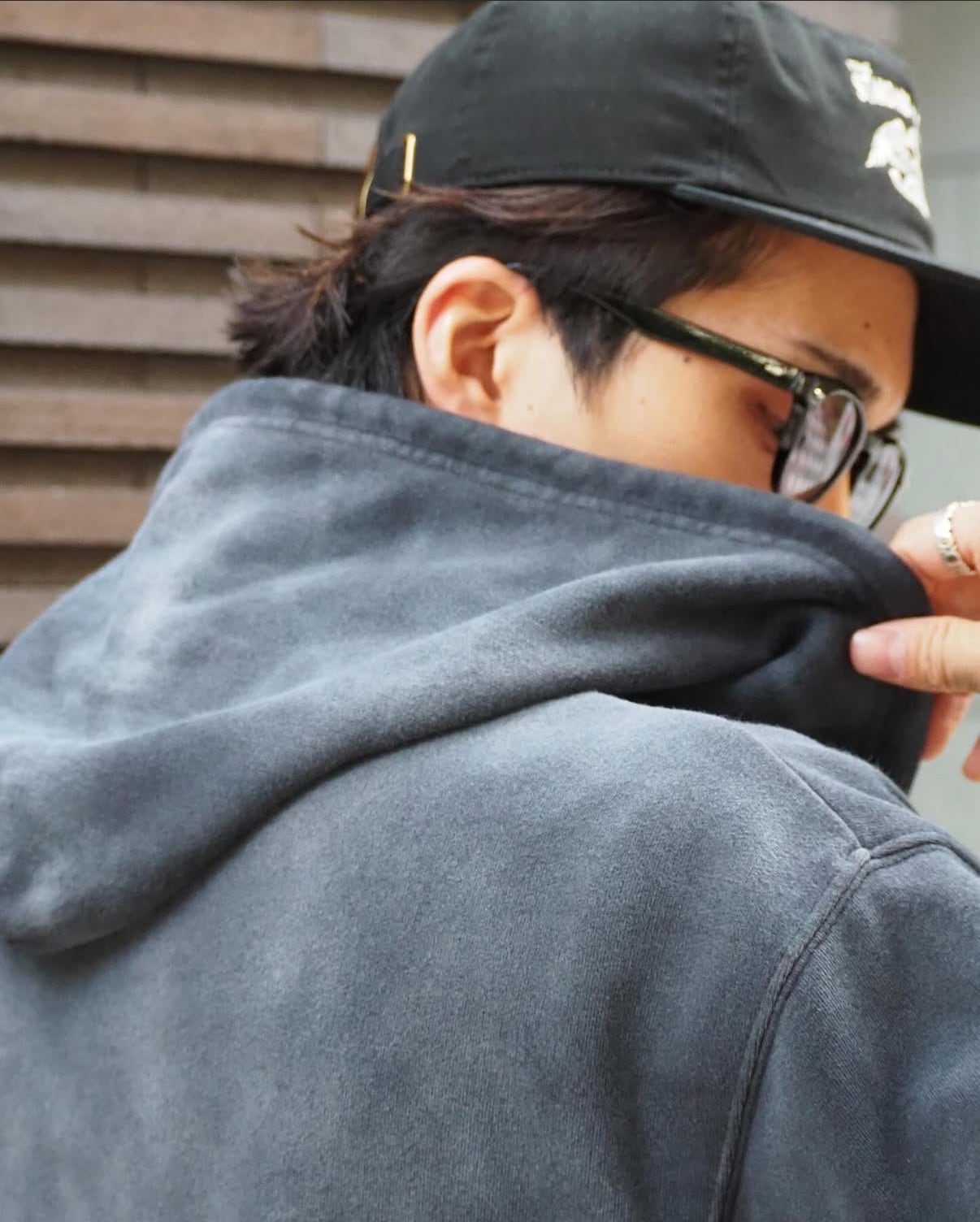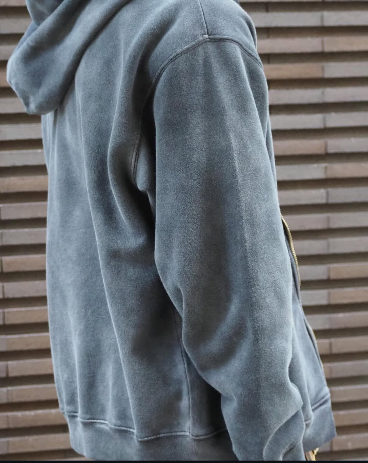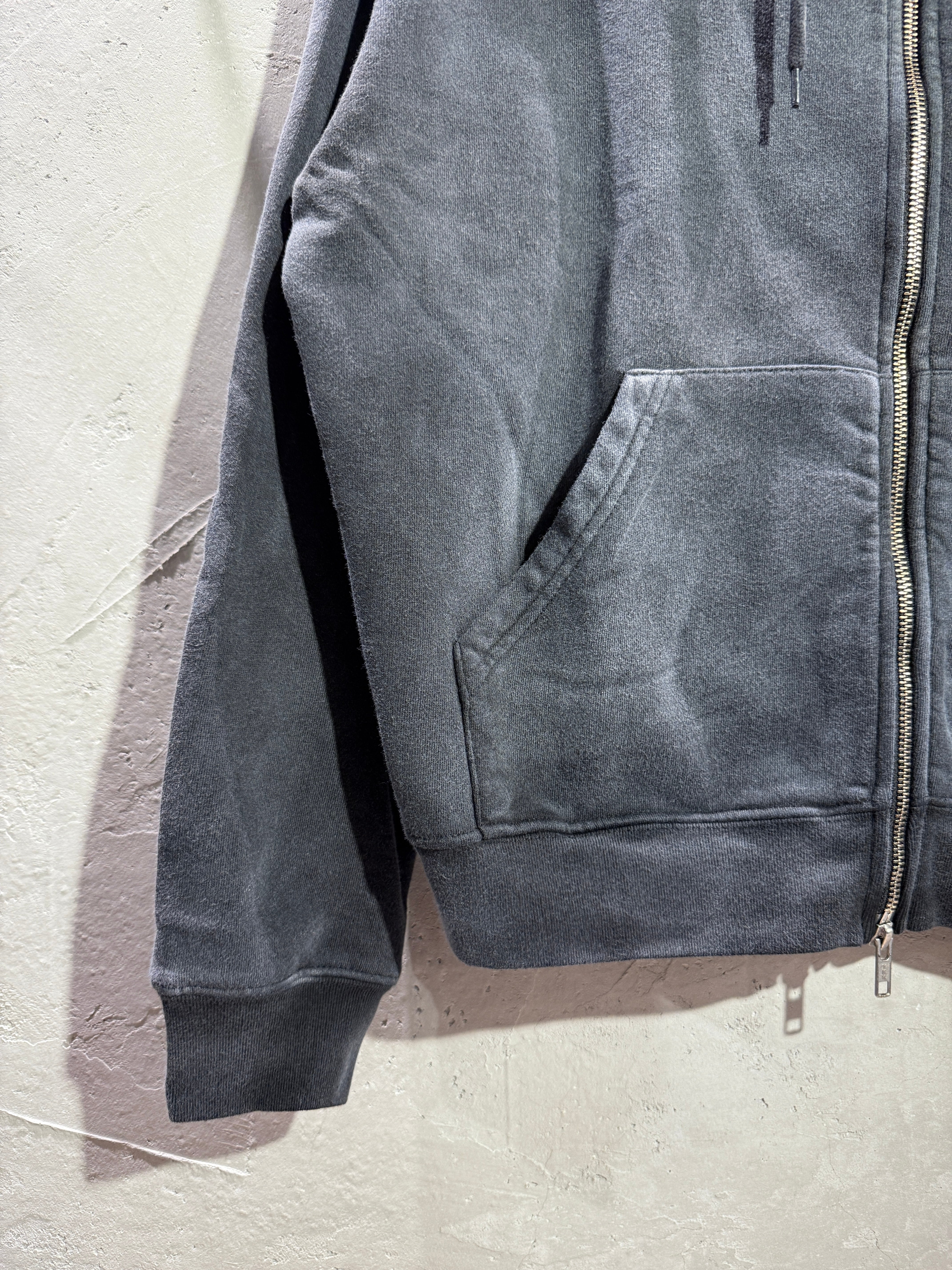 長年着込んだかのようなフェード感が特徴のジップパーカー。