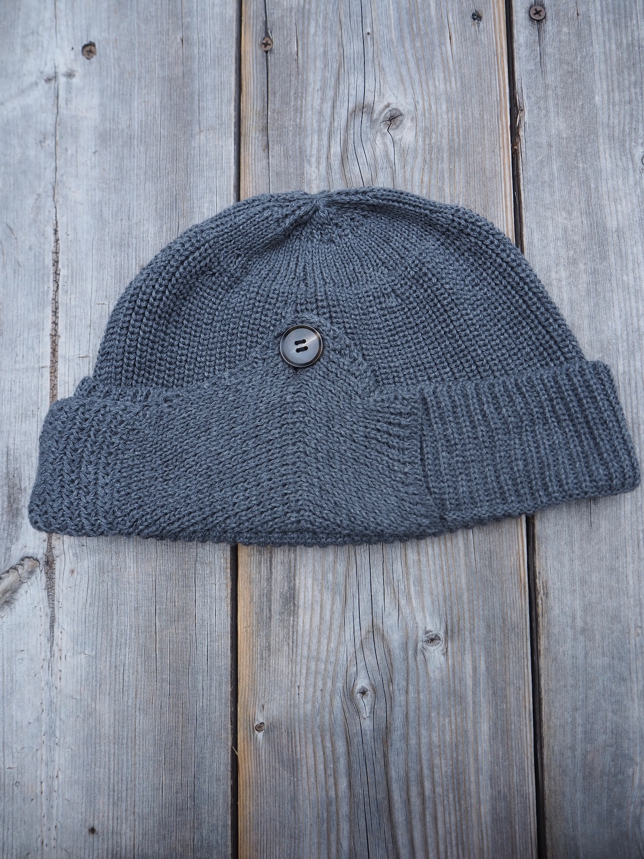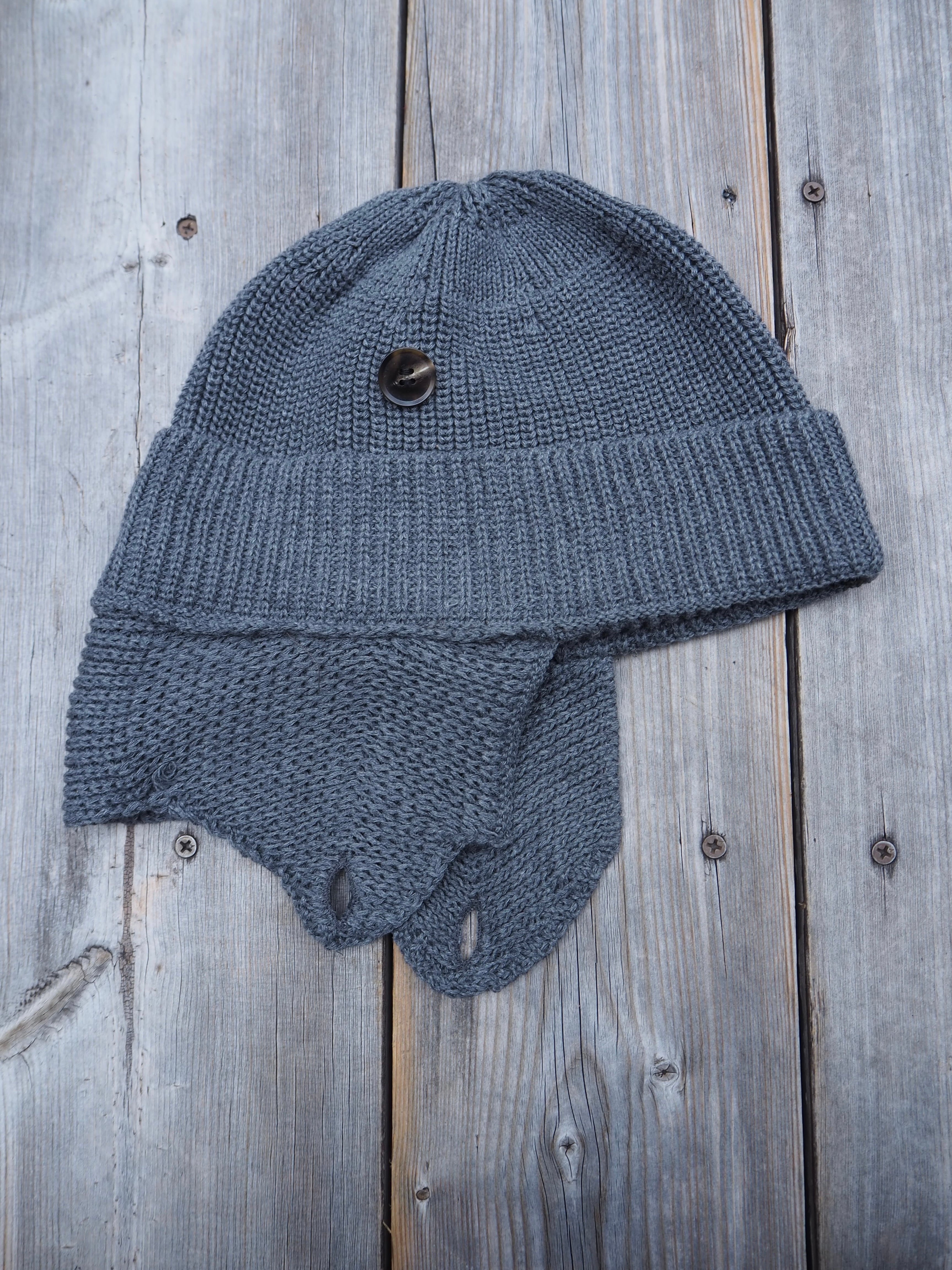 耳あて付きのクラシカルなデザインが目を引く、コットンニットのハンティングワッチ。