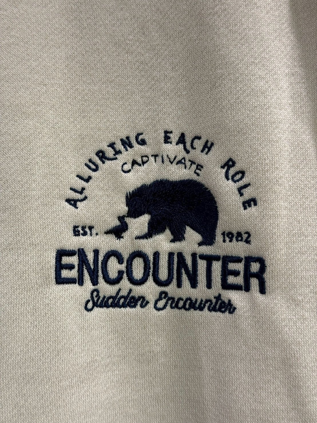 左胸ワンポイント刺繍、背中には大胆な刺繍を施した遊び心ある“ベアモチーフ”デザイン。