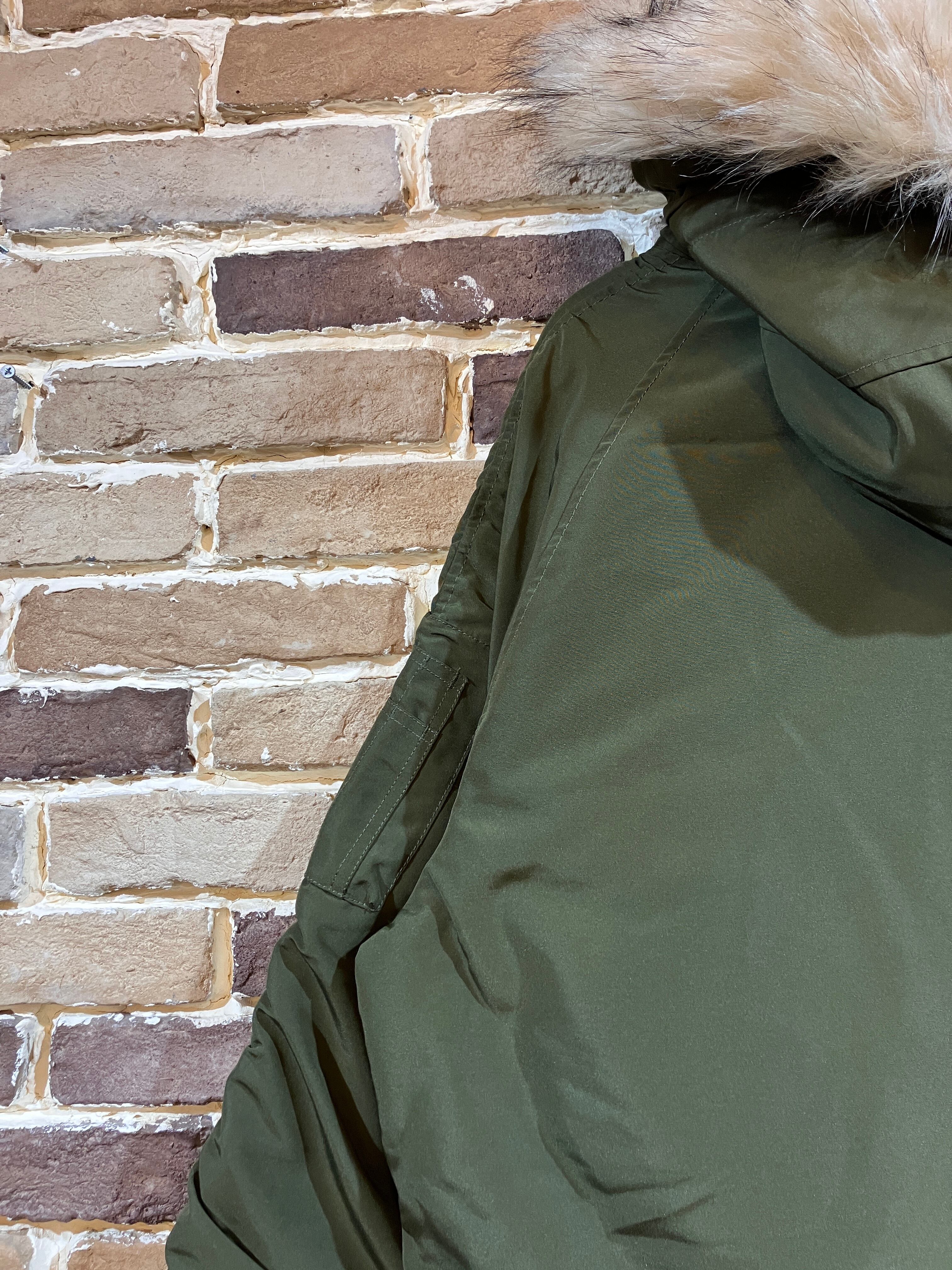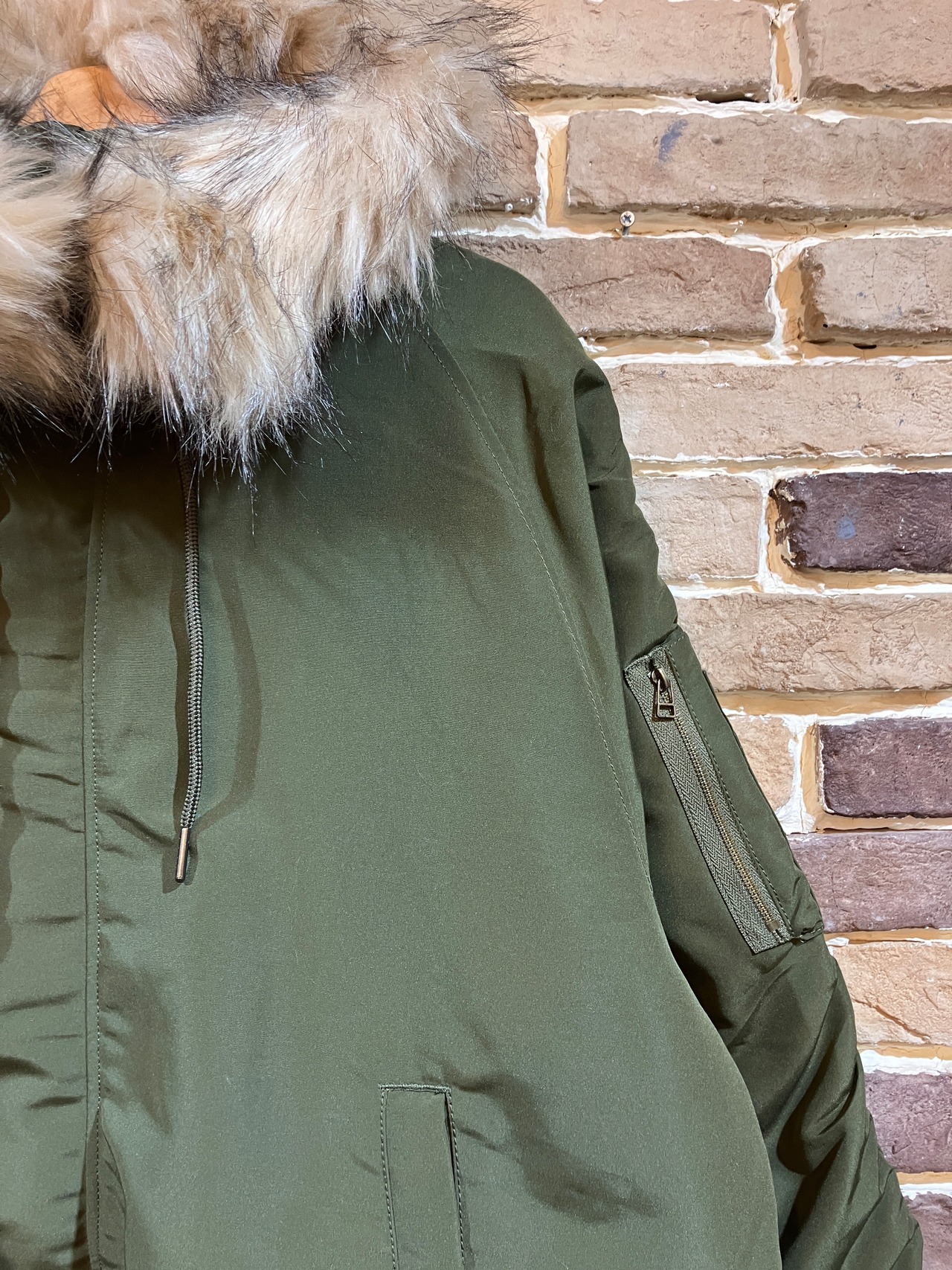 ミリタリー定番のフライトジャケットを本格派ディテールで再現。ファーは取り外し可能で、裏地はボア使用。