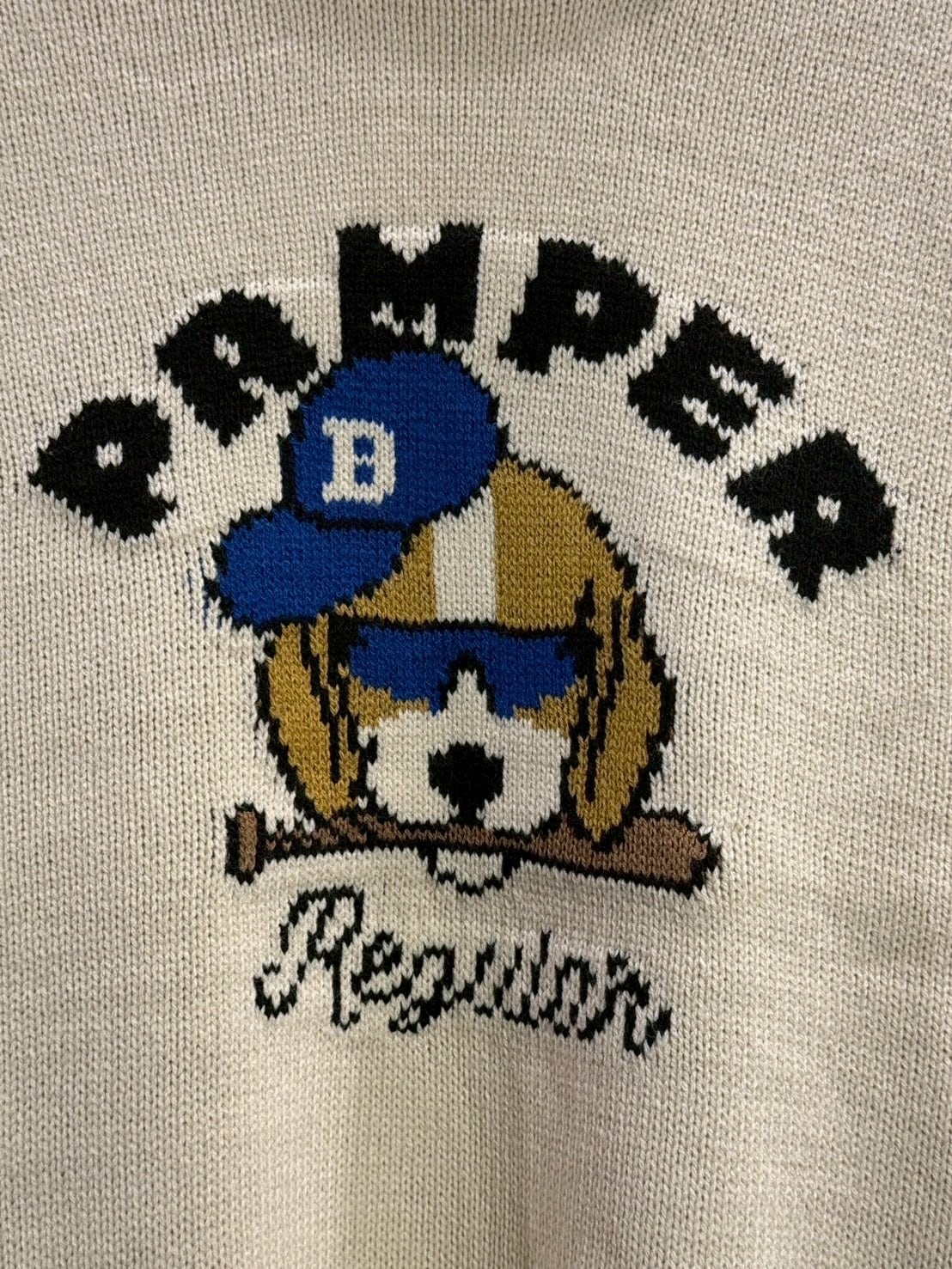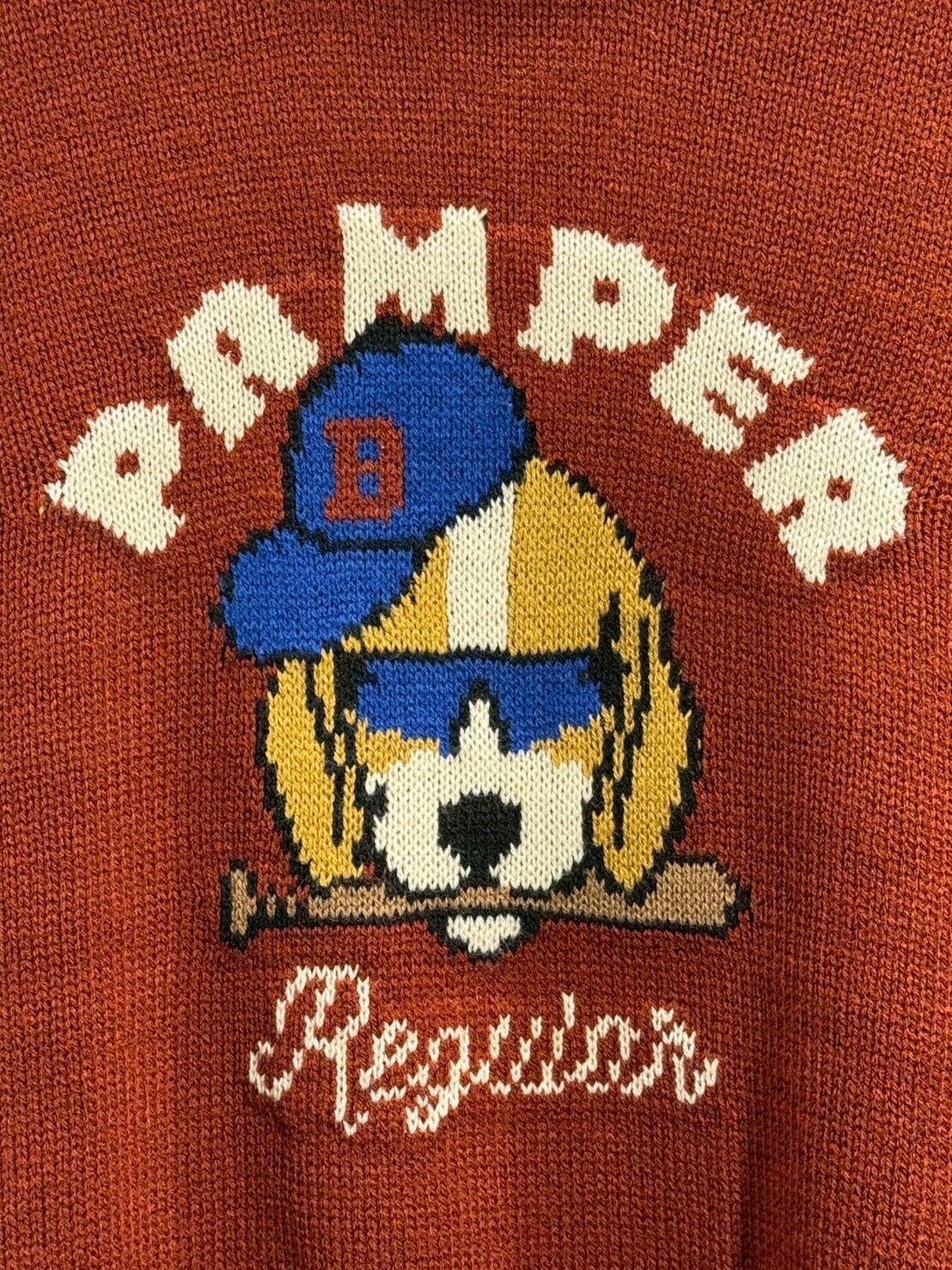 フロントにあしらったユニークなアニマルモチーフが印象的な、遊び心あふれるアクリルニット!