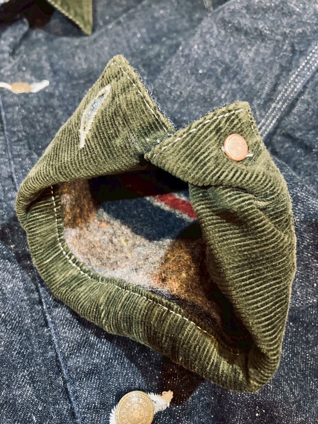 襟やカフス、ポケットフラップがウール混のコールテンなのも渋いつくりです。