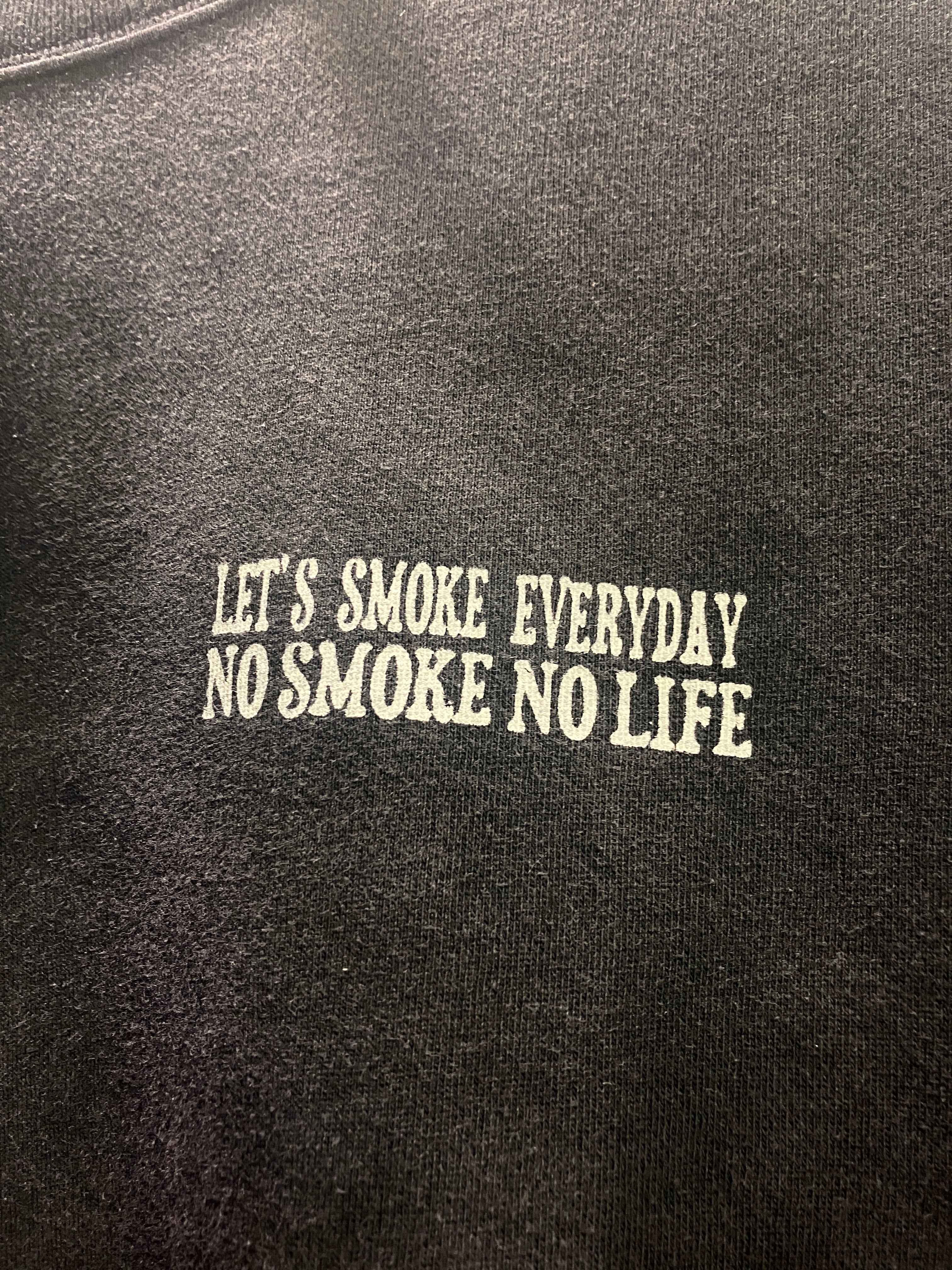 フロント左胸には〝LET'S SMOKE EVERYDAY〟のロゴ、バックにはENJOY SMOKINGより、〝愛煙〟のビックプリントが存在感を放ちます。愛煙家にはたまらない1着となっています。