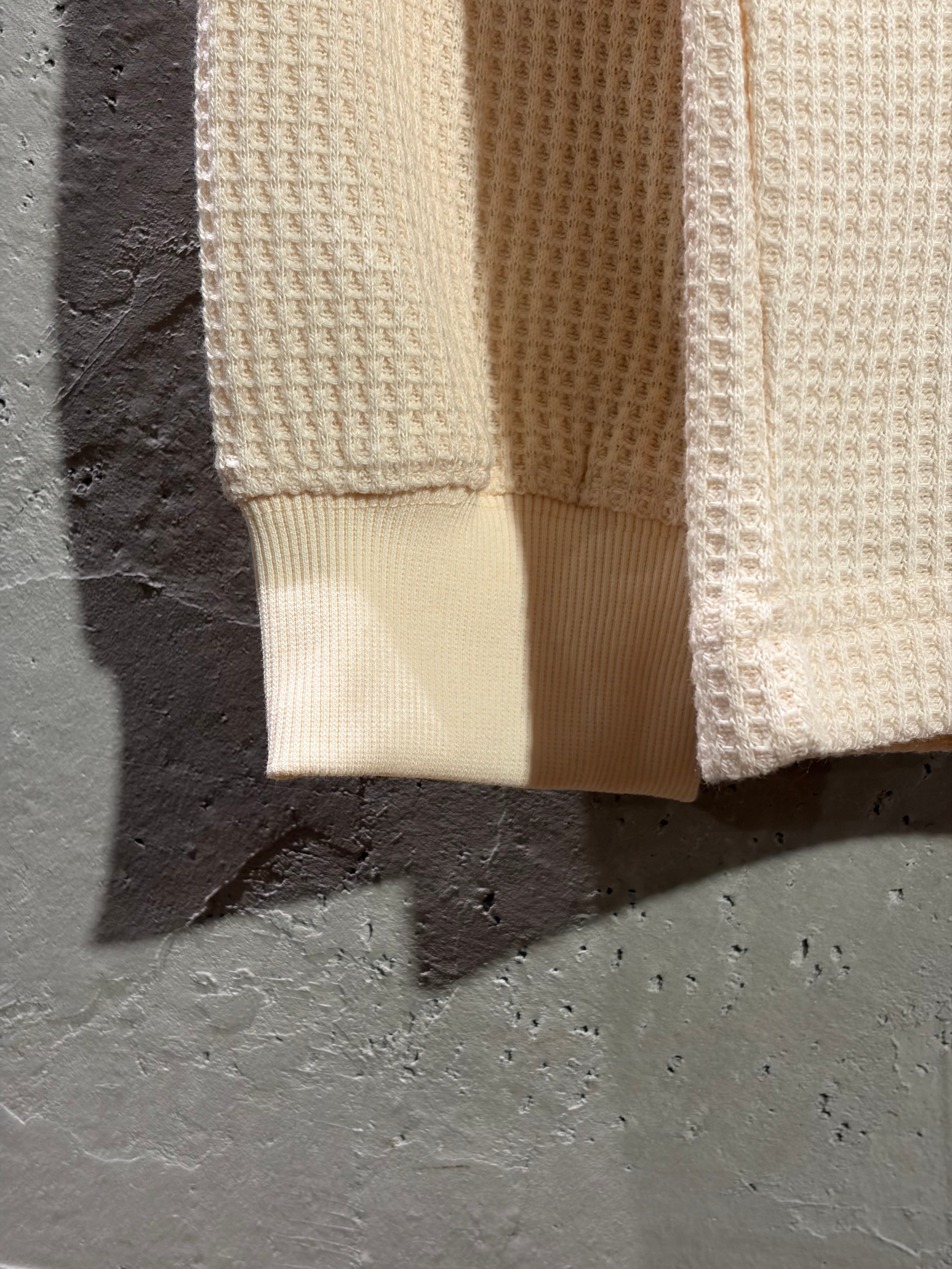 凹凸のあるサーマル生地が生む、無骨でクラシックな表情。