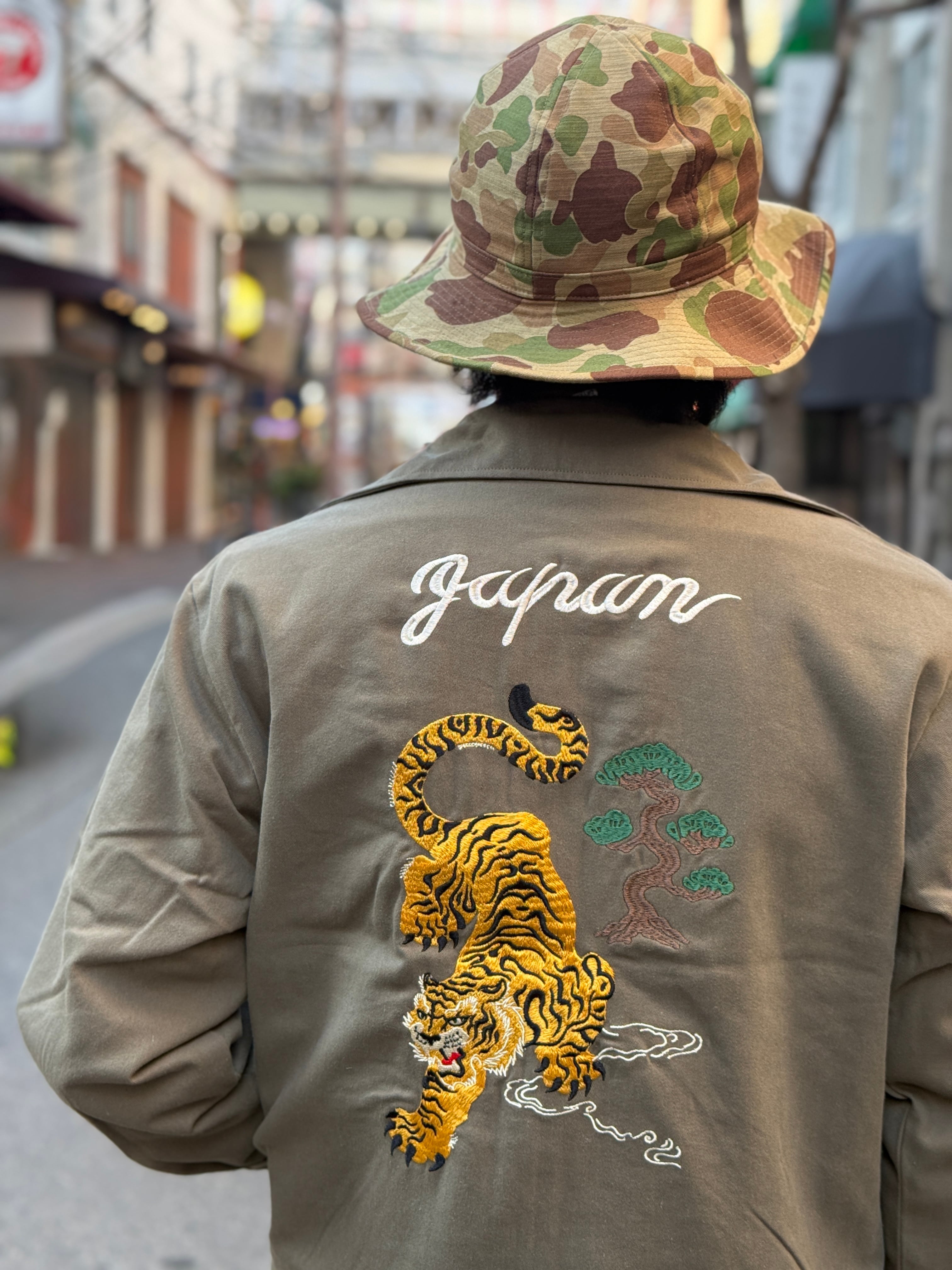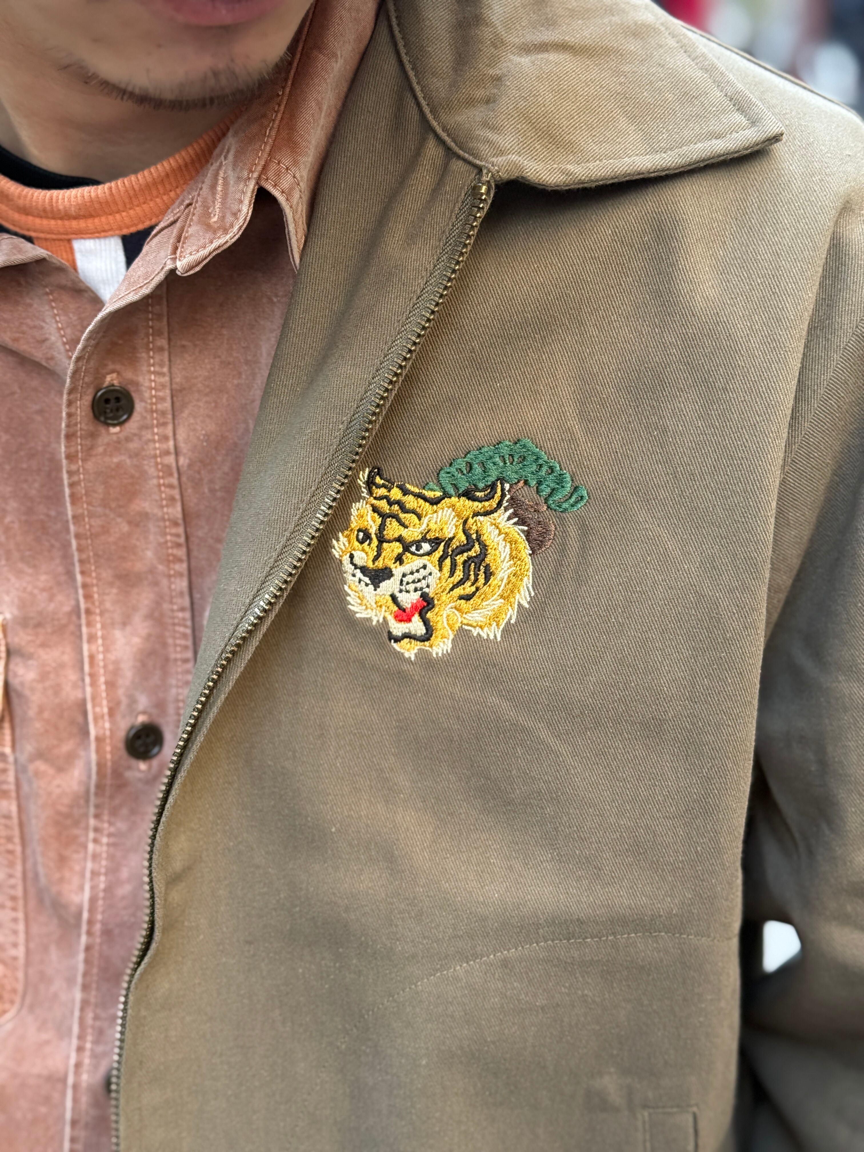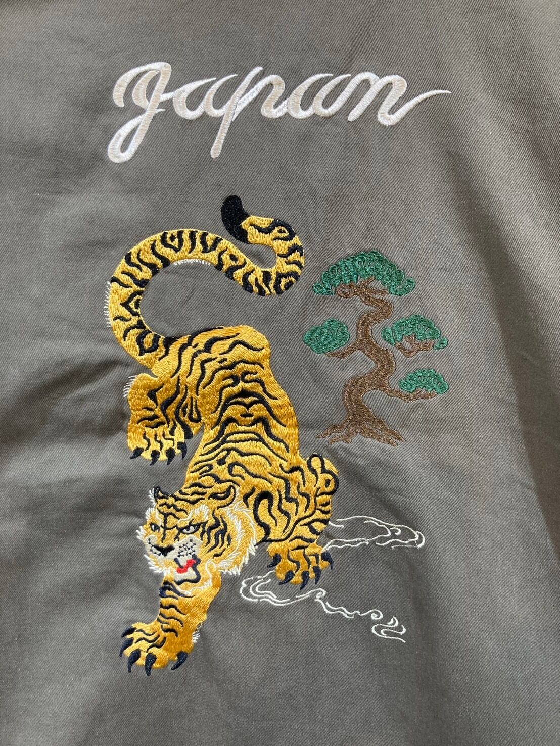 スカジャンを思わせるスーベニア刺繍になっており非常に雰囲気を感じさせるデザインです。
