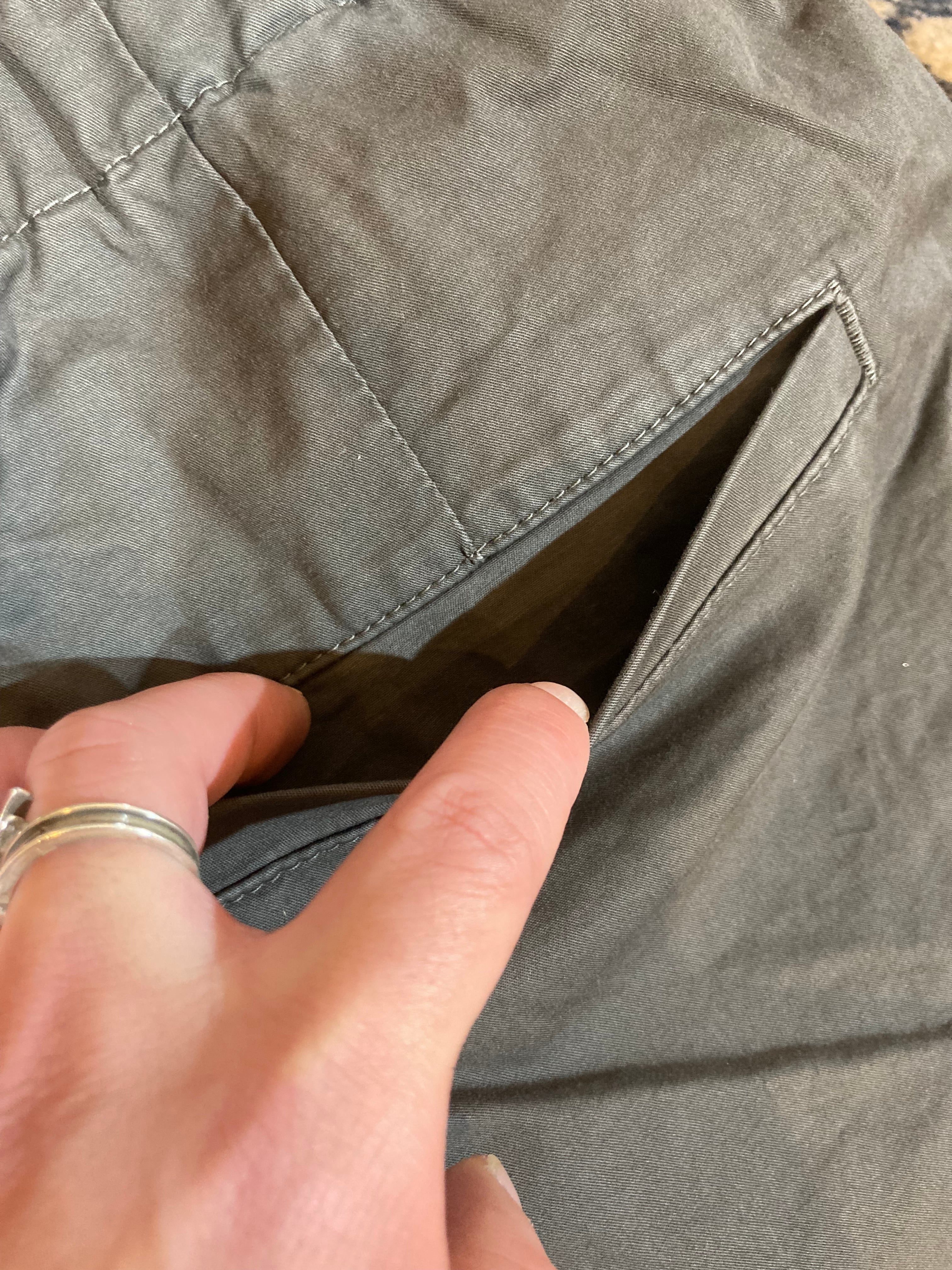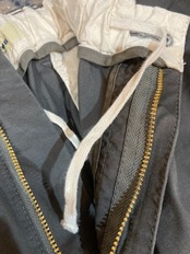 ウエストはイージータイプながらもベルトループ付きでドローコードは内側となっております。