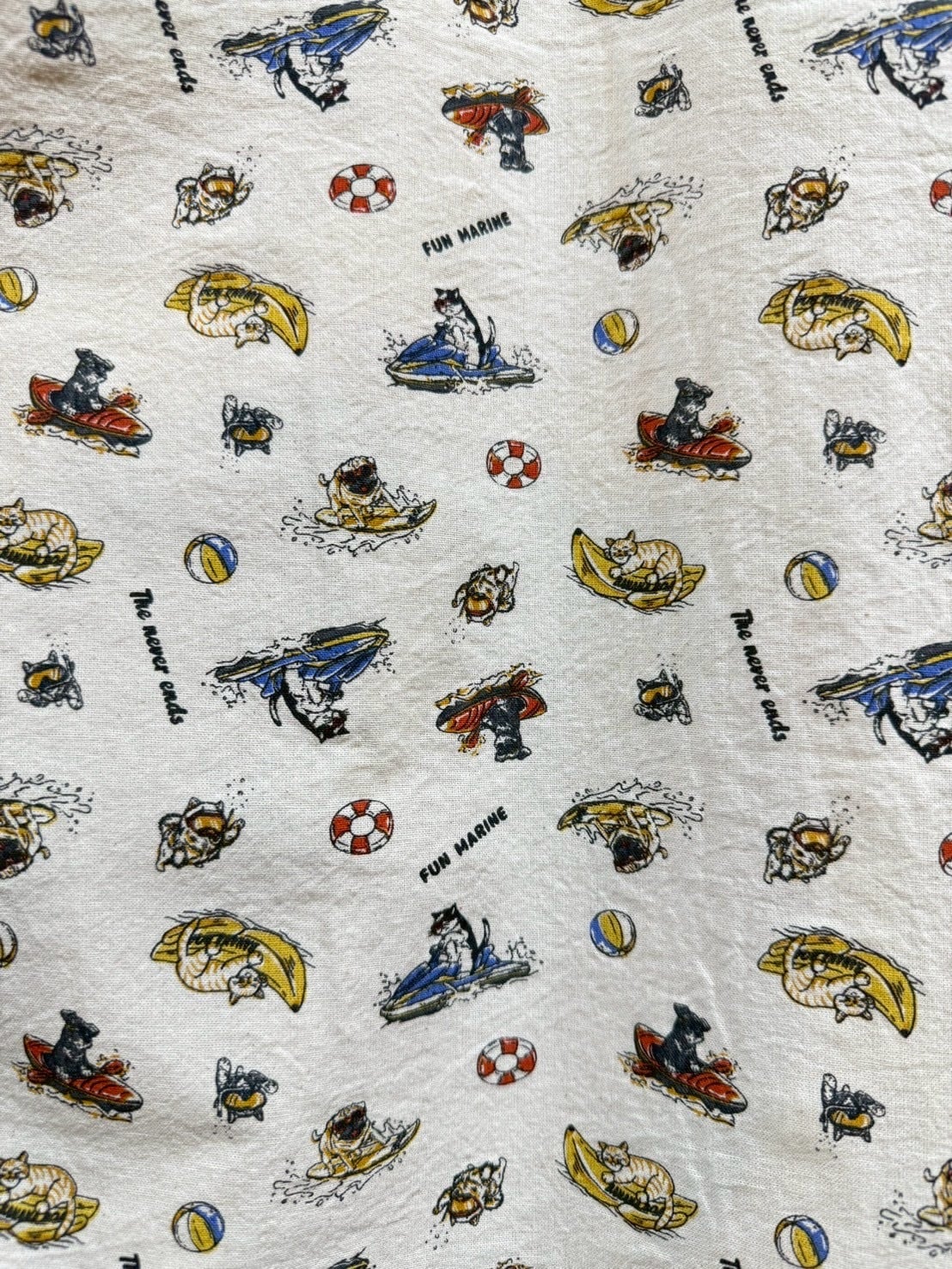 オリジナルイラストを総柄でプリントし、落書き風デザインでカジュアルな印象。