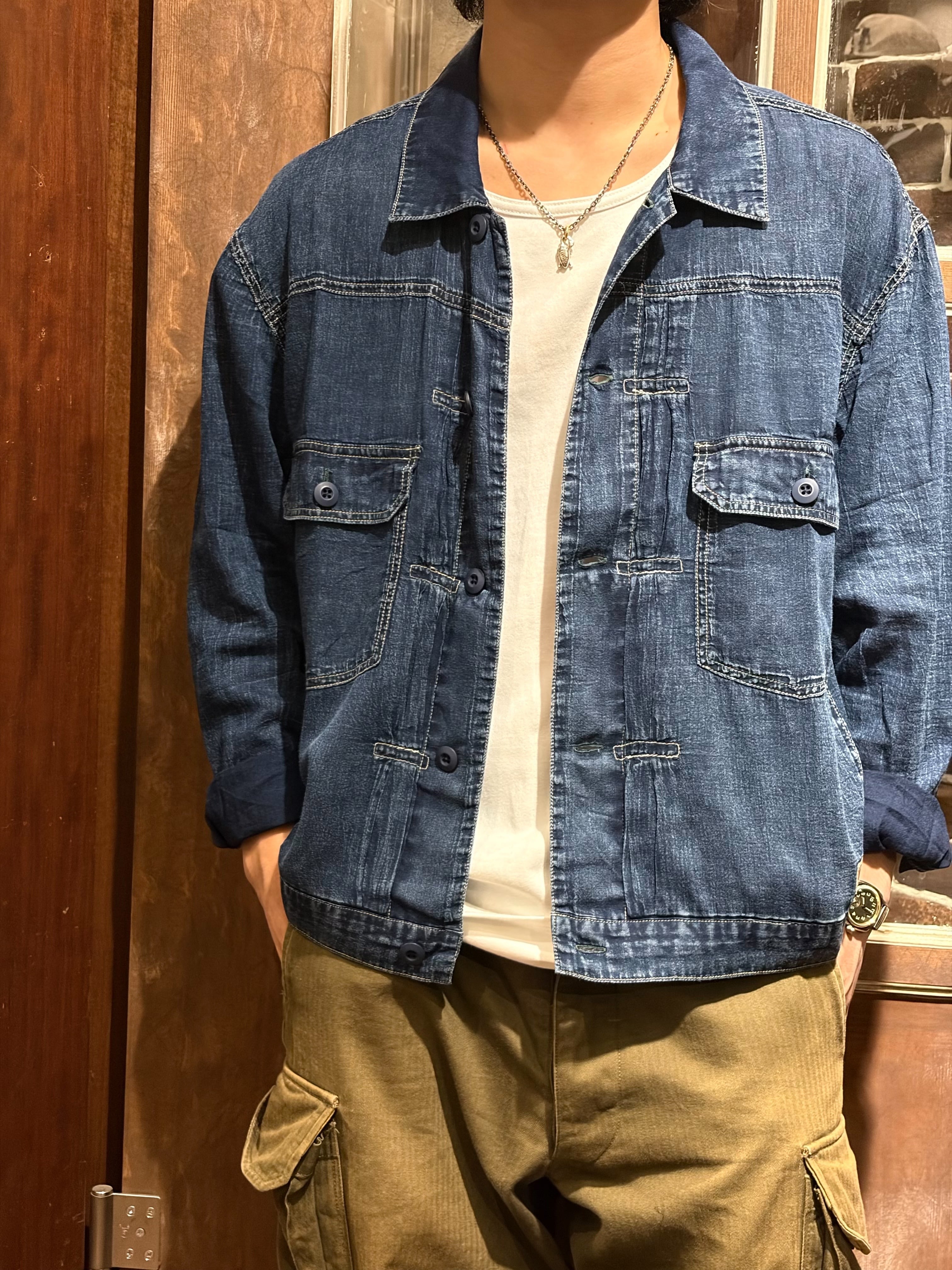 通気性とヴィンテージライクな加工感を両立した、2オンスの超軽量デニム『エアーライトデニム』を使用したジャケットです。