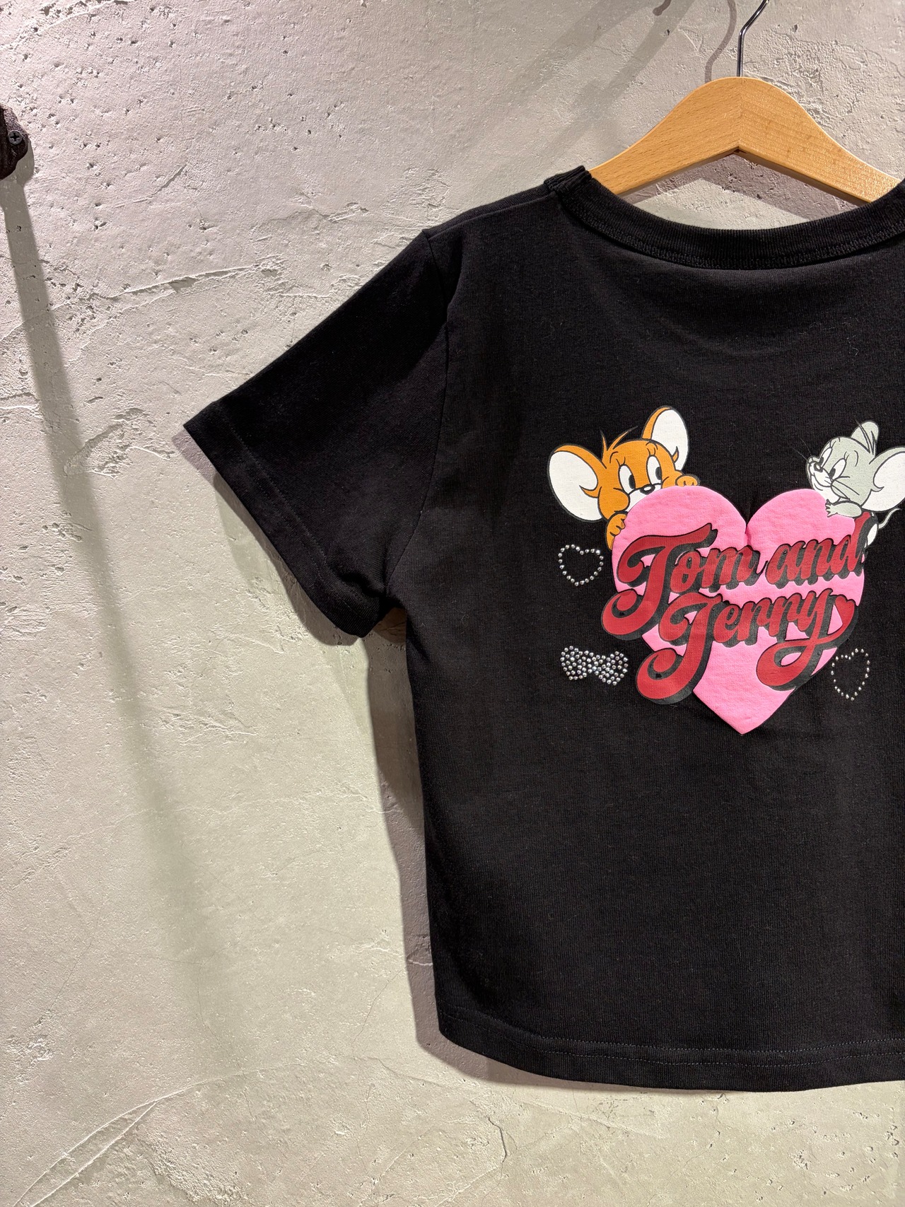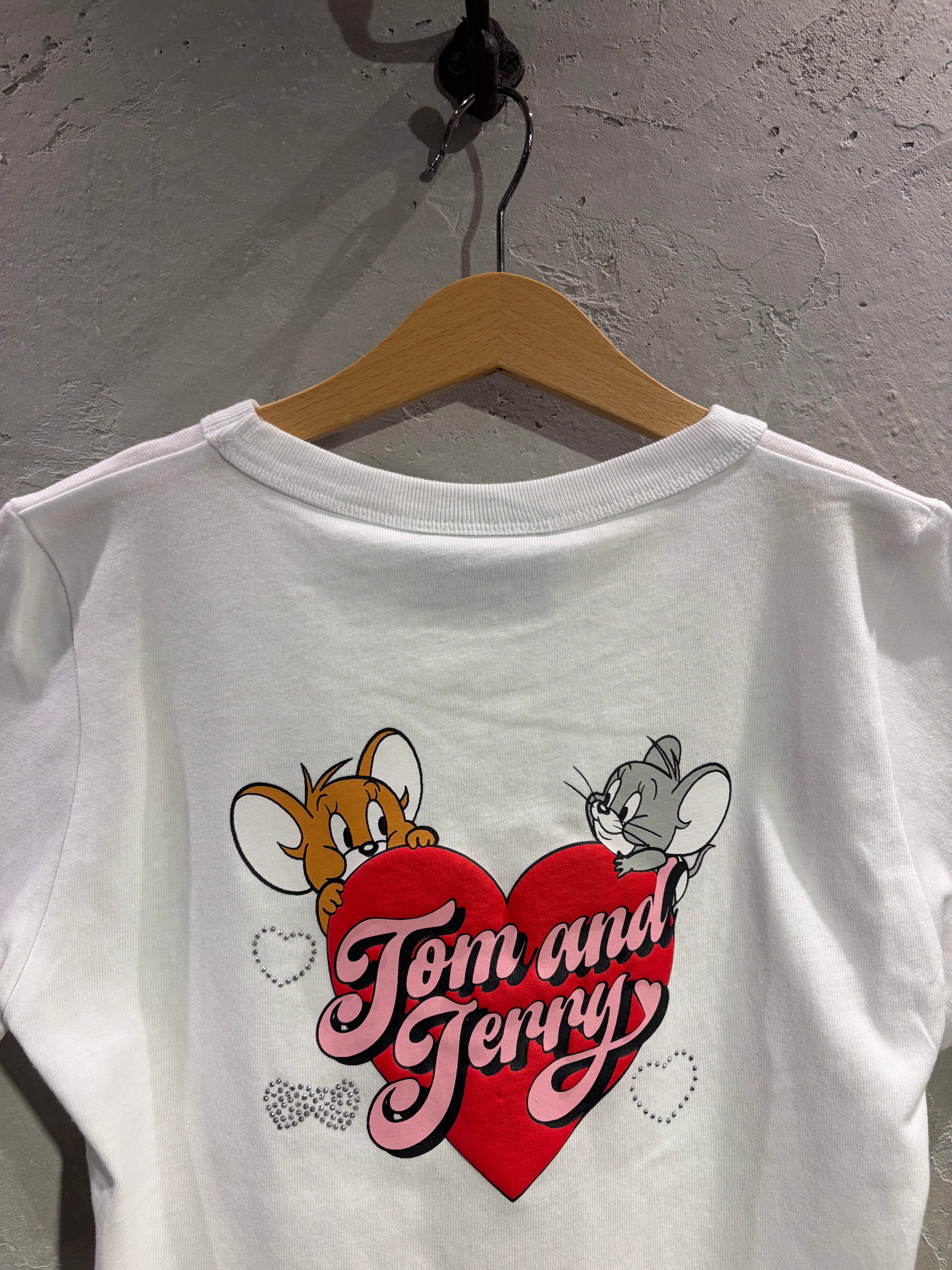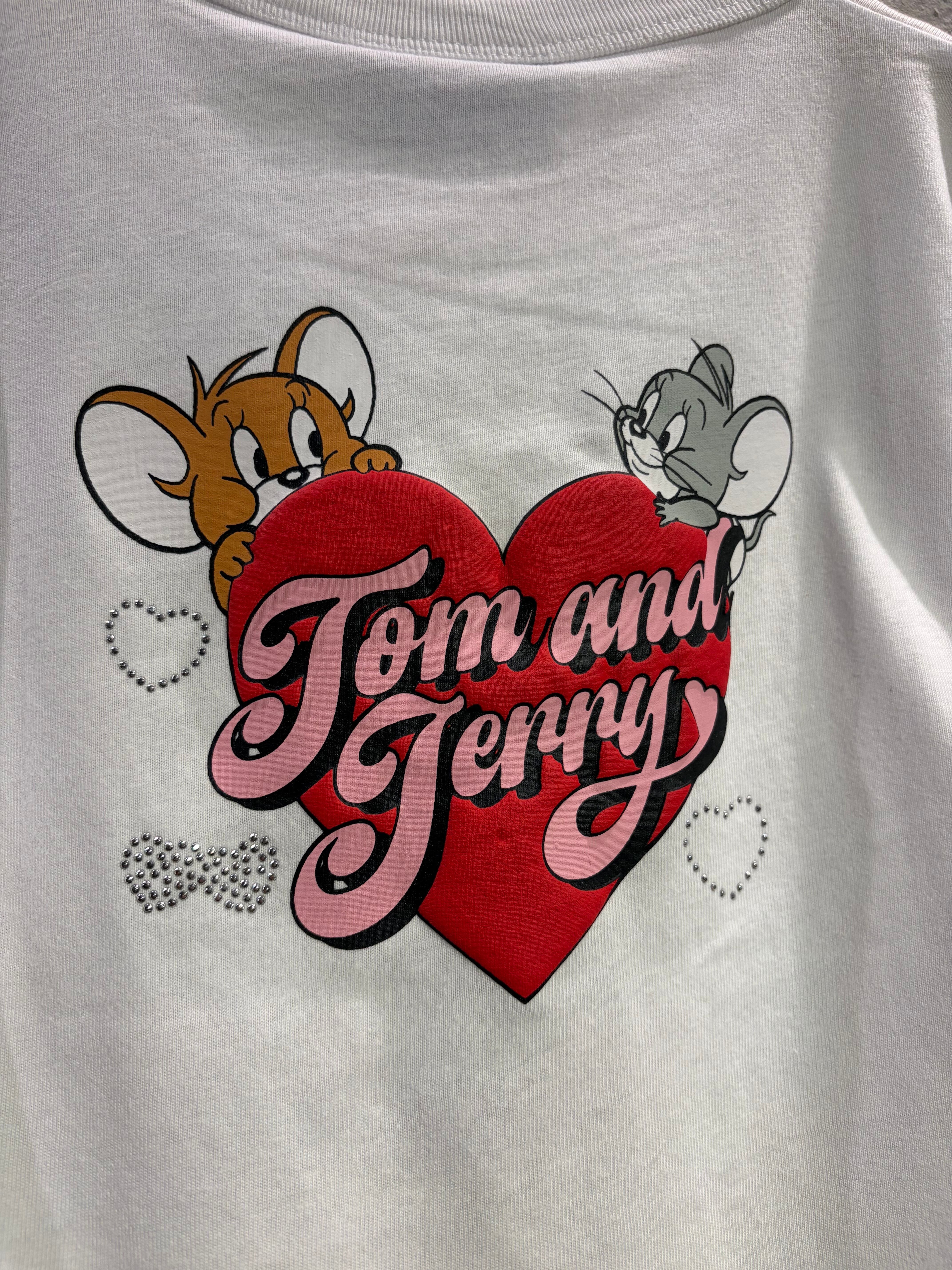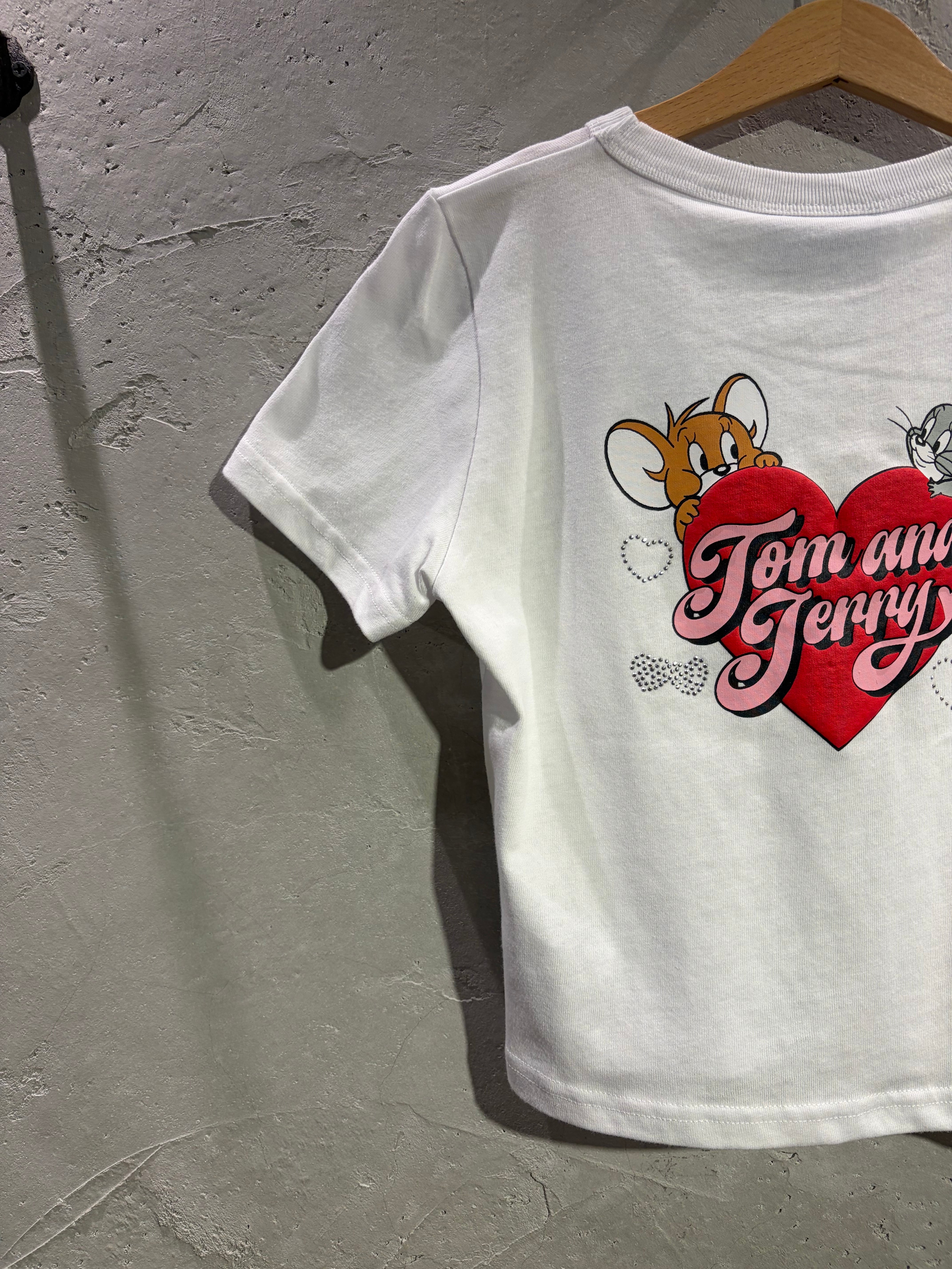 人気コンビジェリー&タフィーがハートからちょこんと顔を出すアートと散りばめられたラインストーンがキュートすぎる一着。
