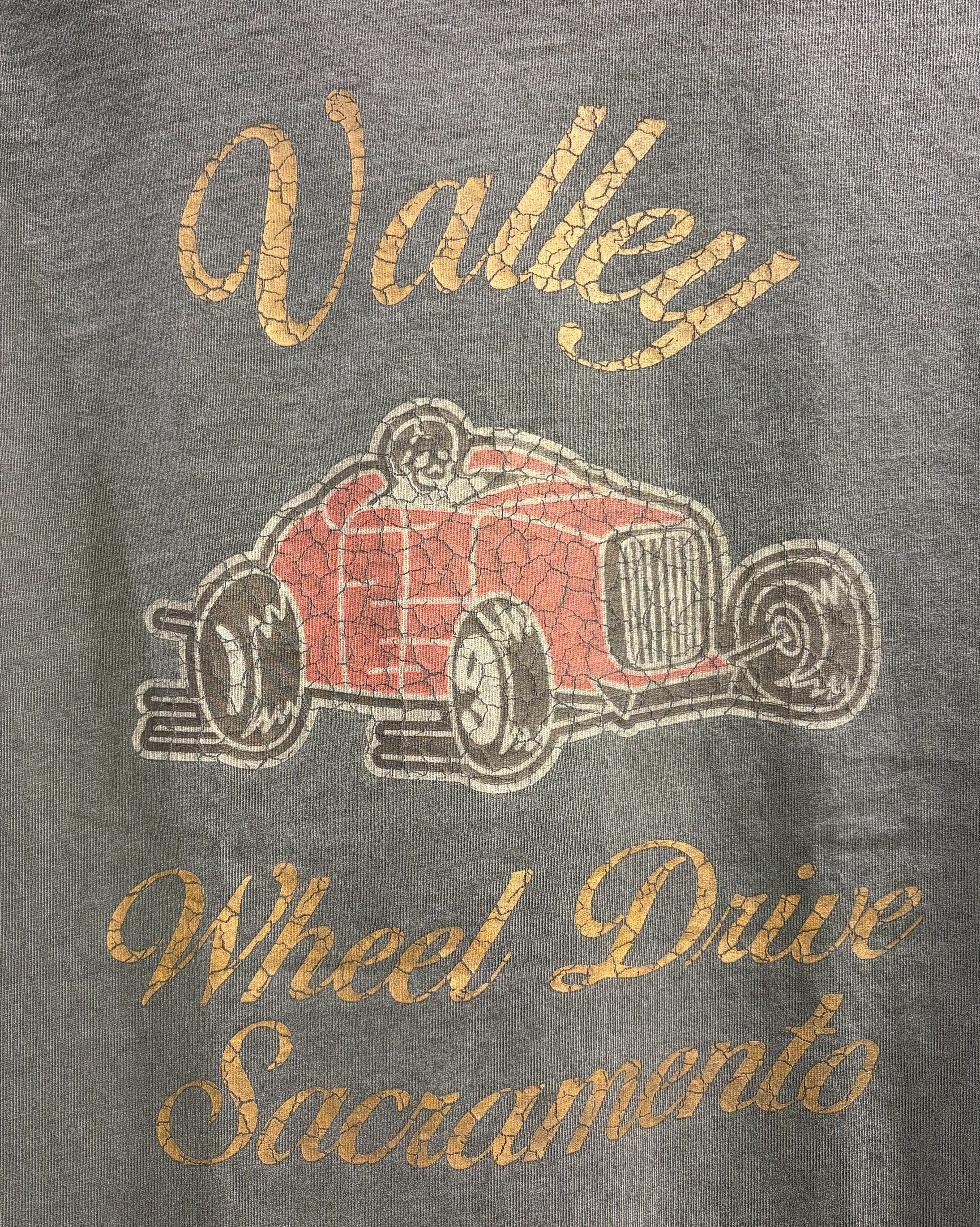 プリント後にピグメント加工を入れる事で、ヴィンテージ感が増す雰囲気のある見た目に仕上がりました。