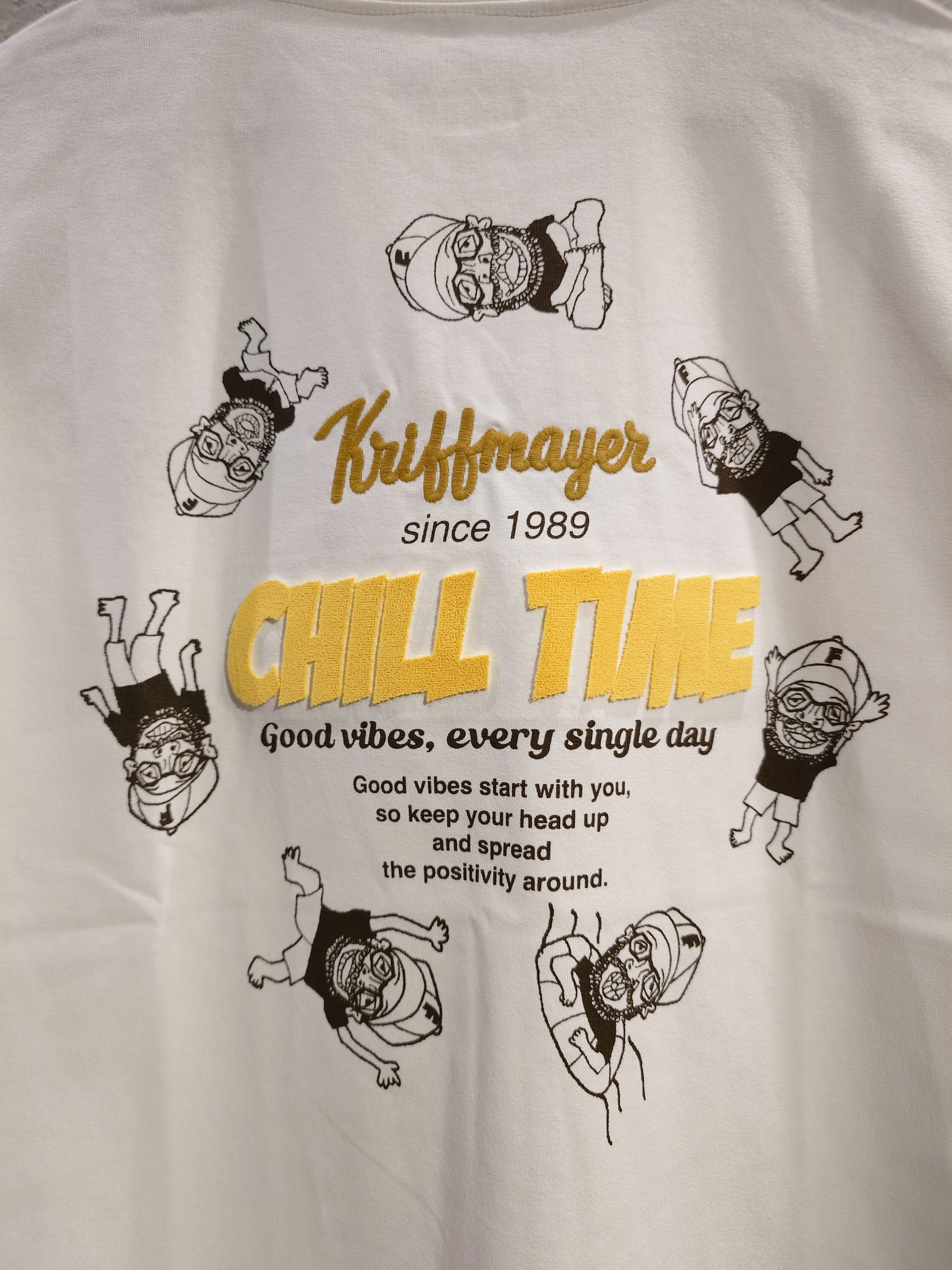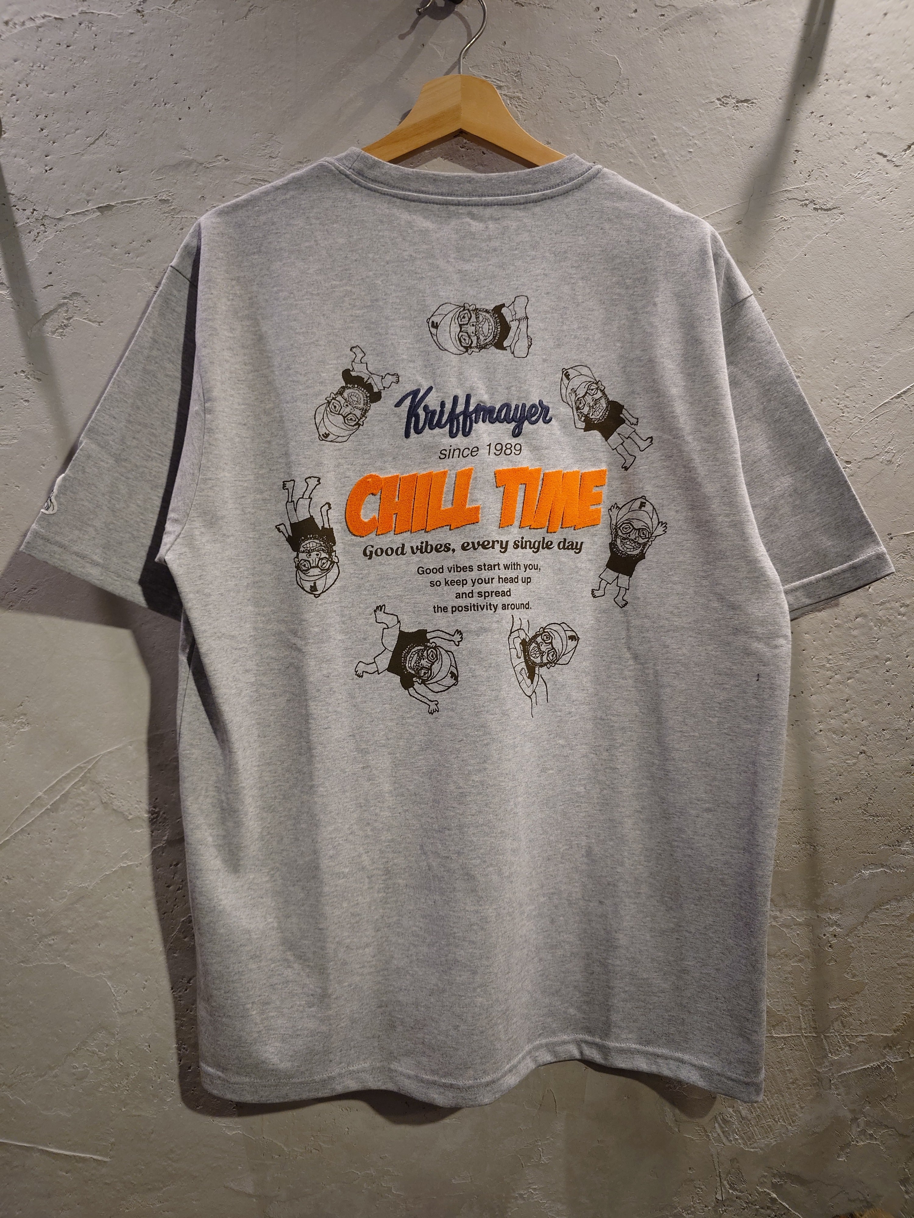 CHILL TIMEシリーズでお馴染みのおじさんMr.Kがサークル状にコラージュされた遊びのあるデザインです。
