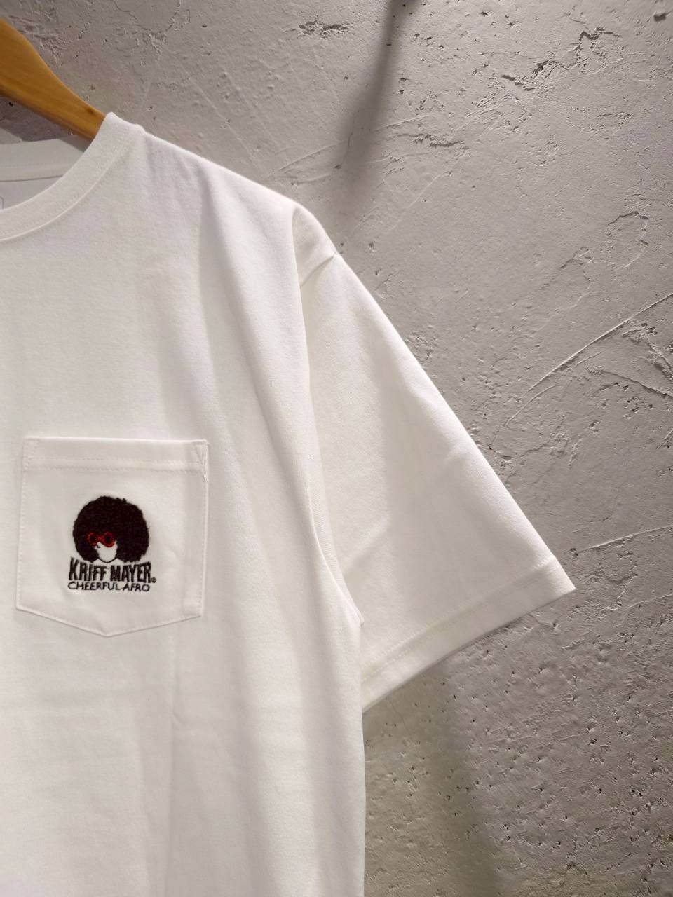フロントには相良刺繍のアフロくんがワンポイントで入っているポケT。