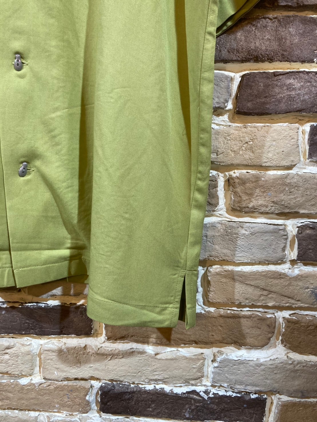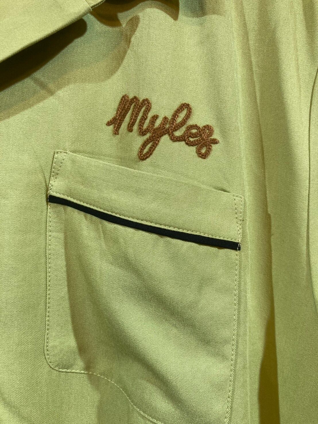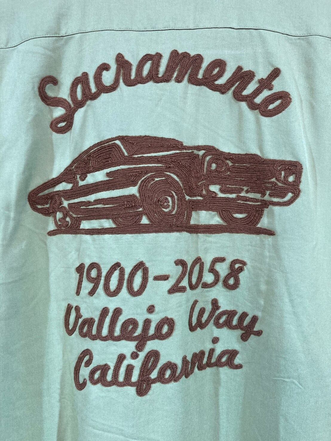 HOUSTONの春夏定番のボウリングシャツ。生地には適度な厚みのレーヨン100%を使用し、暑い季節にぴったりなさらっとした着心地。こだわりのギャラクシーボウリングピンボタンもオリジナルで作製。刺繍にはヴィンテージカークラブジャケットを彷彿とさせる「SACRAMENTO」柄。