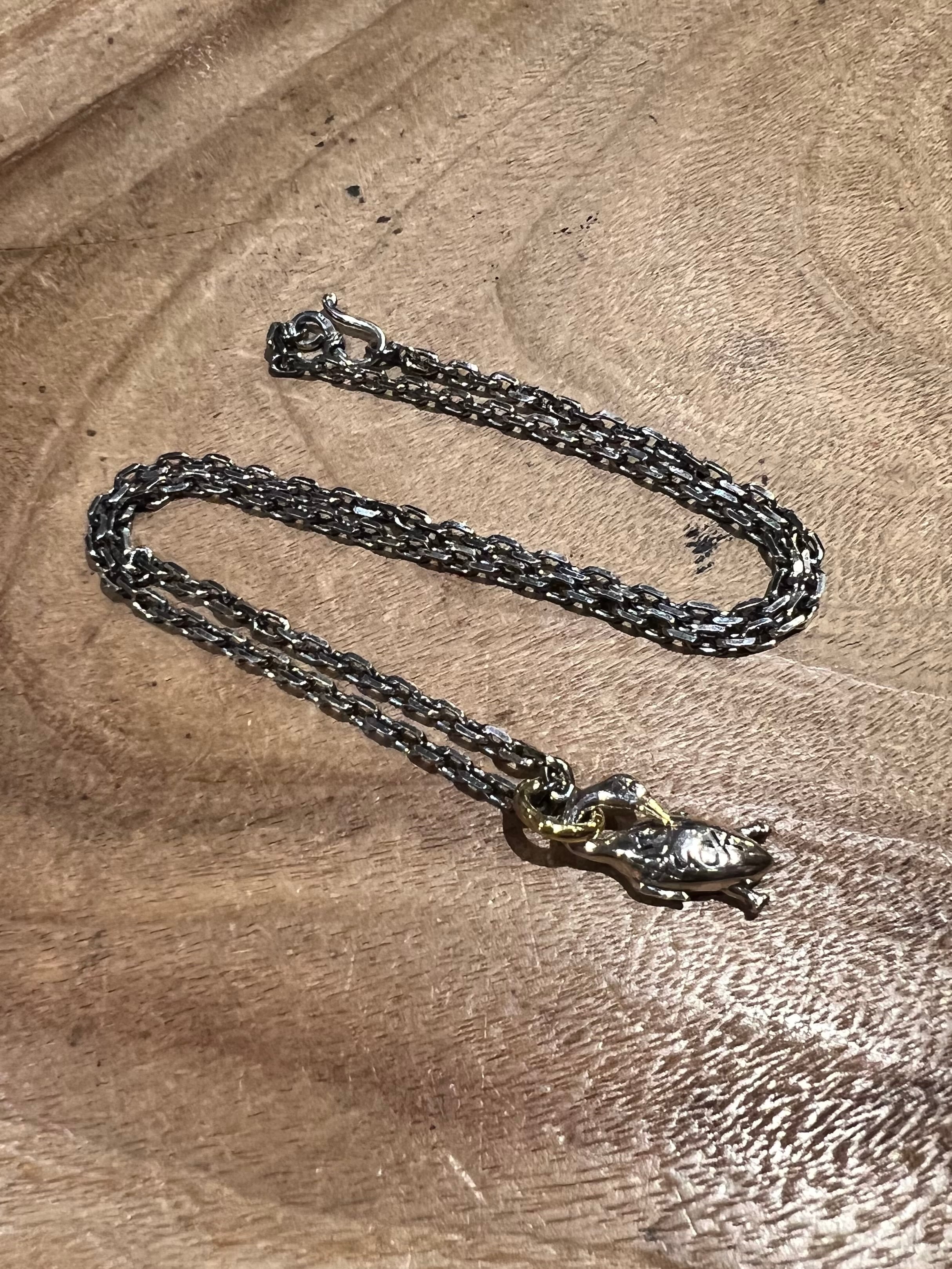 素材はボディ、チェーン共にシルバー925、クチバシとリング部分は真鍮性となっております。