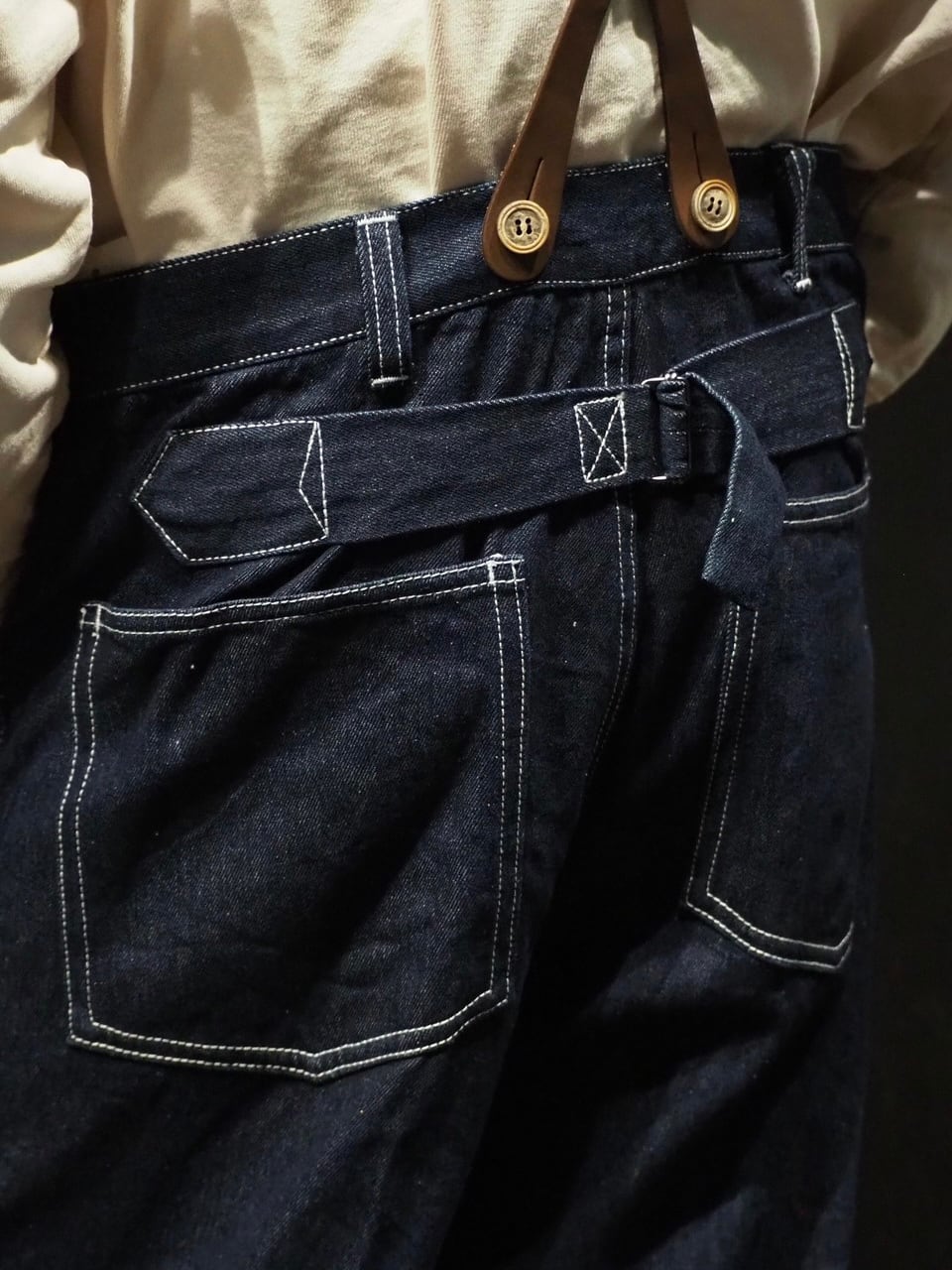 ARMY WW2デニムパンツの原型であるM1918ワーキングデニムパンツは、戦地での低視認性を目的にブラウンデニムを使用し、大型のパッチポケット、シンチバックが特徴でした。