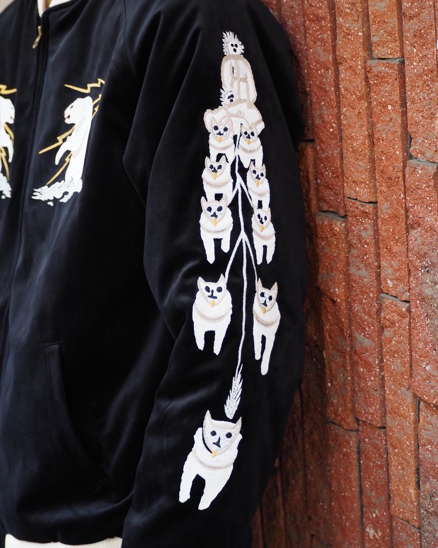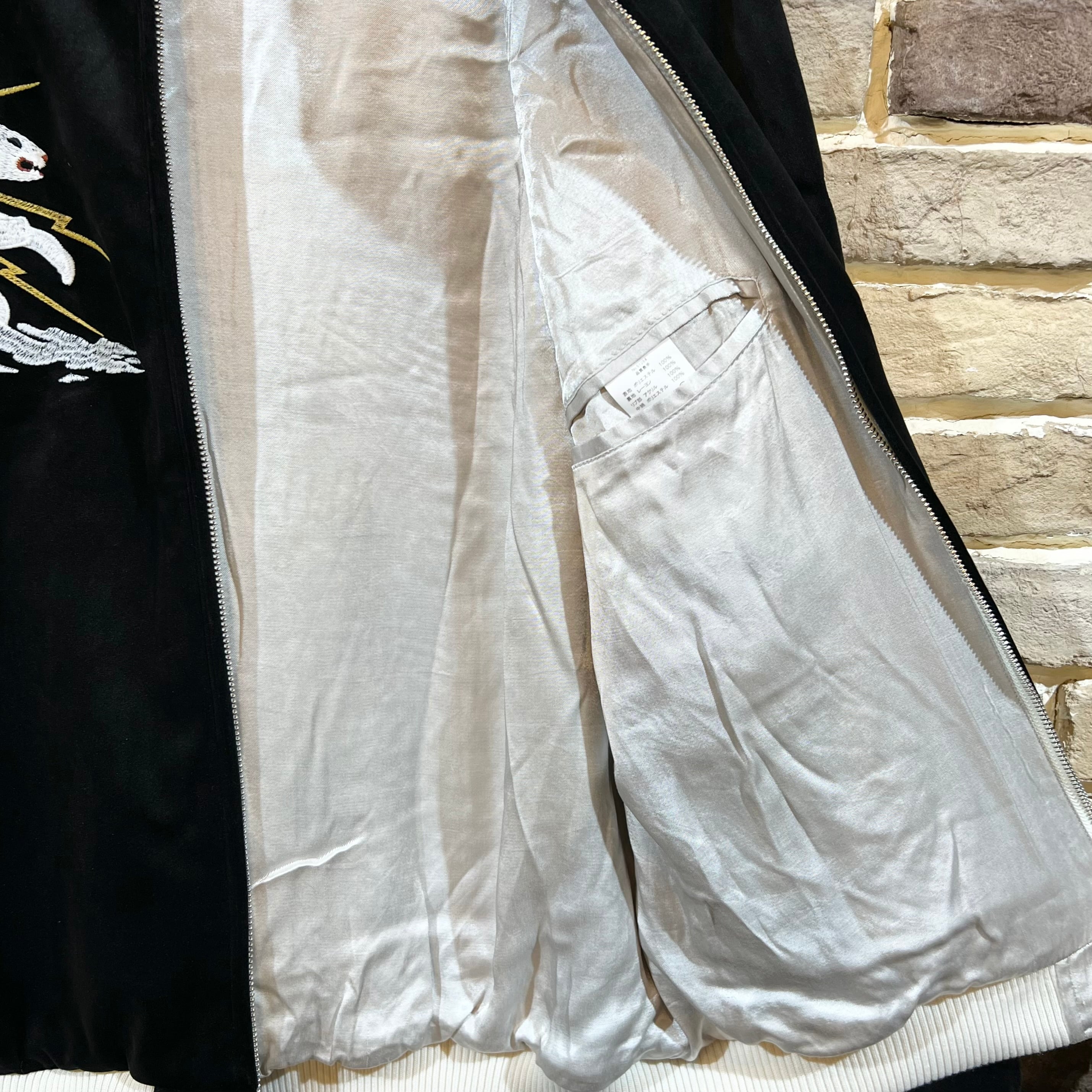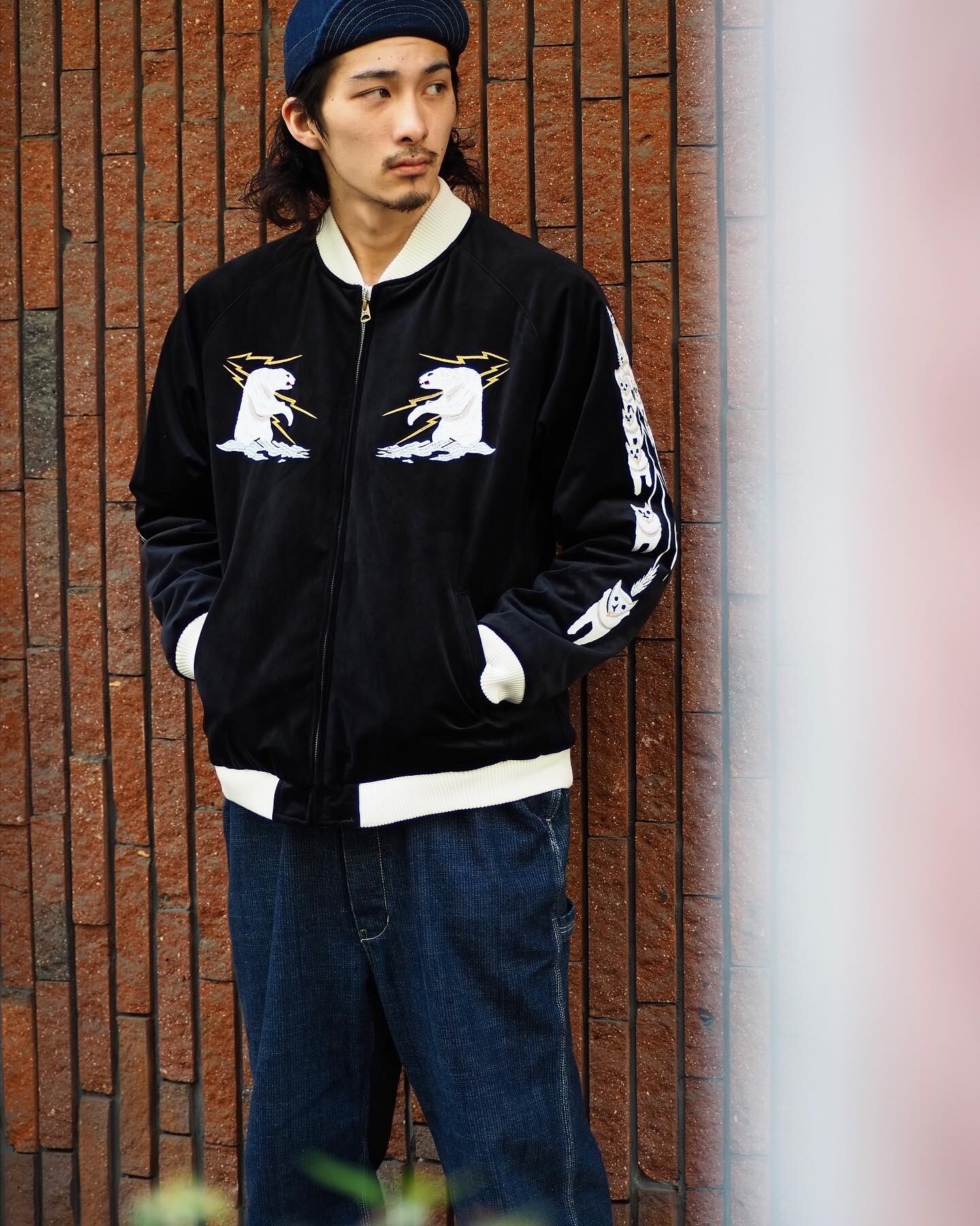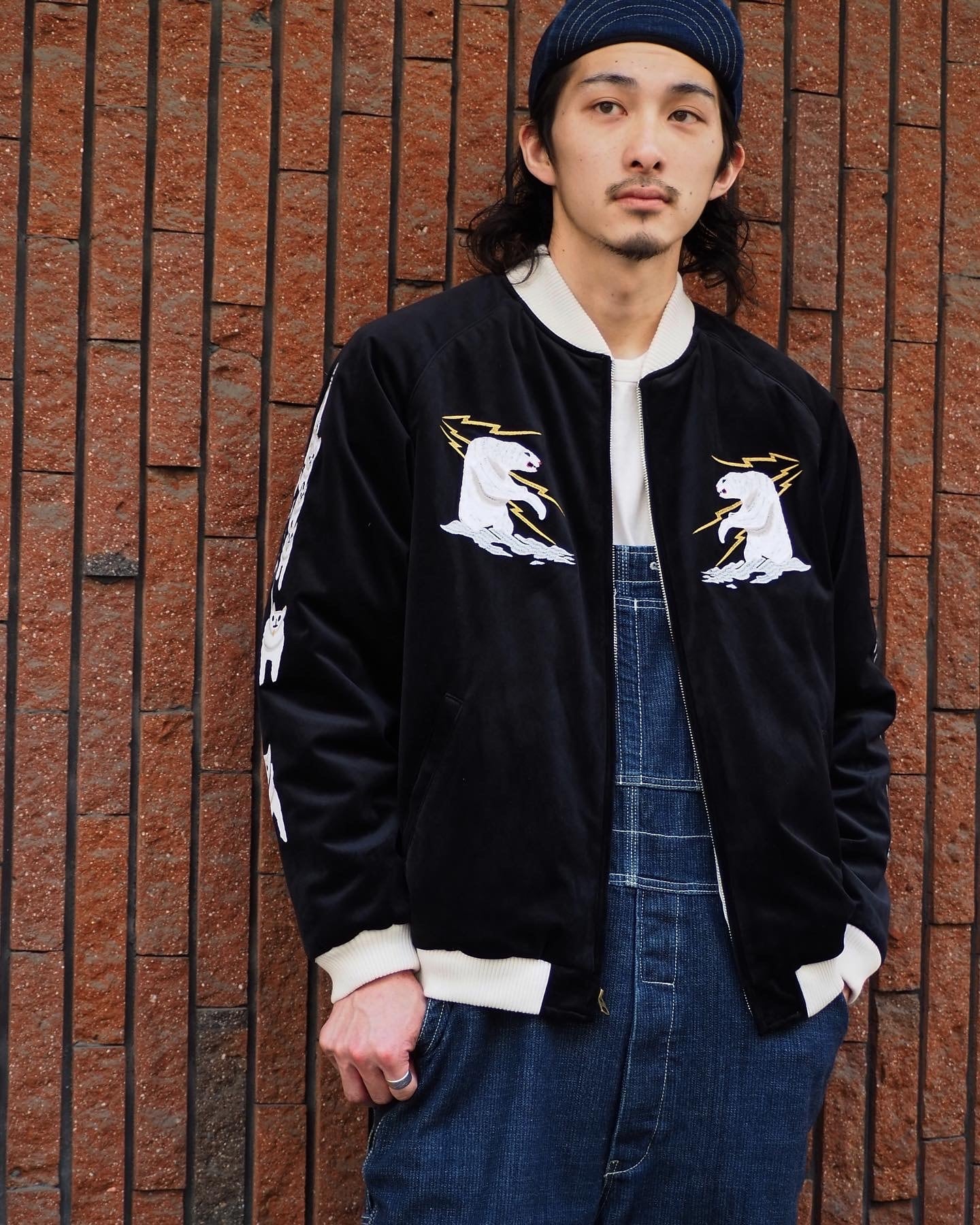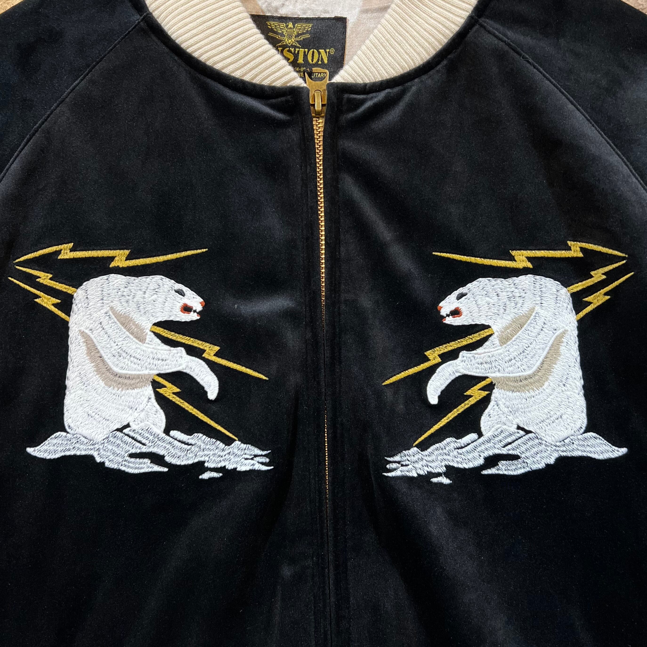 アラスカジャケットは1950年代にアラスカにある米軍基地の依頼で作られたアラスカモチーフのスカジャンで、両胸とバックにはシロクマ、袖部分には犬ゾリの刺繍が施されています。
