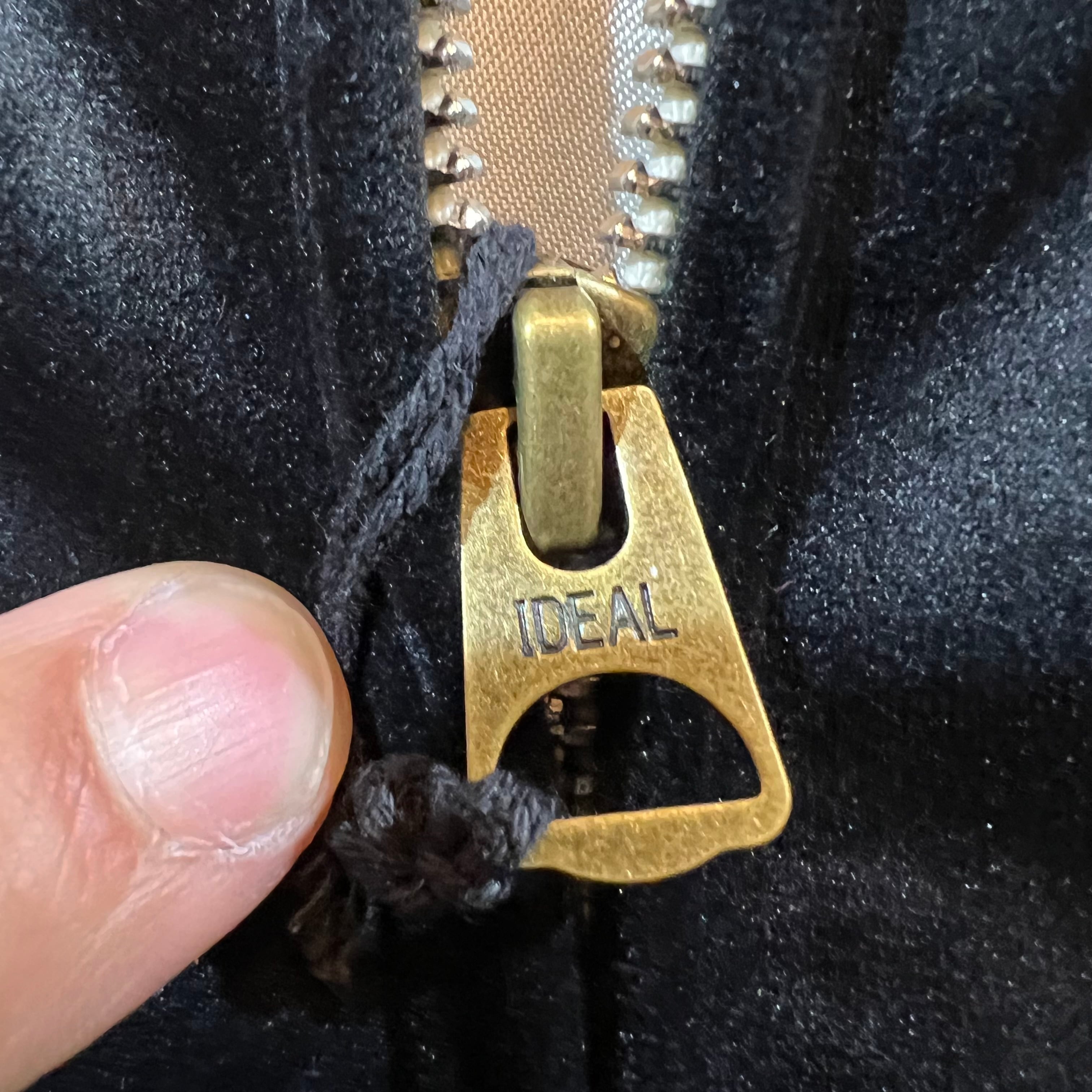 襟、袖口、裾のリブは程よいフィット感で作られており、快適な作りになっています!フロントジッパーには、「IDEAL」社製のジッパーを使っているのがまたポイントです!