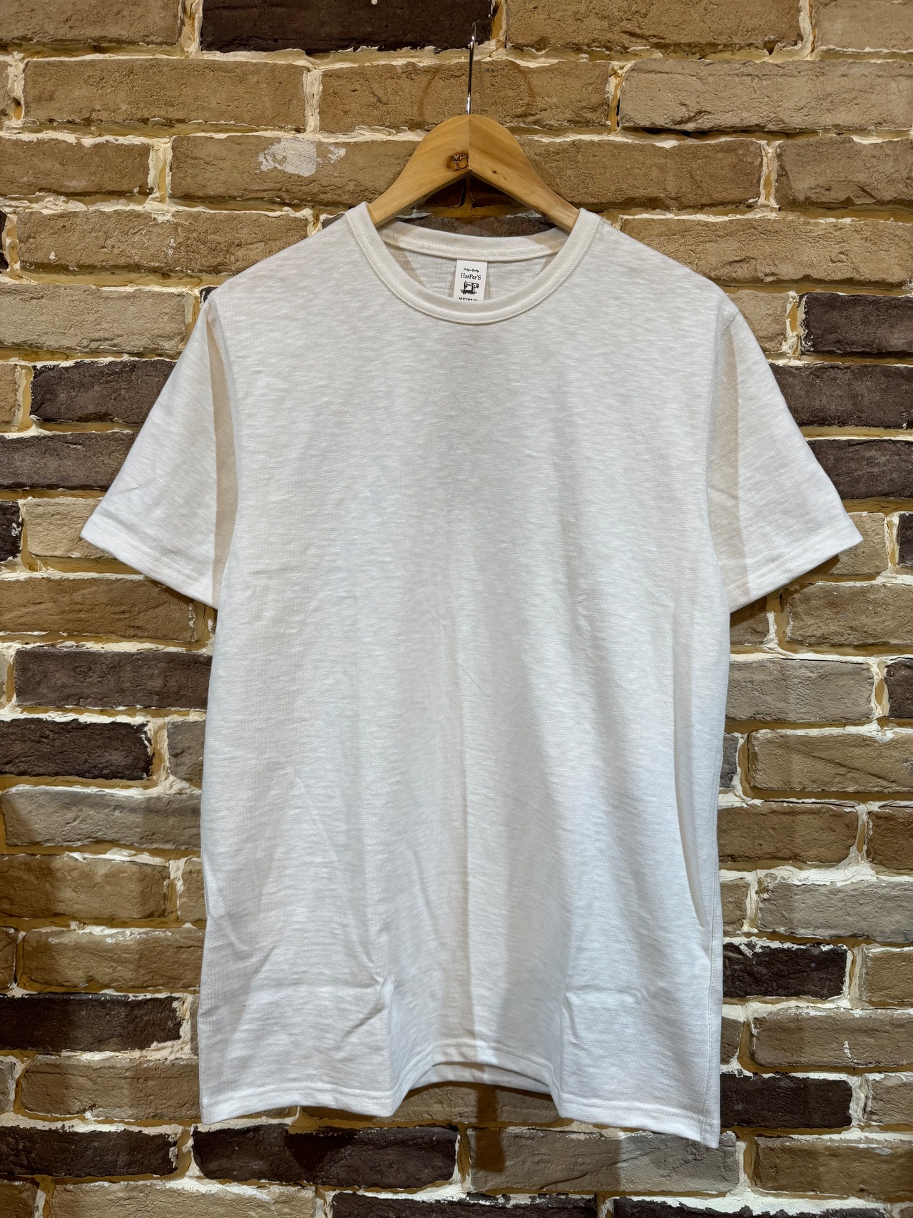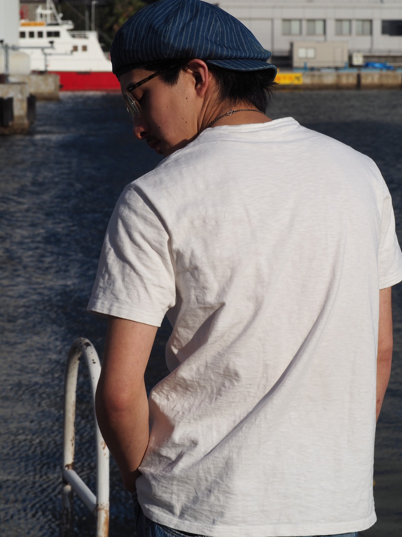肉厚で重厚感が漂いザラ感のある風合いと程よい固さが特徴的で、優れた着心地とオールドスタイルにこだわりつつ、野暮過ぎないスタイリッシュなシルエットを落とし込んだニュー・ヴィンテージと言っても過言では無い、着るたびにエイジングも楽しめるプレミアムTシャツです。