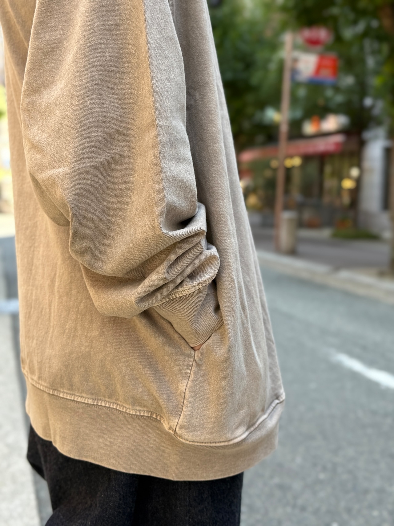 しっかり丈夫な首元、袖口のリブ&サイドのさり気ないポケット付きで機能面も◎