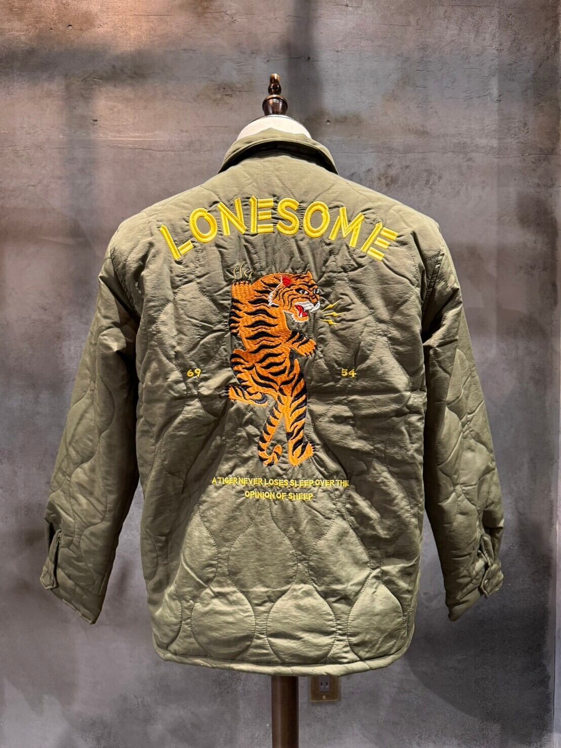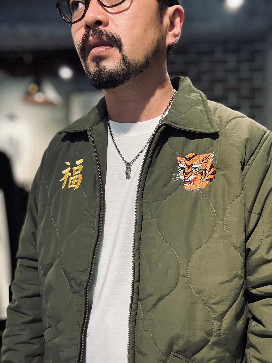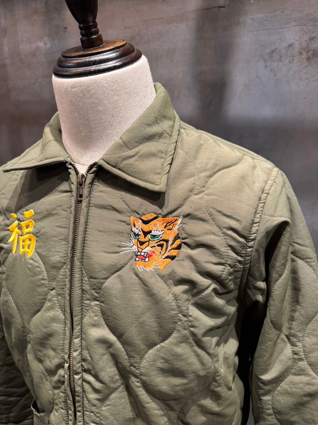 フロント右胸には、〝福〟の刺繍、左胸には虎の刺繍、背中に大きな虎を刺繍したアメカジライクなアイテムです。