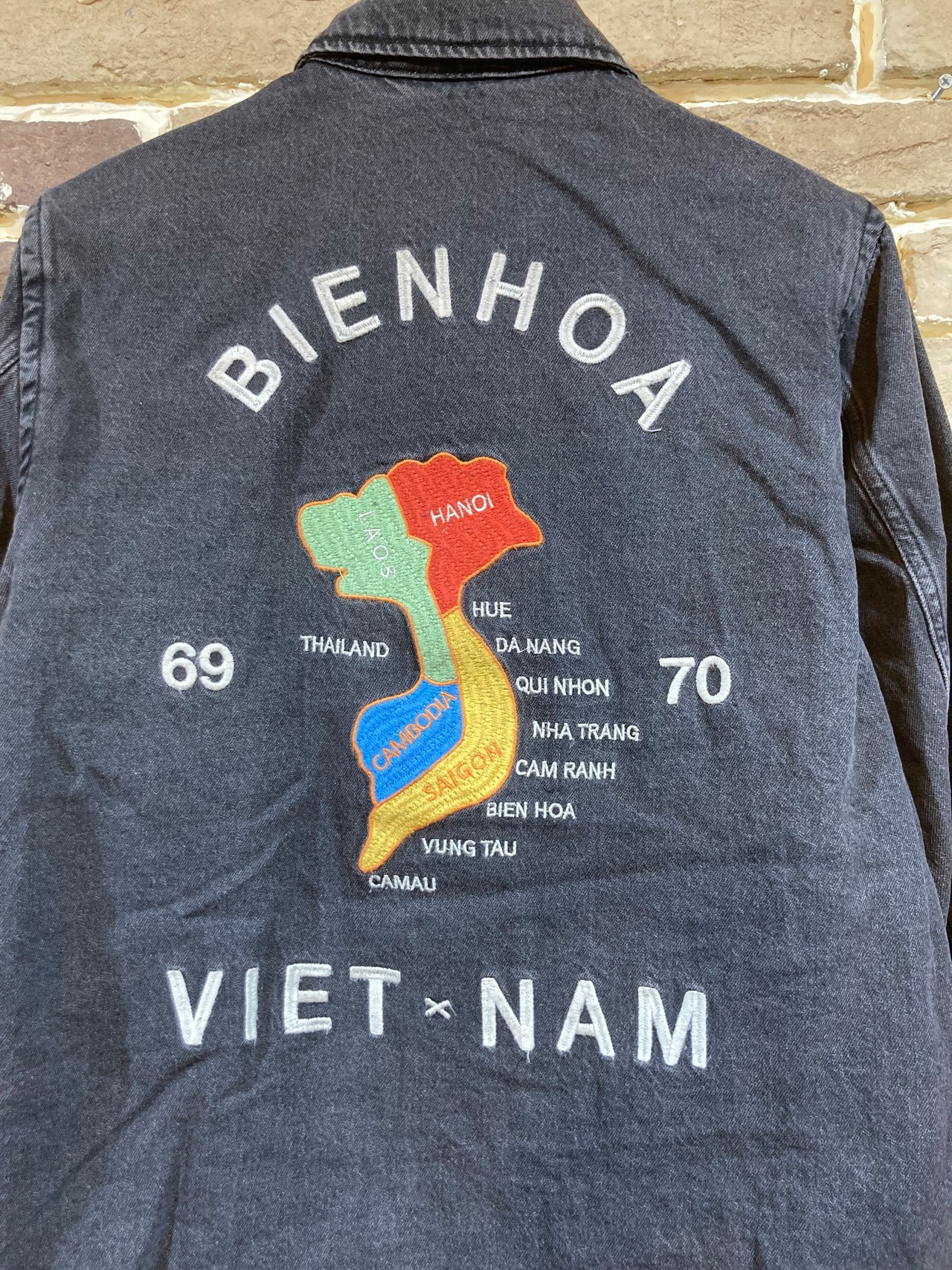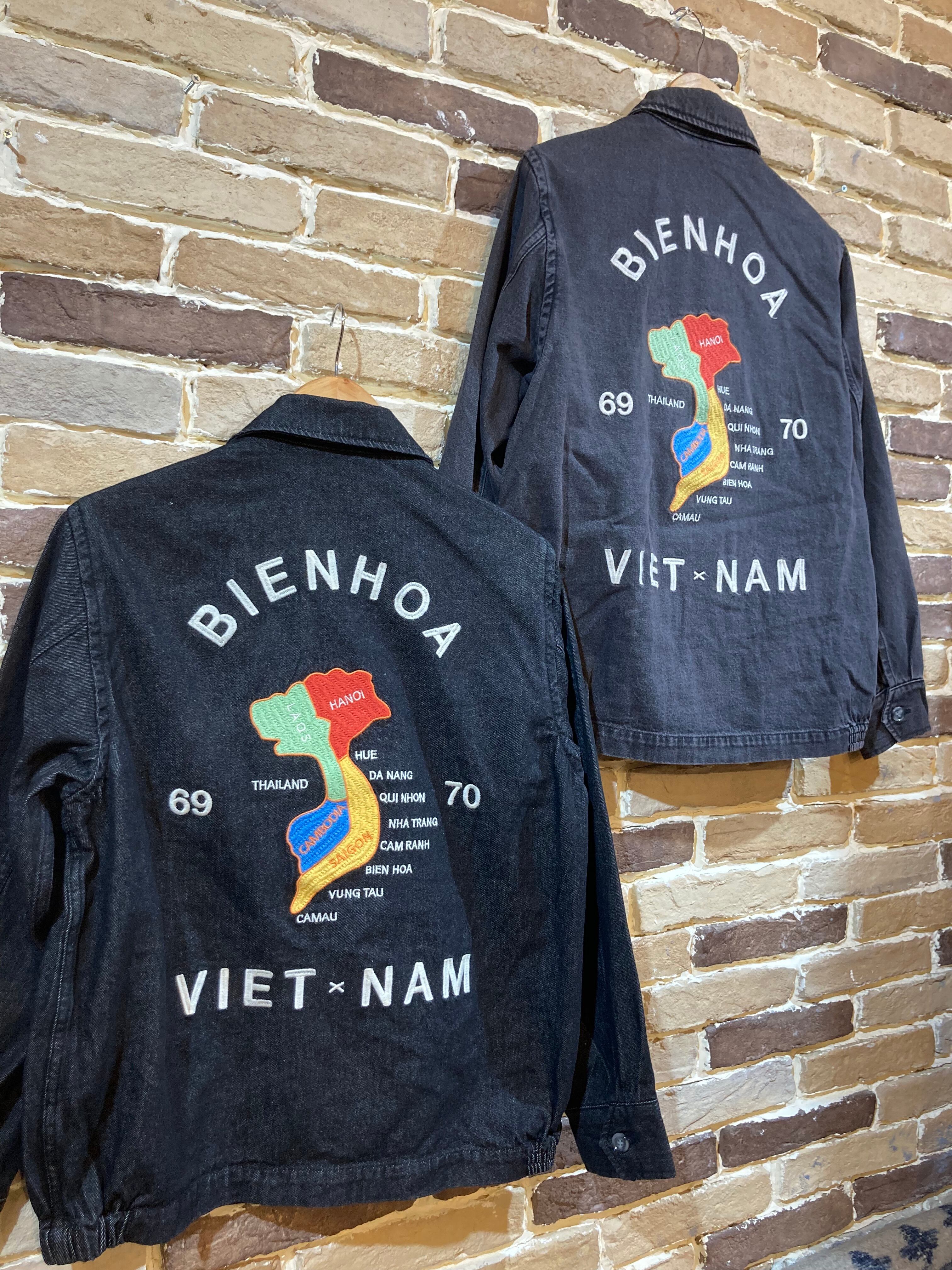 ヴィンテージベトジャンの刺繍柄をモチーフに、全体に大きくインパクトのある地図柄を採用。